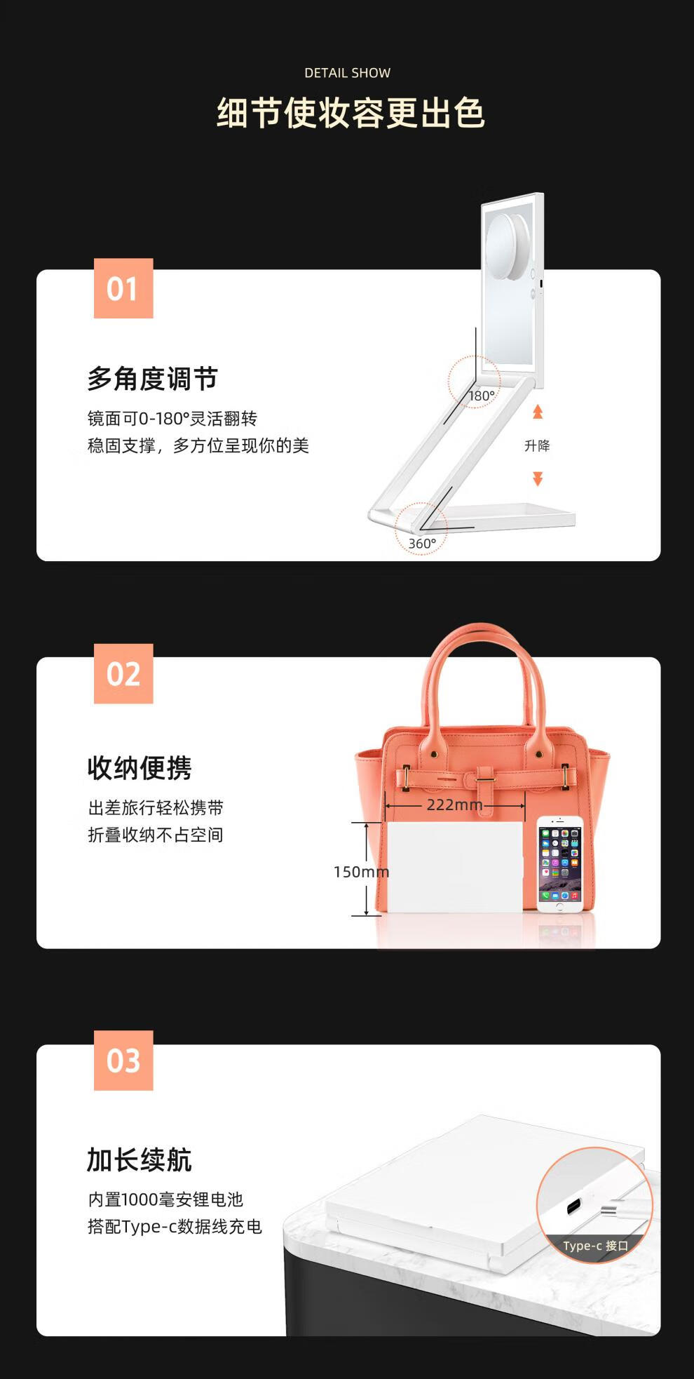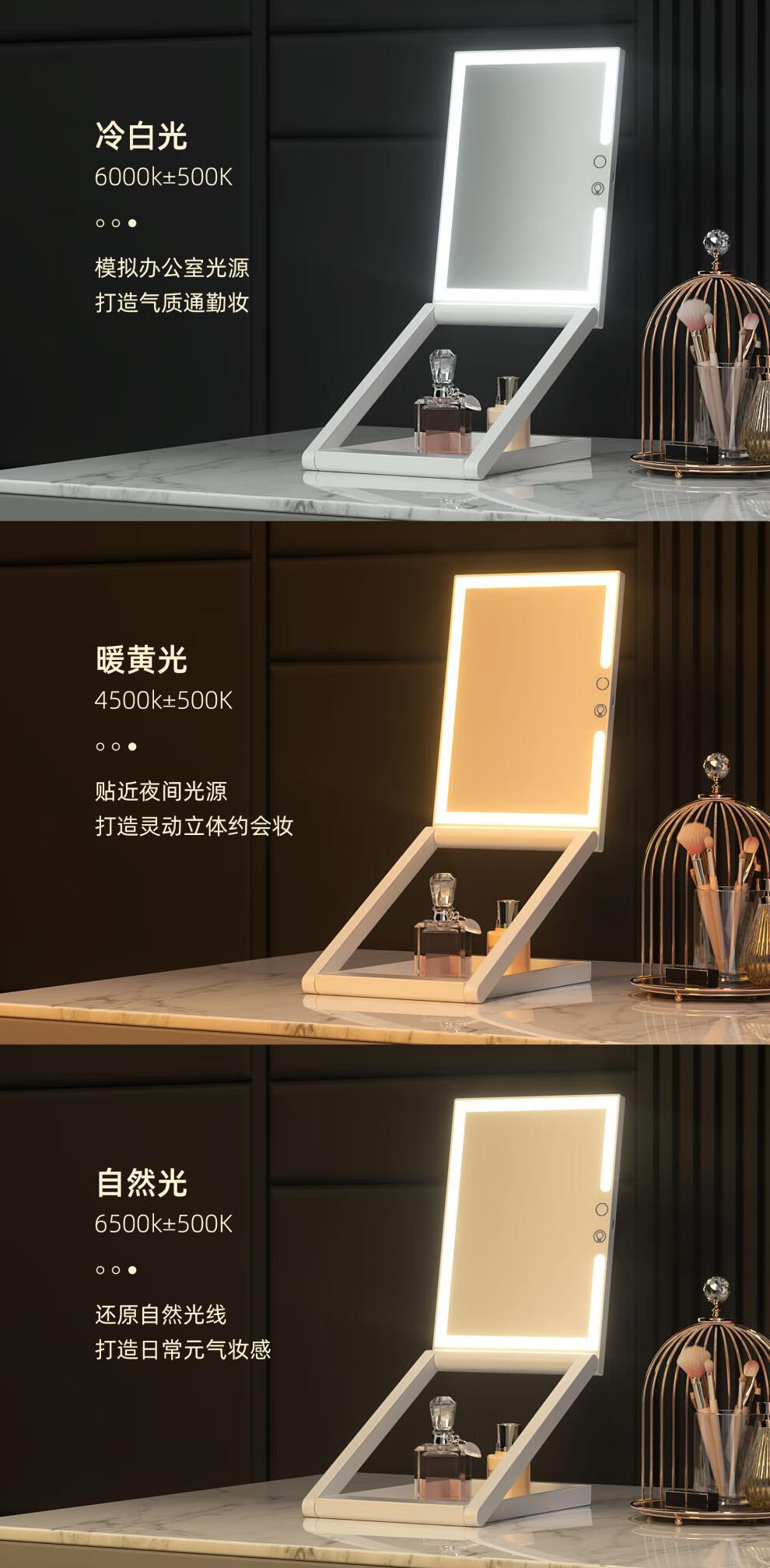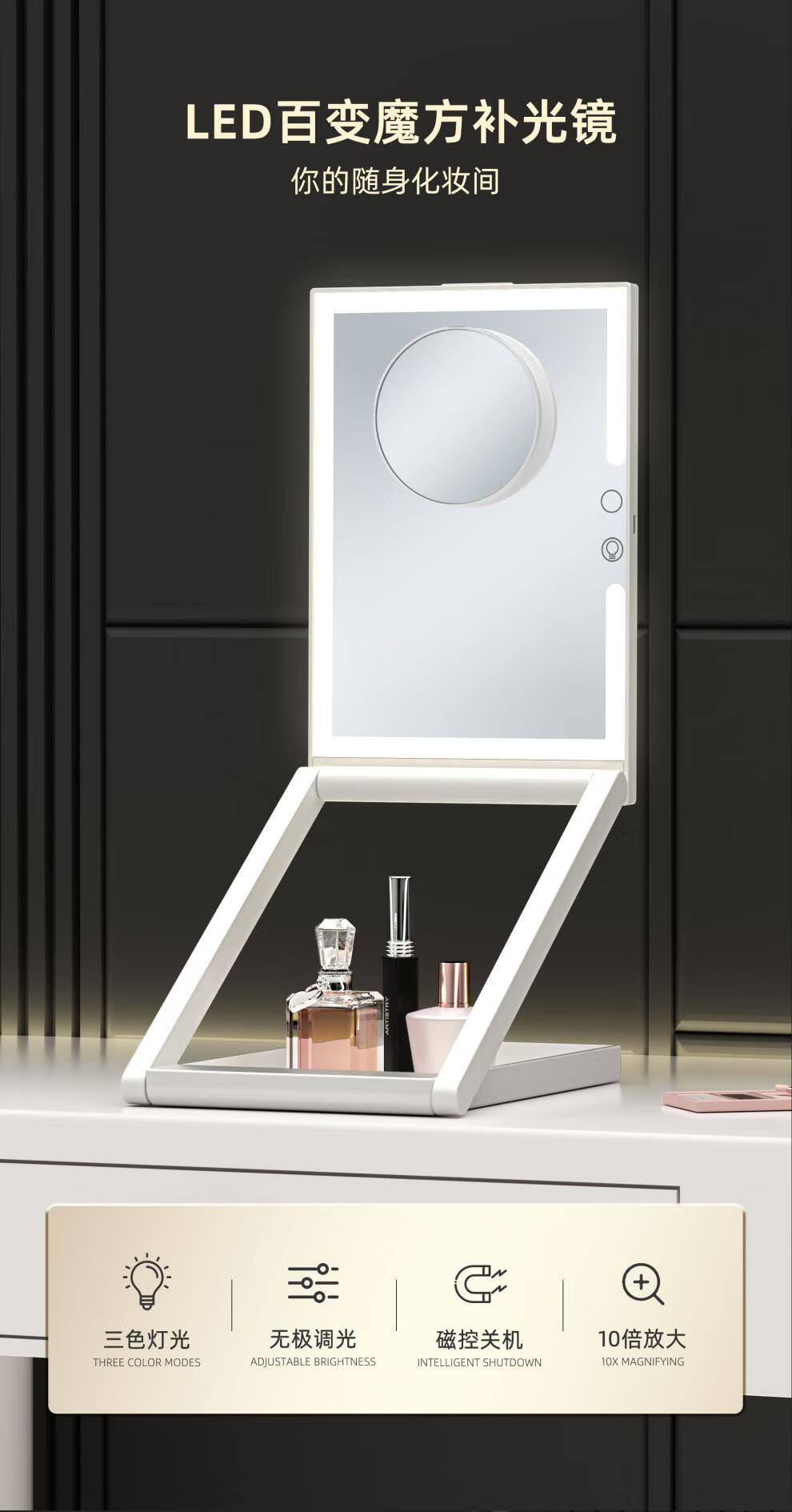 SF PHOELOP Smart LED Folding Storage Mirror 10x Magnifying Mirror Living Room Bedroom Cosmetic Mirror White with Magnifying Glass and Storage Bag