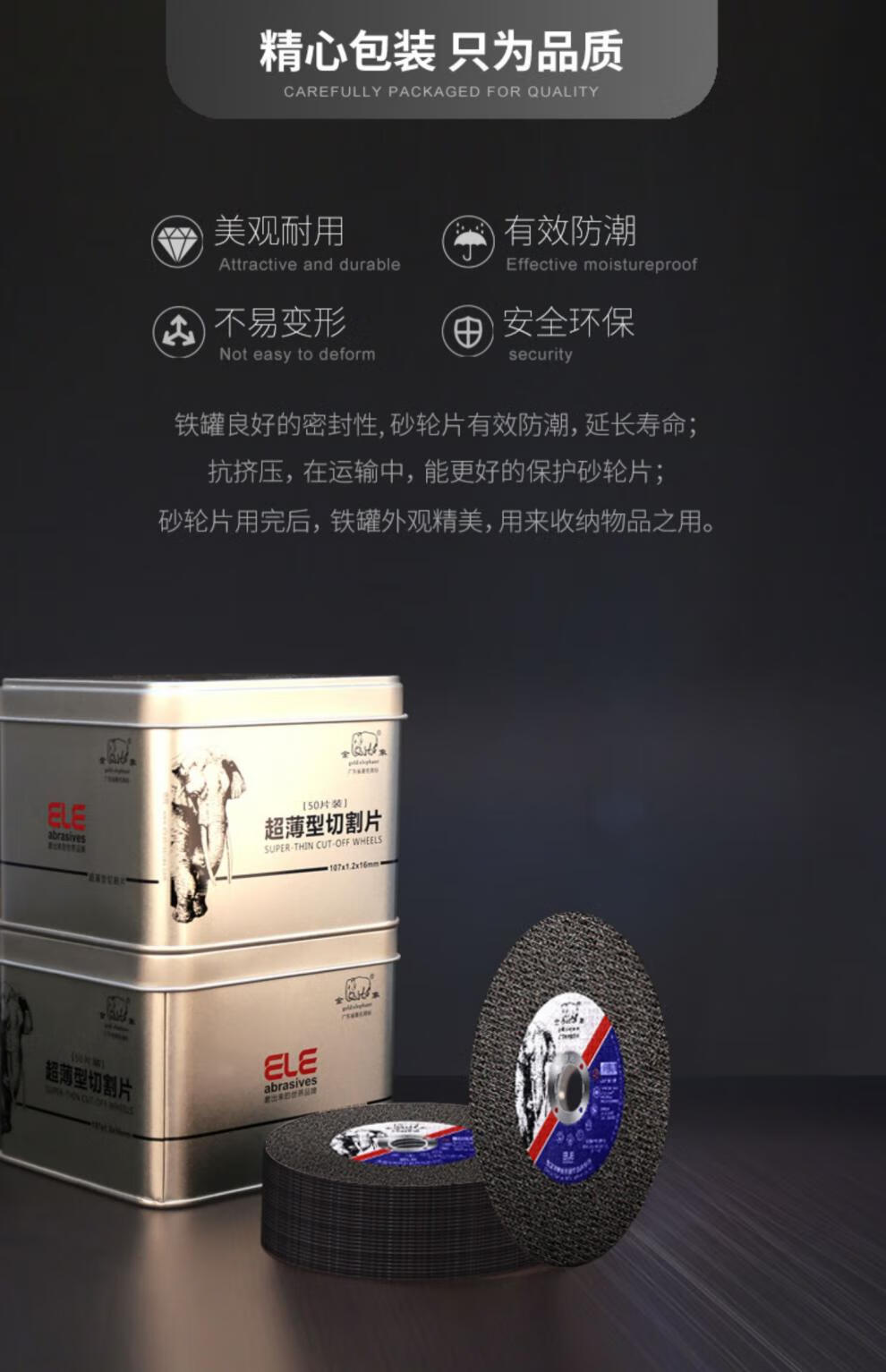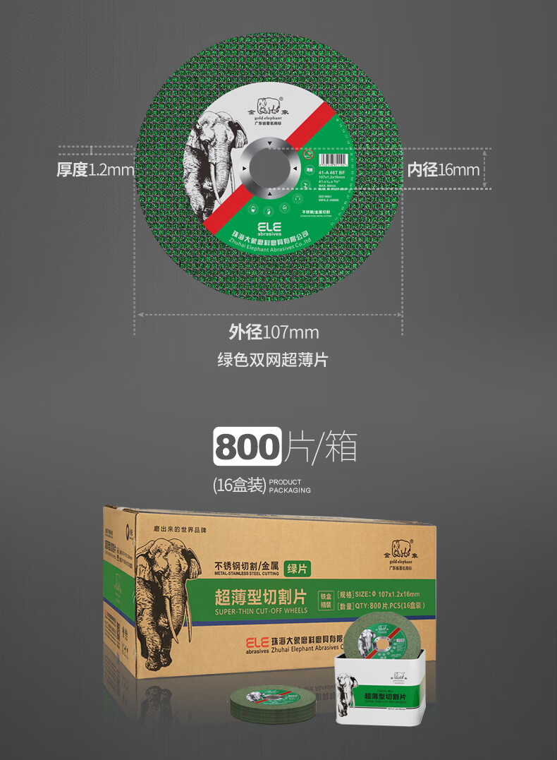Perfect (IT S A 10) 105 cutting disc angle grinder grinding wheel disc 107 stainless steel metal special hand grinding disc grinding Golden Elephant 105*1.2*16 green disc 800 pieces