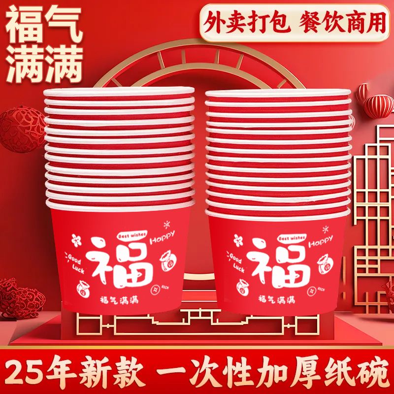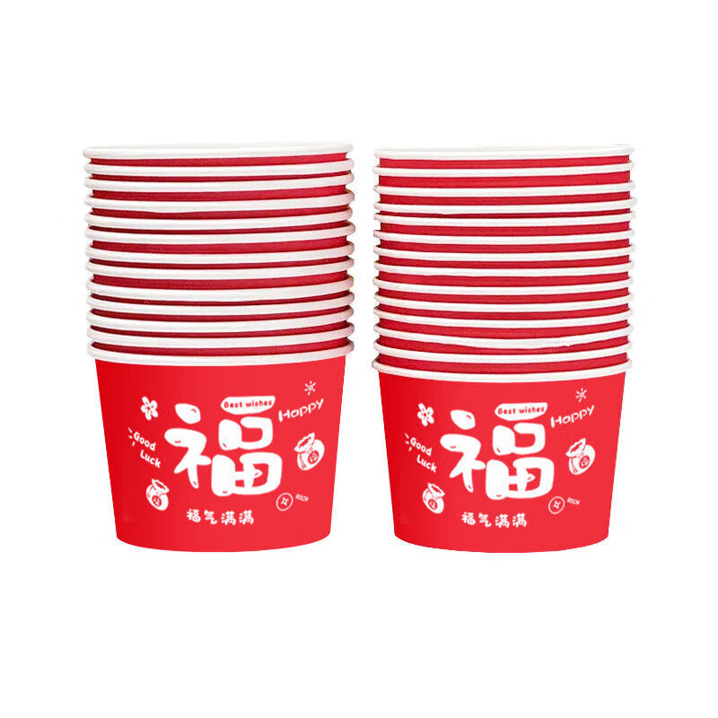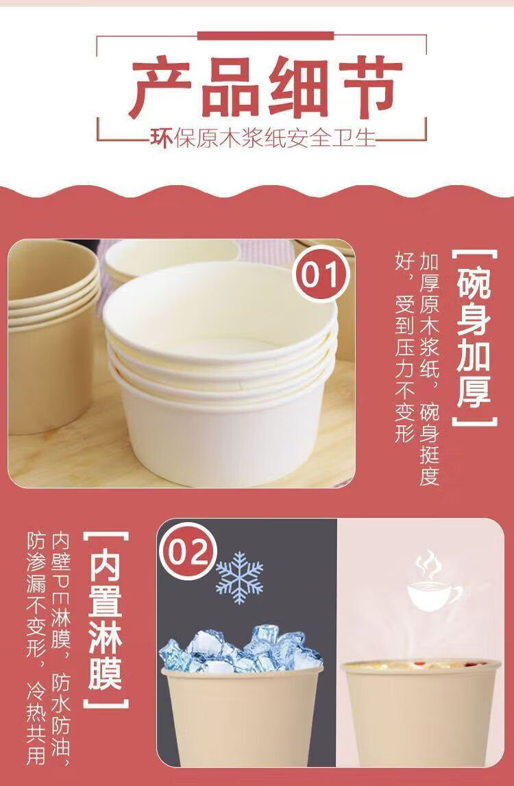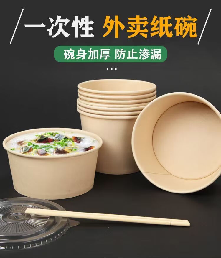 Chaosihui thickened round packaging box whole box wholesale disposable paper bowl snack bowl banquet eating bowl household instant noodle bowl 420ML natural color thickened + lid 600