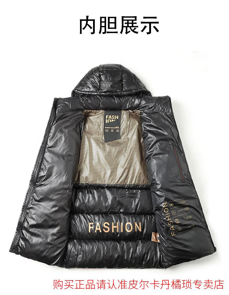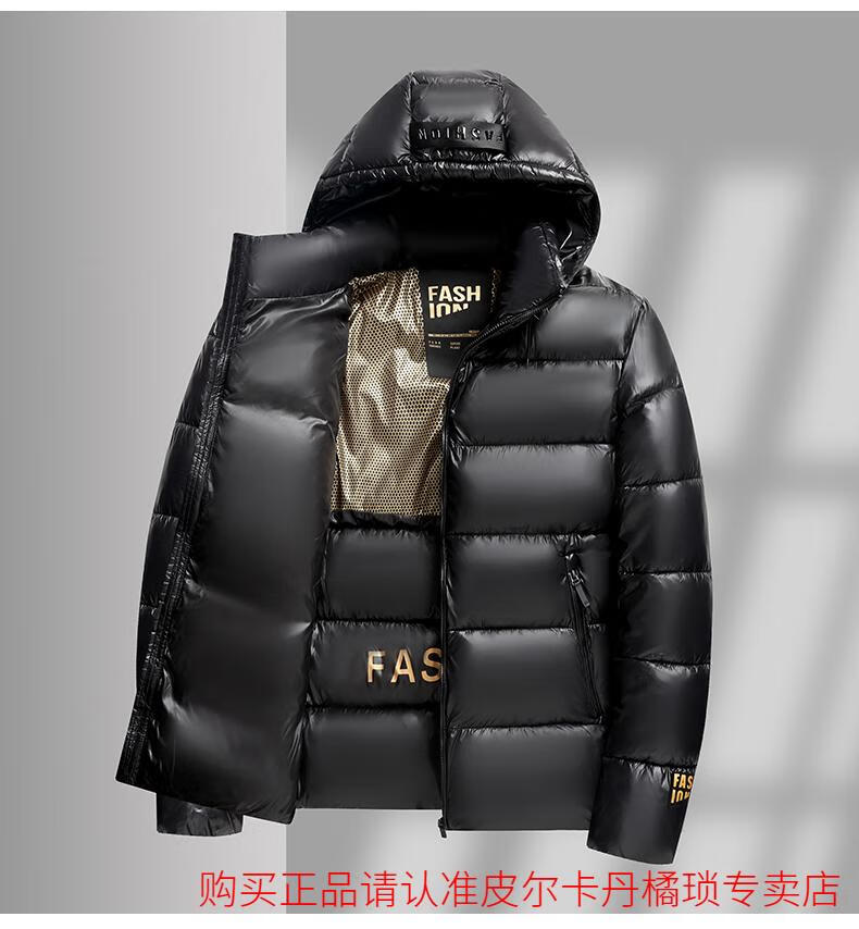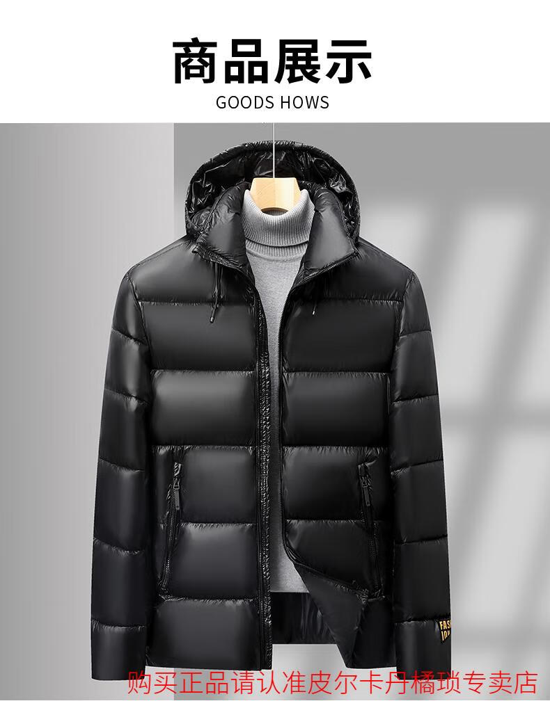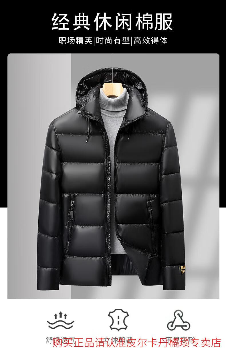 Pierre Cardin Black Gold Down Jacket Men's Winter Extra Thick Hooded Extreme Cold Clothing - 40 Short Warm Bread Jacket Men Black Windproof Anti-wrinkle Thickened Warmth L (Recommended weight 115-130 Jin Jin equals 0.5 kg)