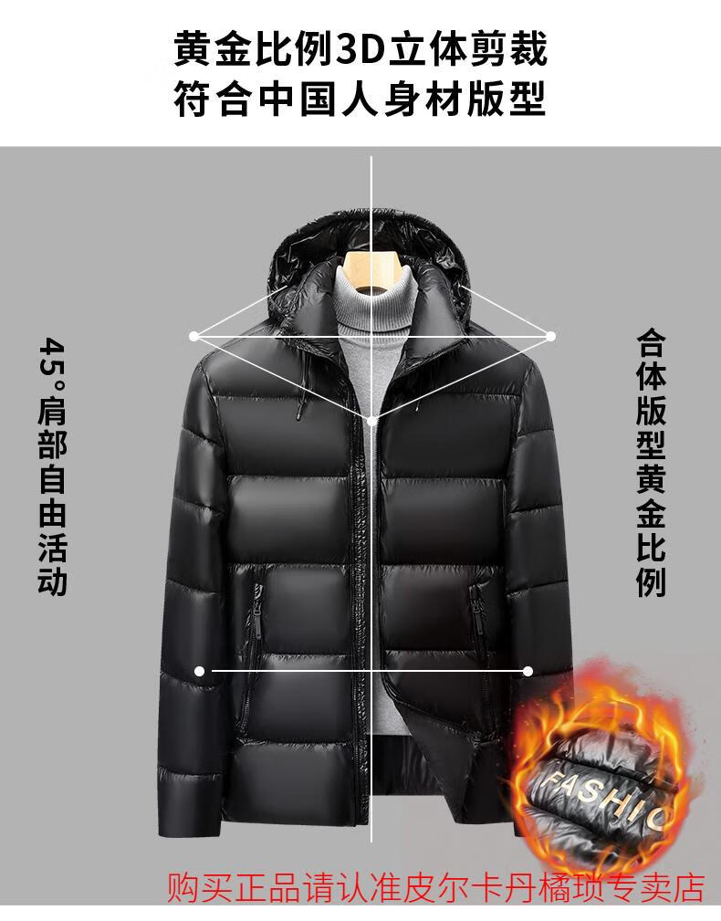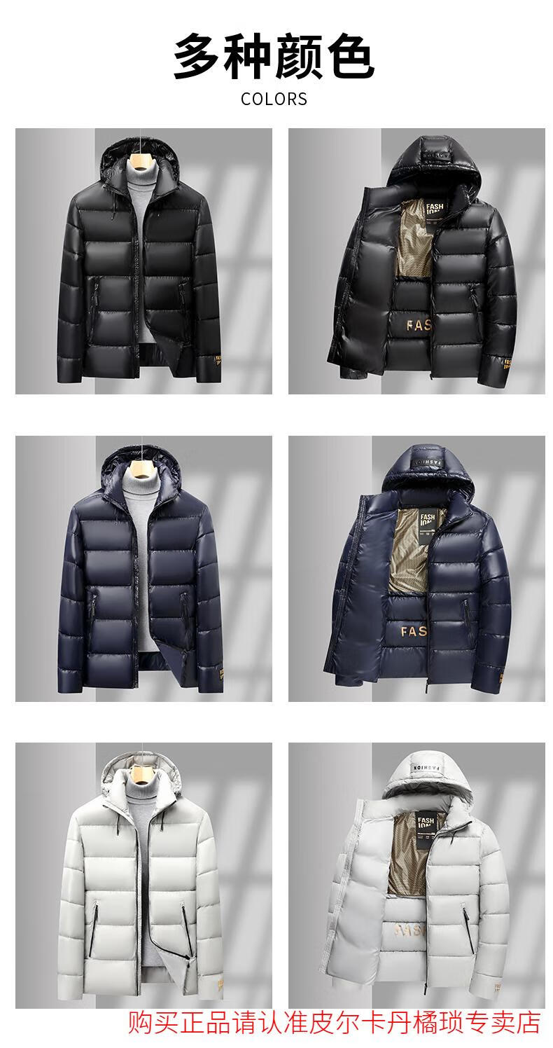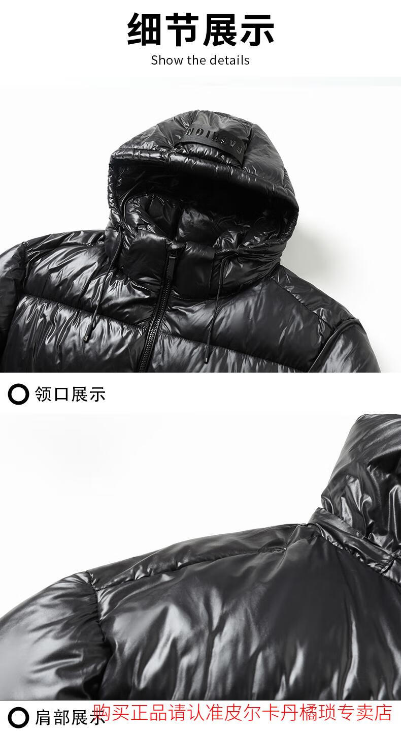 Pierre Cardin Black Gold Down Jacket Men's Winter Extra Thick Hooded Extreme Cold Clothing - 40 Short Warm Bread Jacket Men Black Windproof Anti-wrinkle Thickened Warmth L (Recommended weight 115-130 Jin Jin equals 0.5 kg)