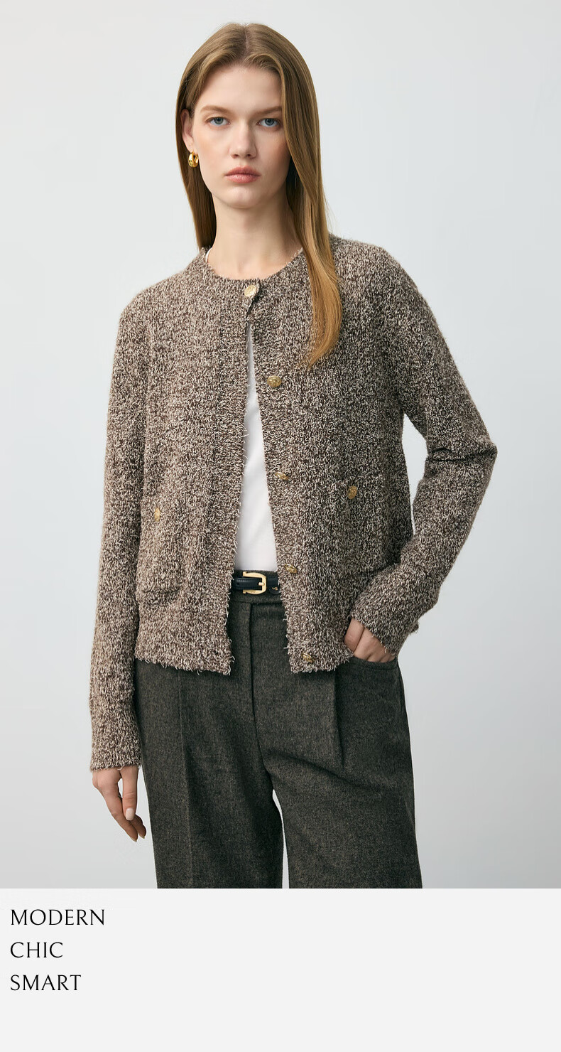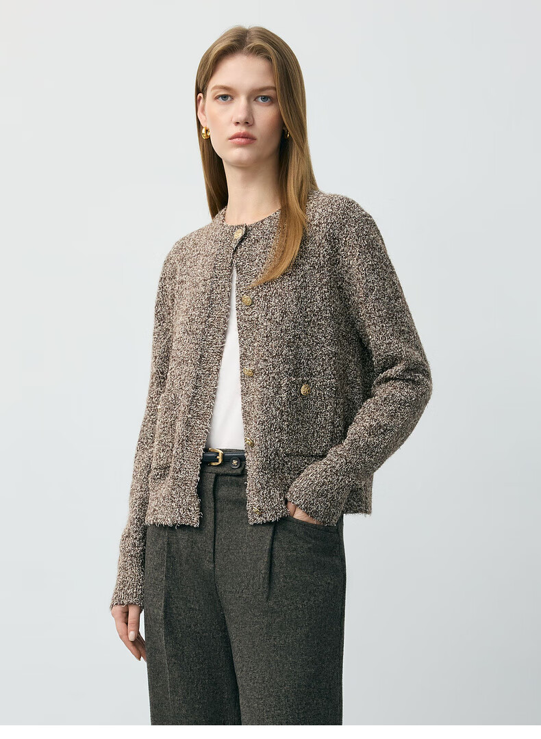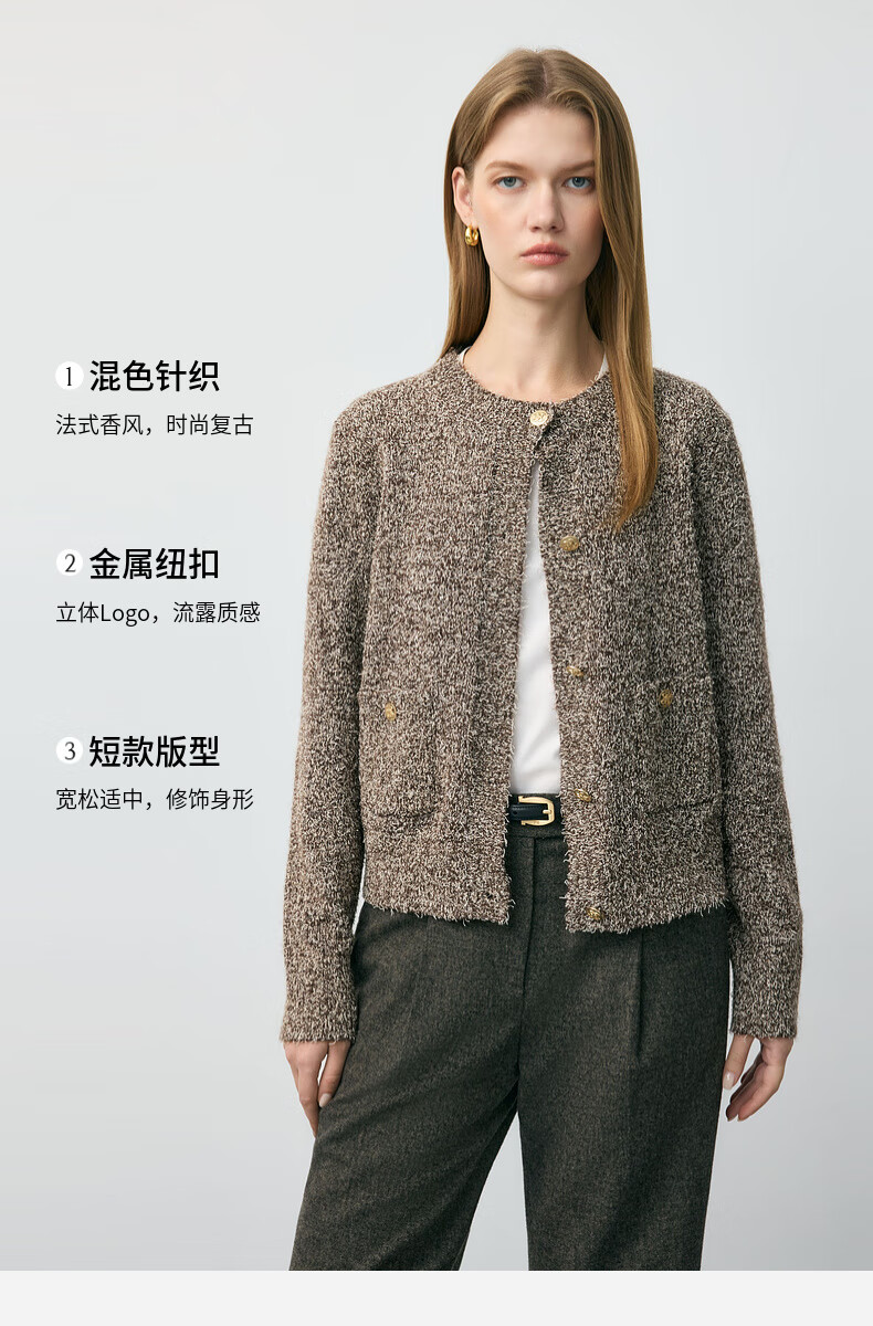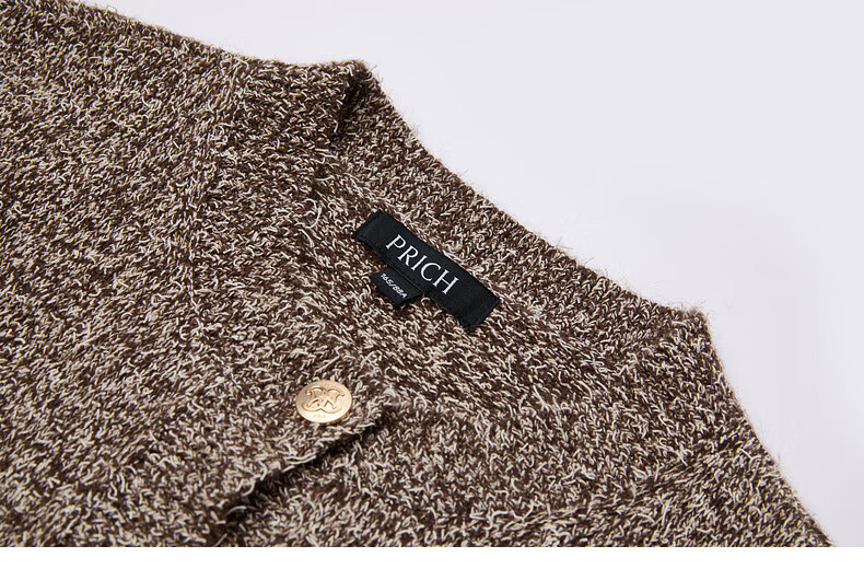 PRICH Fashion Little Fragrance Mohair Wool Mixed Color Yarn Knitted Cardigan 2025 Winter New Top Women 85 Brown S 160
