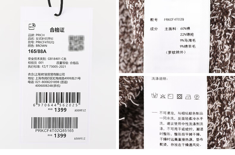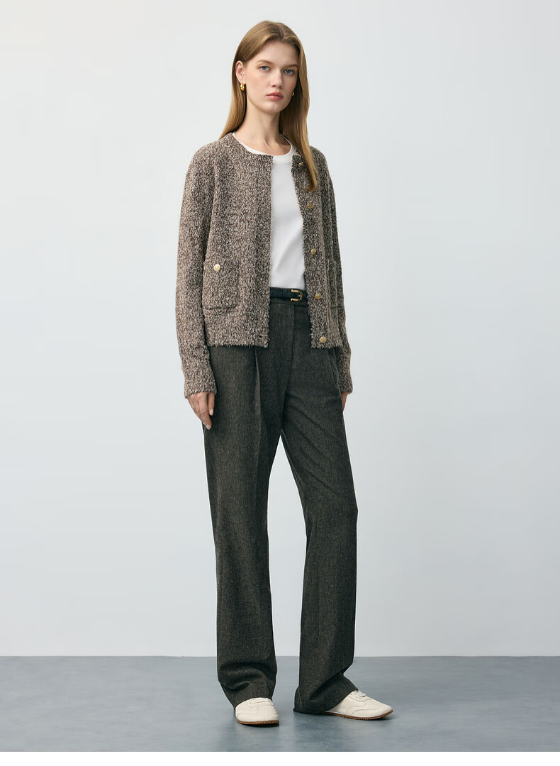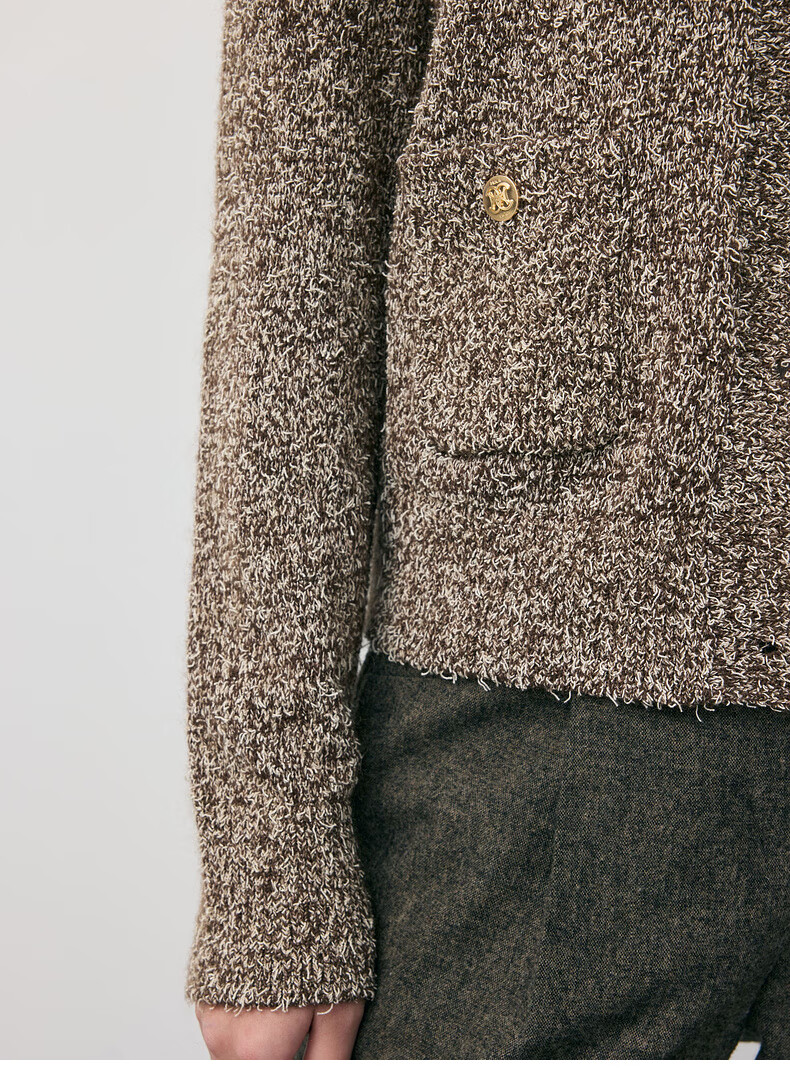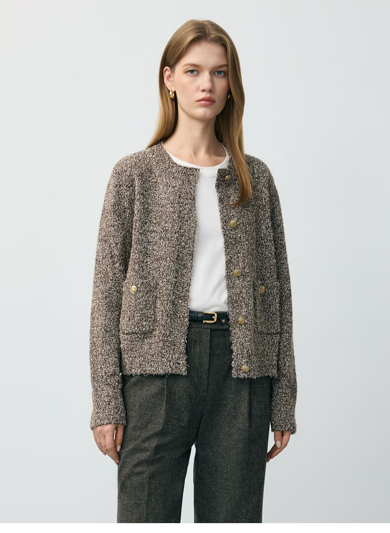 PRICH Fashion Little Fragrance Mohair Wool Mixed Color Yarn Knitted Cardigan 2025 Winter New Top Women 85 Brown S 160