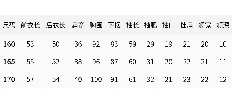 China (cm) 160-165/84-86 165-170 / 88-90 167-172 / 92-96 168-173 / 98-102 170-176 / 106-110
