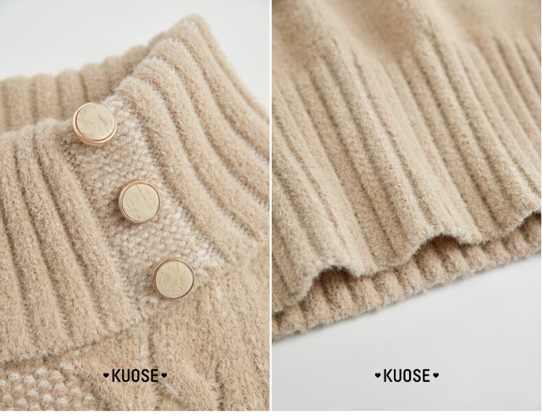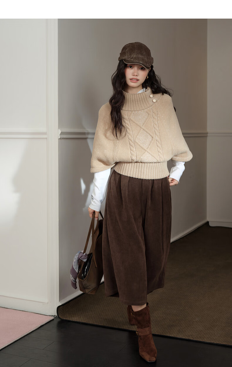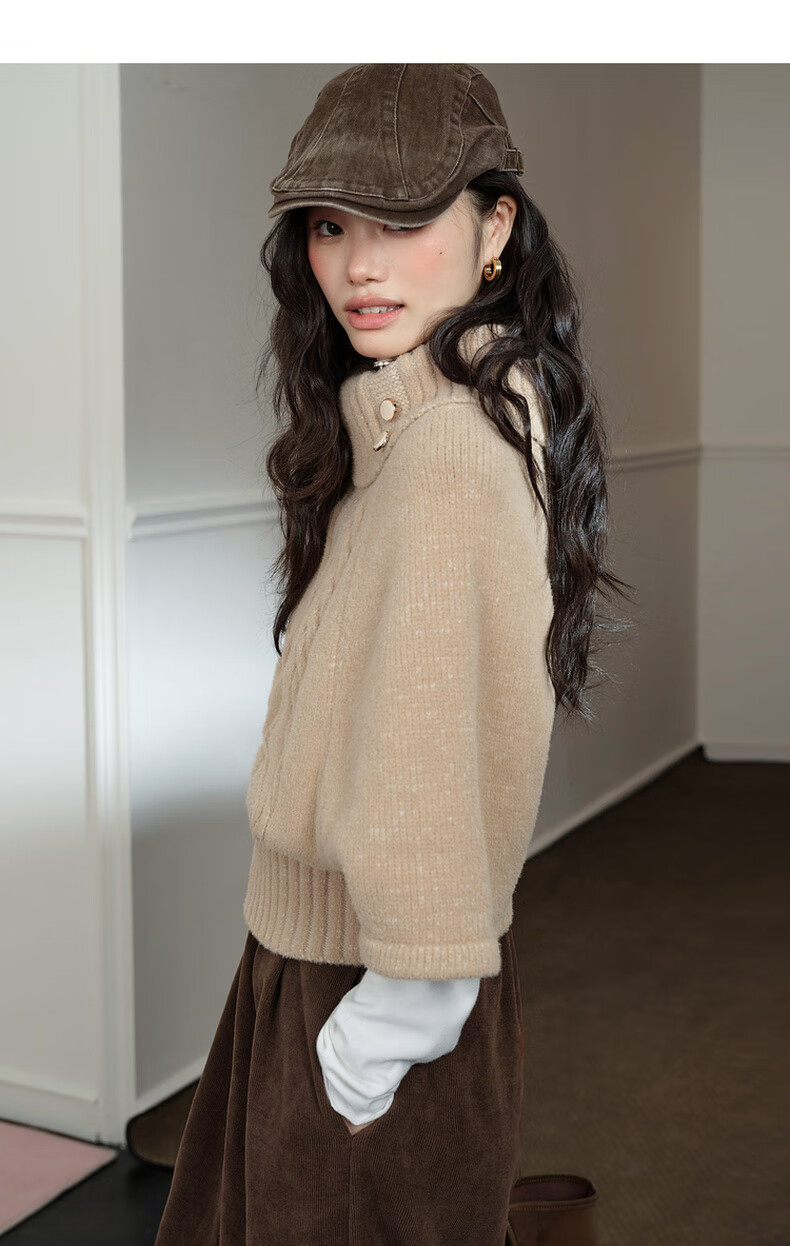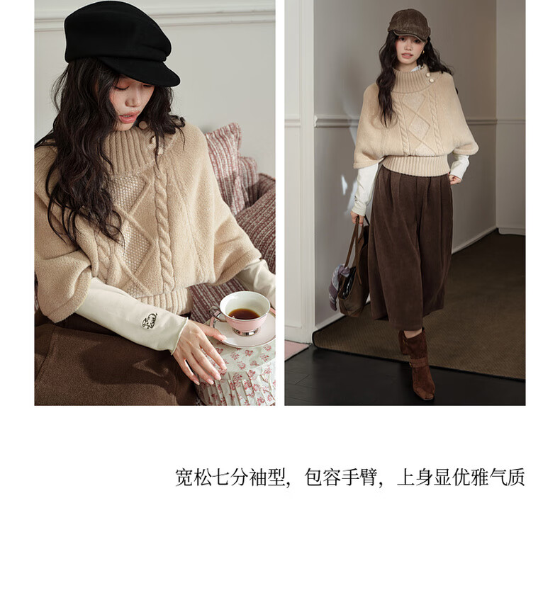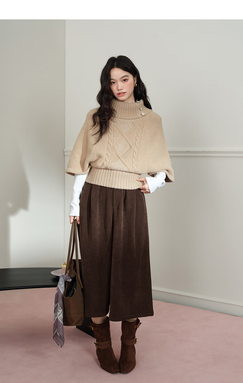 Wide color temperament woolen cape shawl top twist half turtleneck sweater 2025 autumn and winter new women's knitted sweater khaki color issued on November 27 M