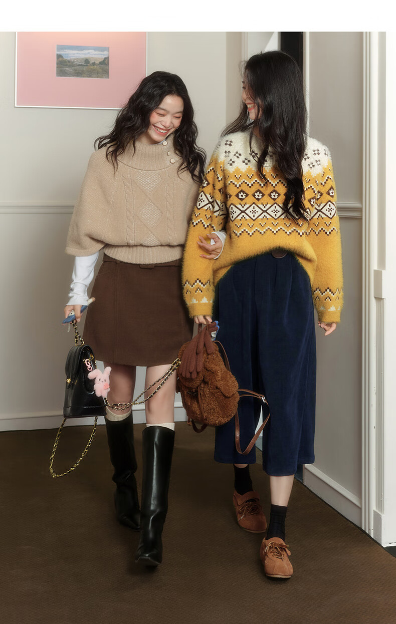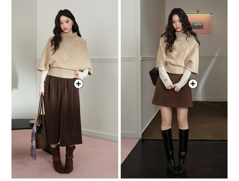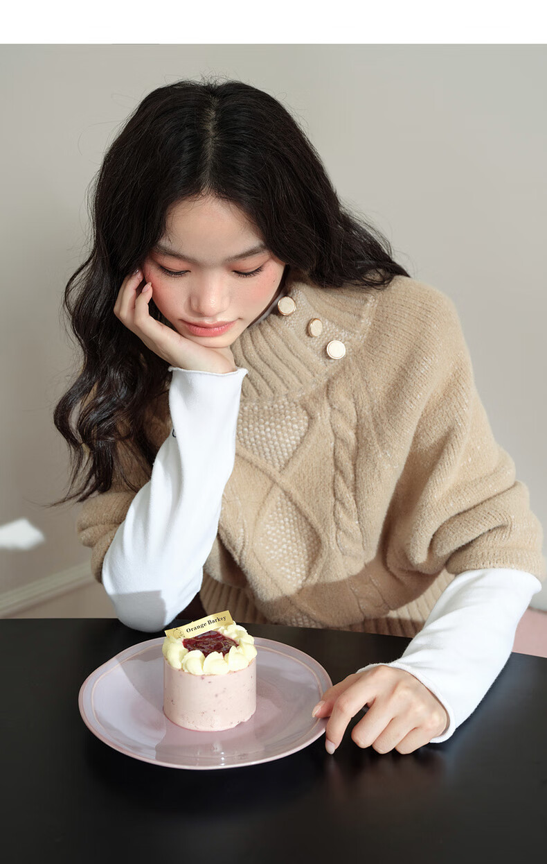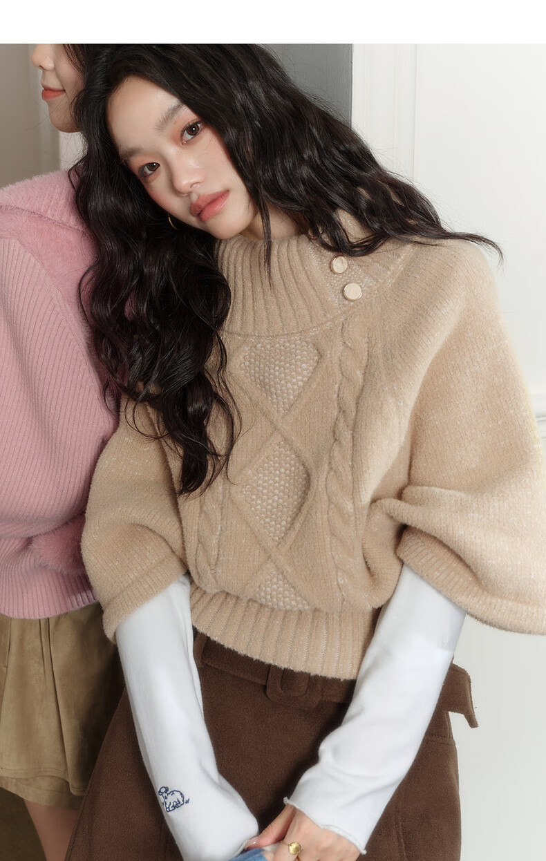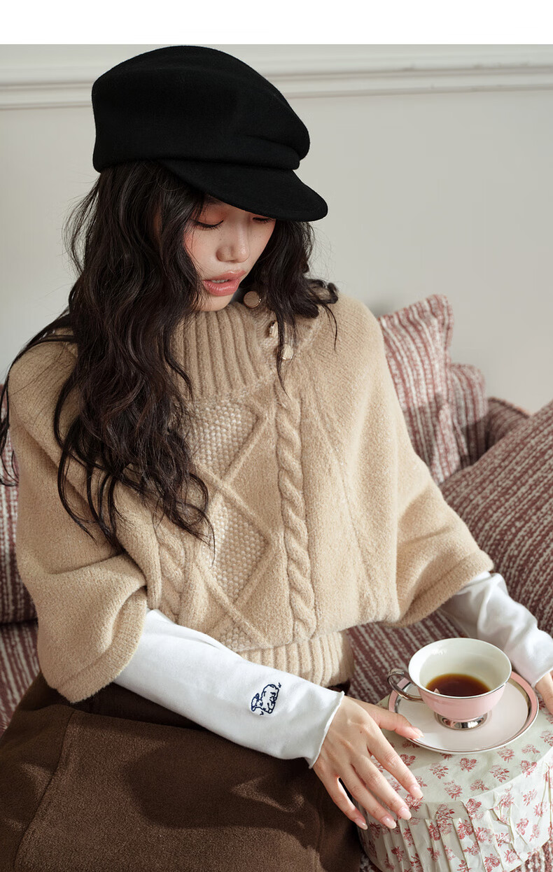 Wide color temperament woolen cape shawl top twist half turtleneck sweater 2025 autumn and winter new women's knitted sweater khaki color issued on November 27 M