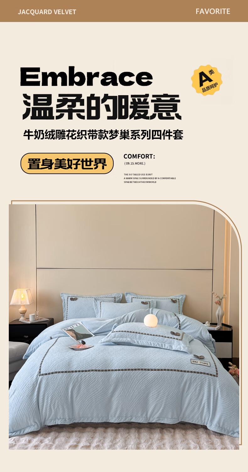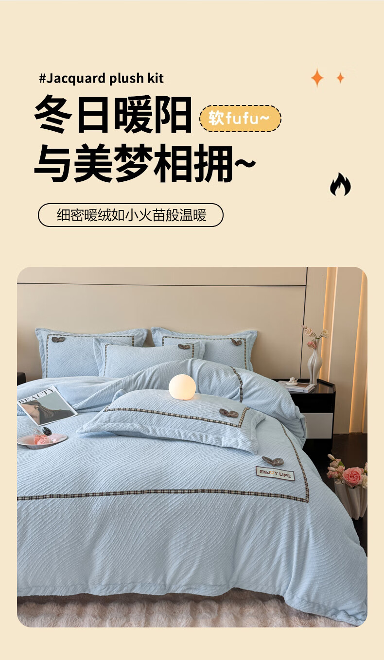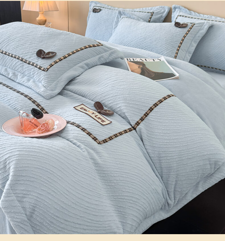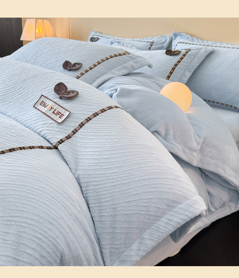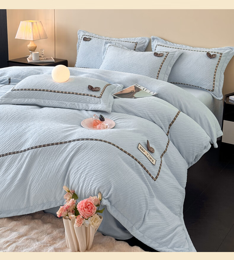 Mercury series home textiles 200 count autumn and winter milk velvet bed four-piece set Class A baby velvet winter thickened bed sheet quilt cover carved coral Dream Nest-Starry Sky Blue 2.0 bed sheet four-piece set-quilt cover 220*240