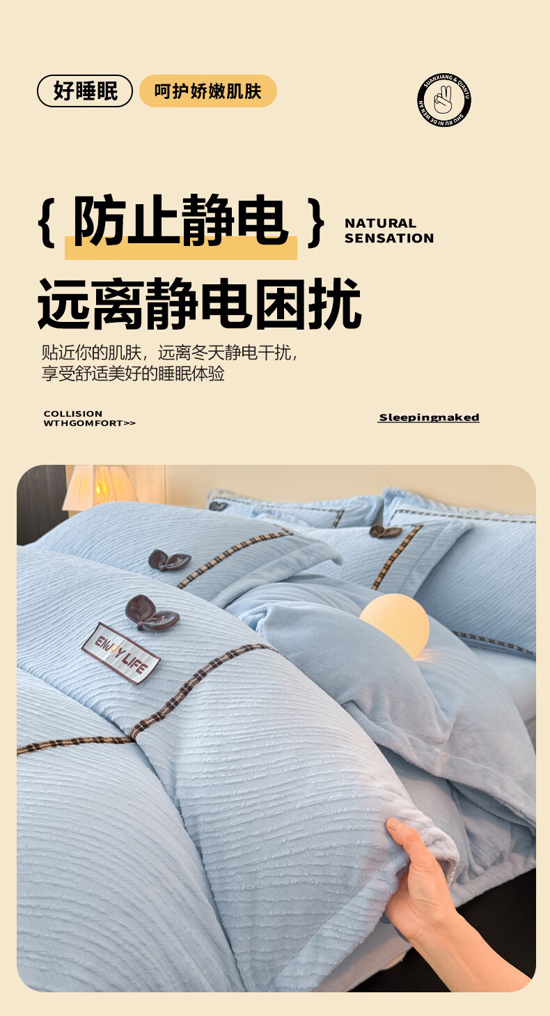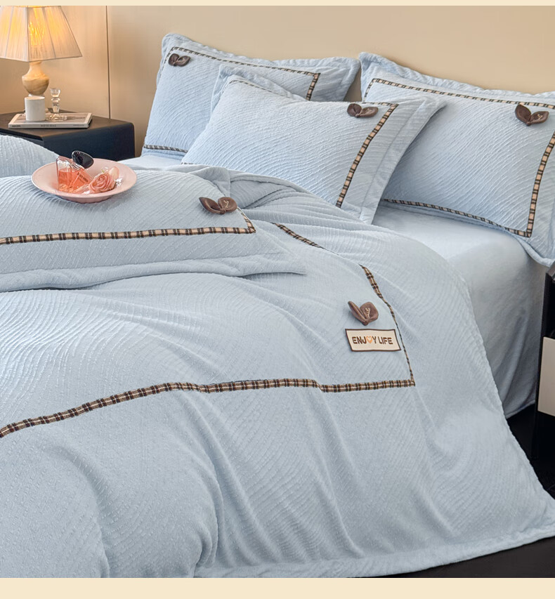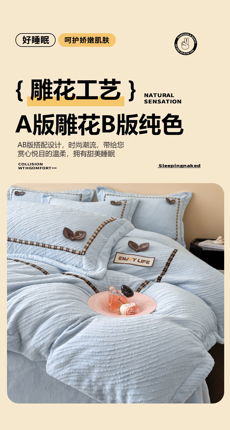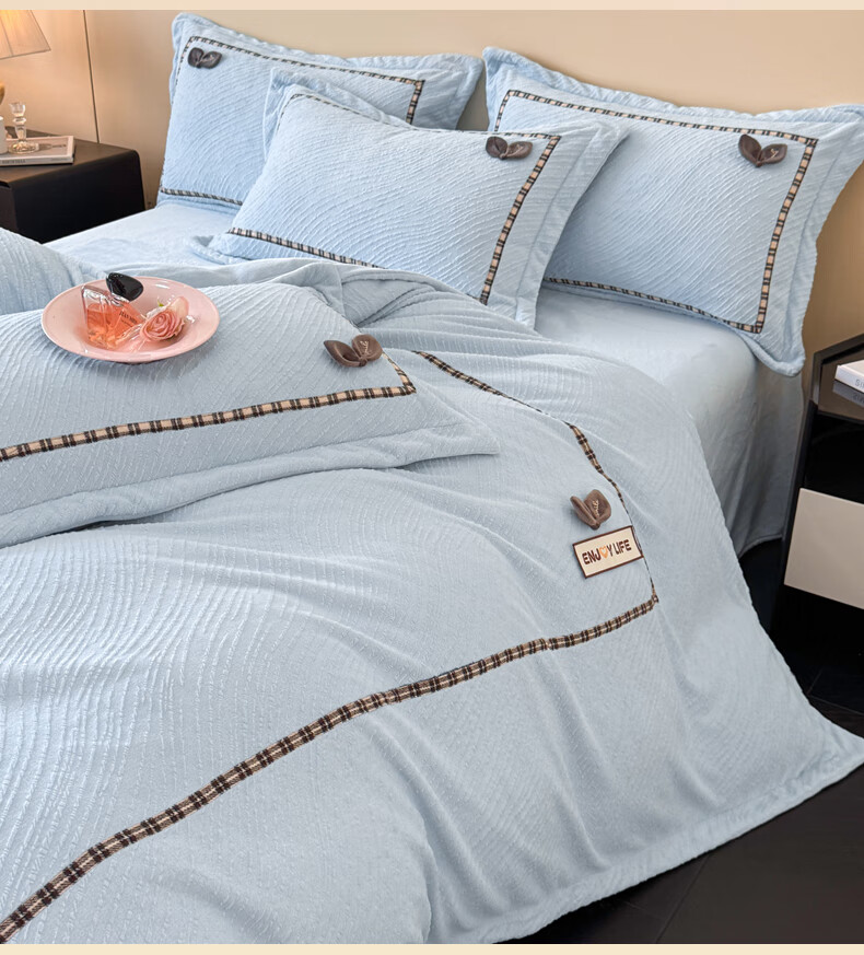 Mercury series home textiles 200 count autumn and winter milk velvet bed four-piece set Class A baby velvet winter thickened bed sheet quilt cover carved coral Dream Nest-Starry Sky Blue 2.0 bed sheet four-piece set-quilt cover 220*240