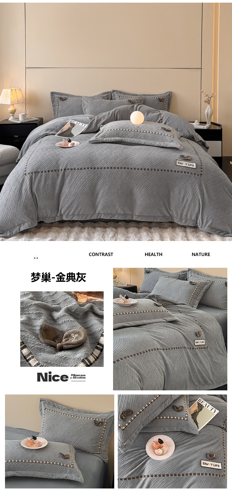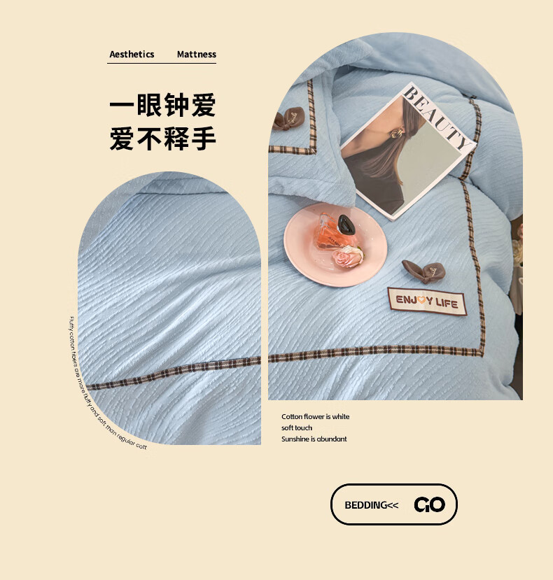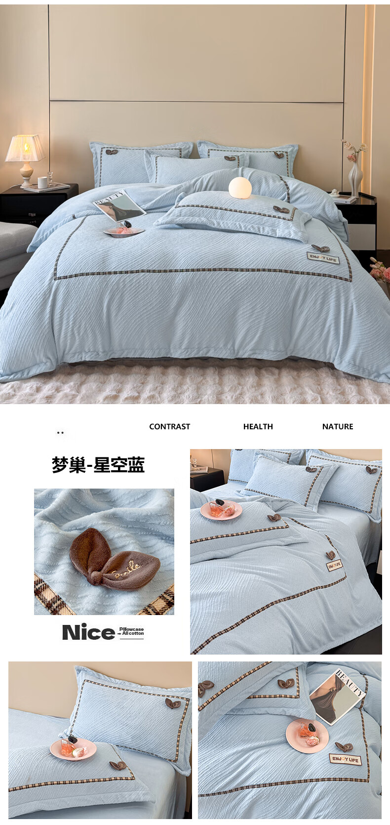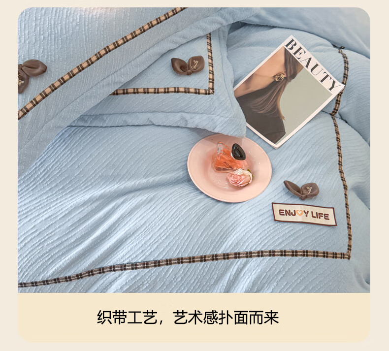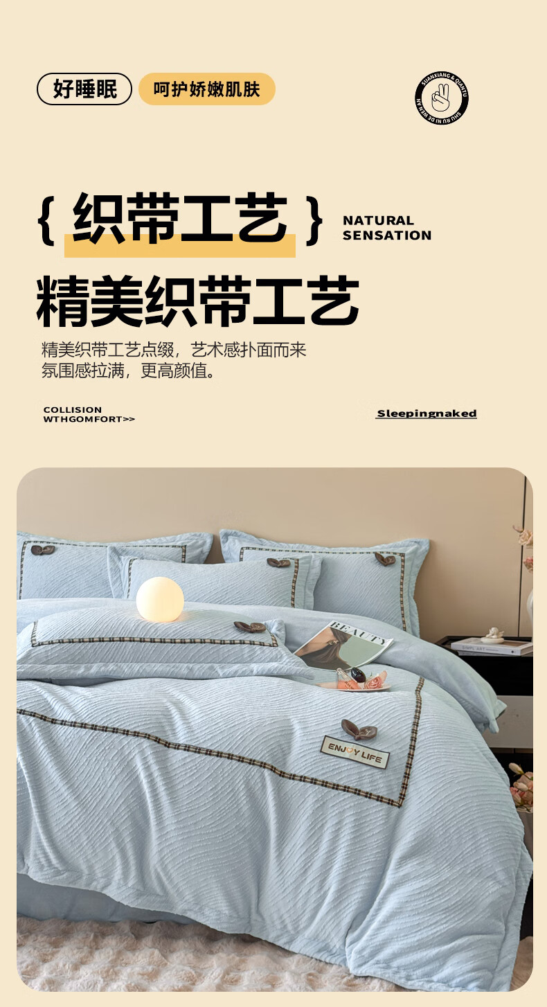 Mercury series home textiles 200 count autumn and winter milk velvet bed four-piece set Class A baby velvet winter thickened bed sheet quilt cover carved coral Dream Nest-Starry Sky Blue 2.0 bed sheet four-piece set-quilt cover 220*240