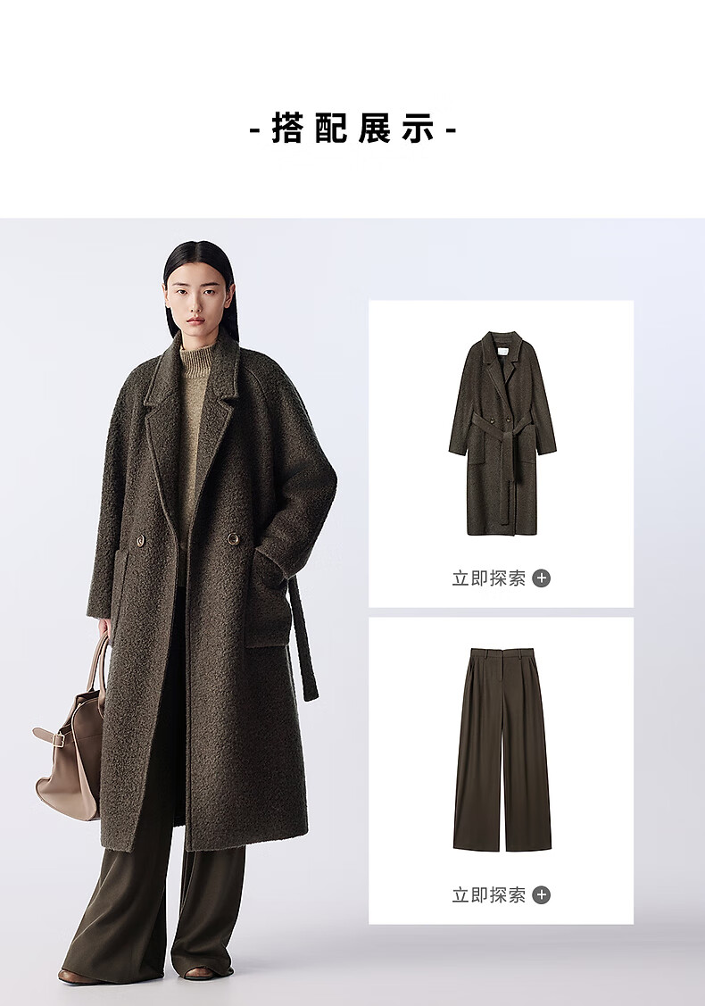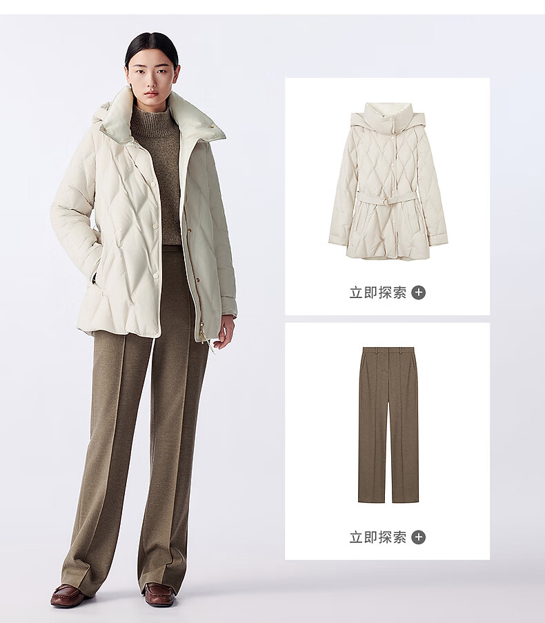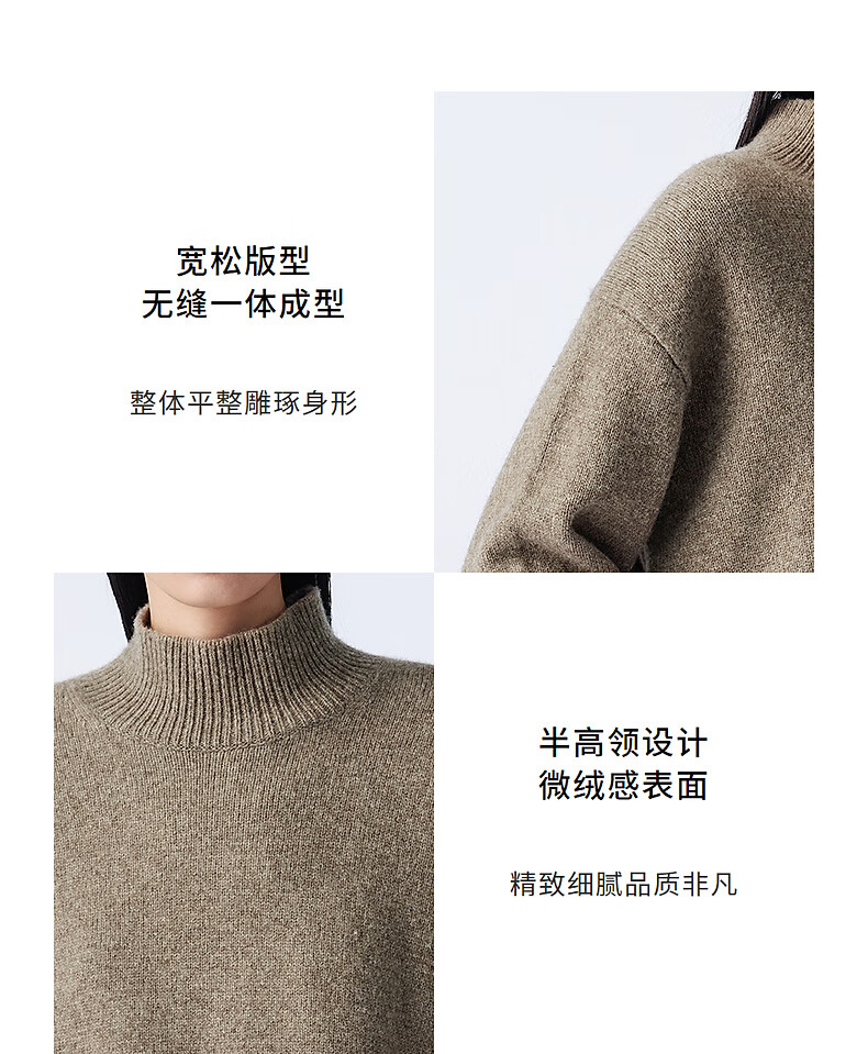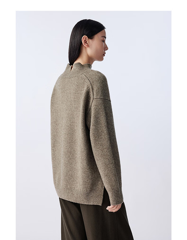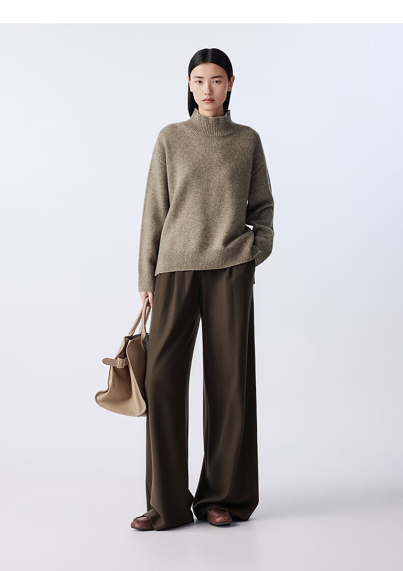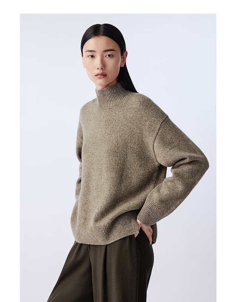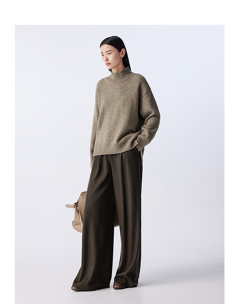 LANCY wool cow down new winter high collar loose soft short wool sweater oatmeal milk color M