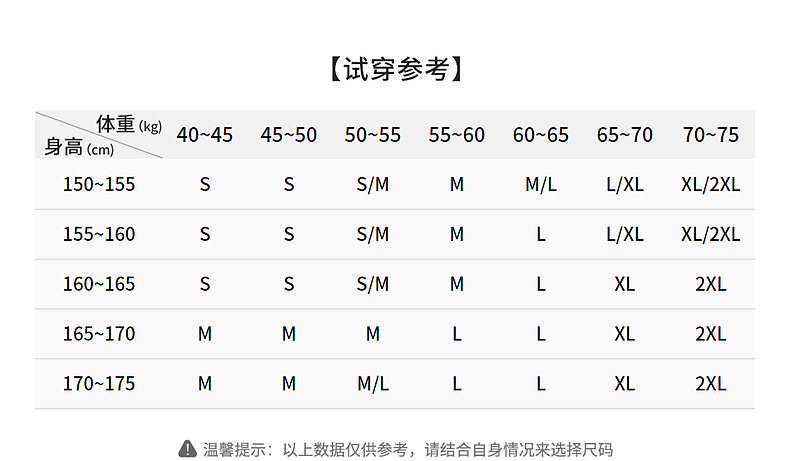 China (cm) 160-165/84-86 165-170 / 88-90 167-172 / 92-96 168-173 / 98-102 170-176 / 106-110
