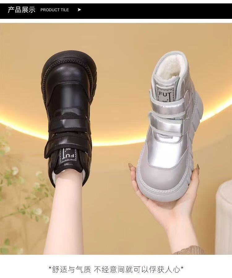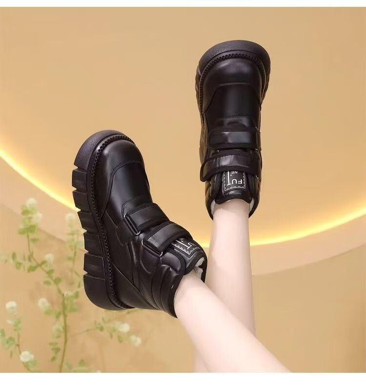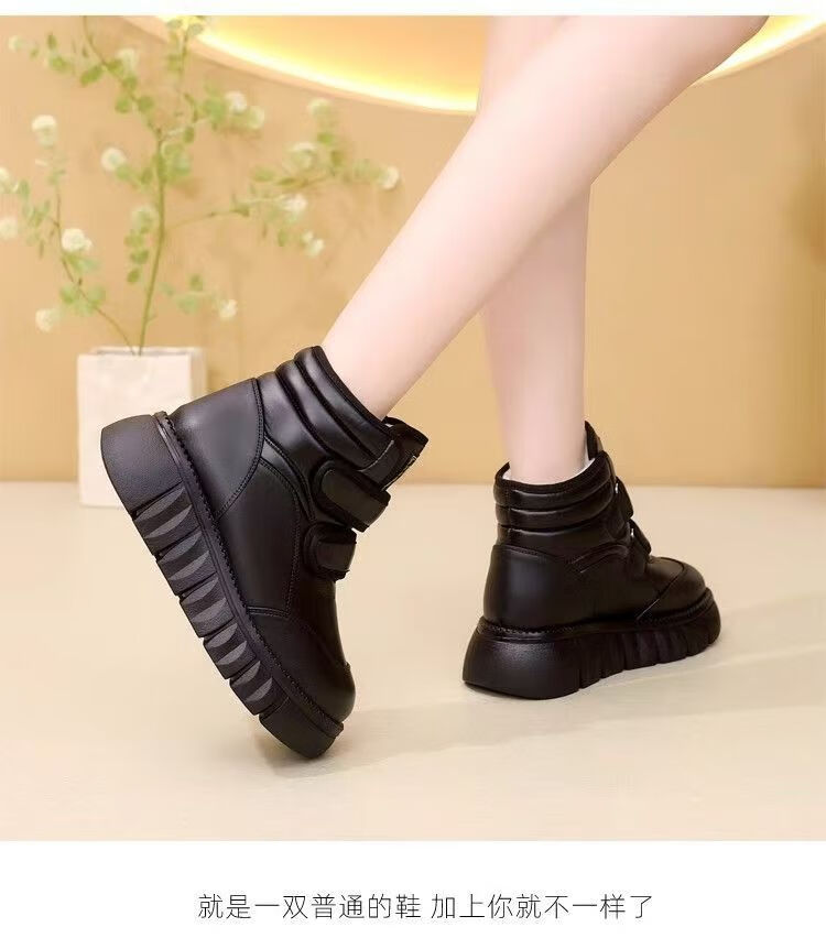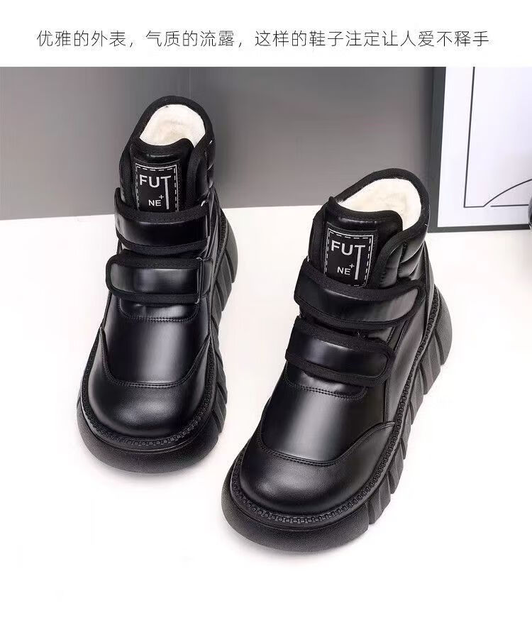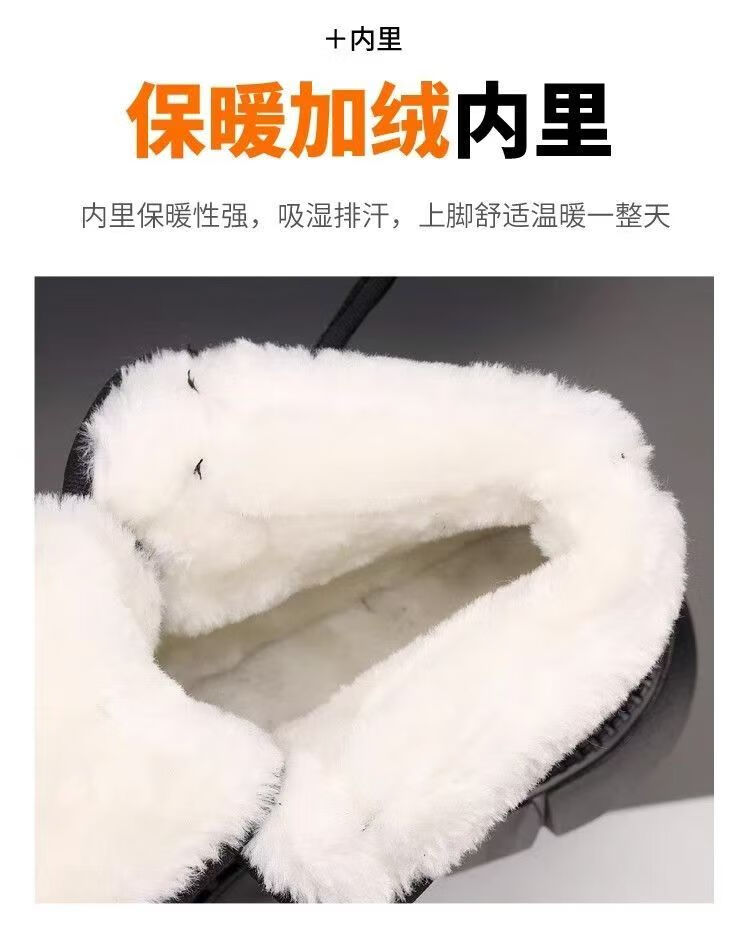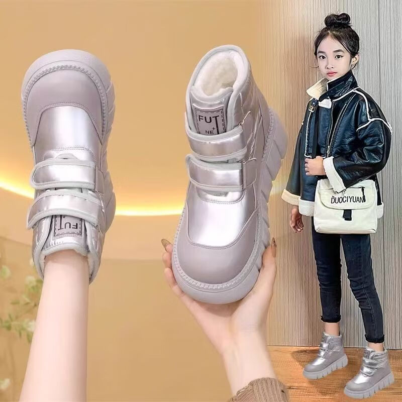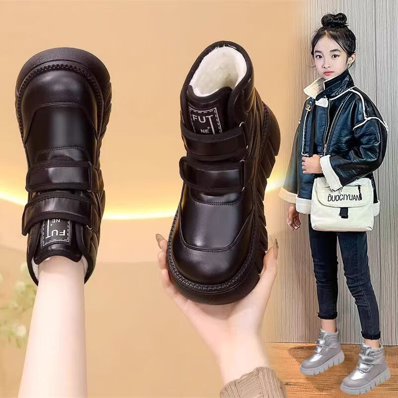 Girls' velvet snow boots 2025 winter new waterproof thickened fur all-in-one children's boots large cotton shoes short boots black size 33/inner length 20.4cm