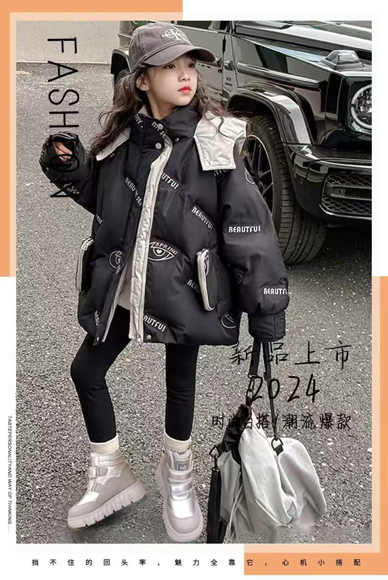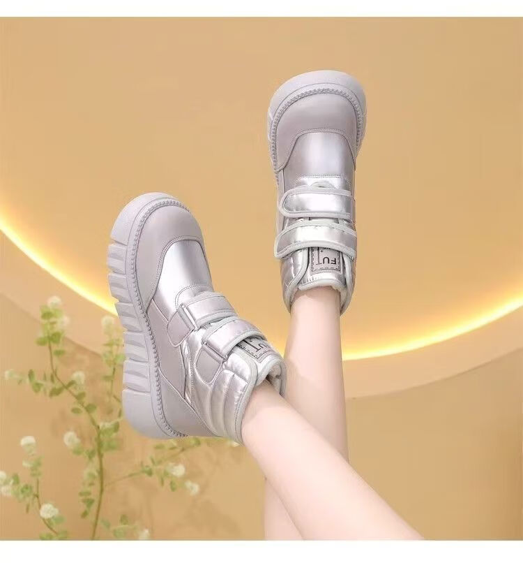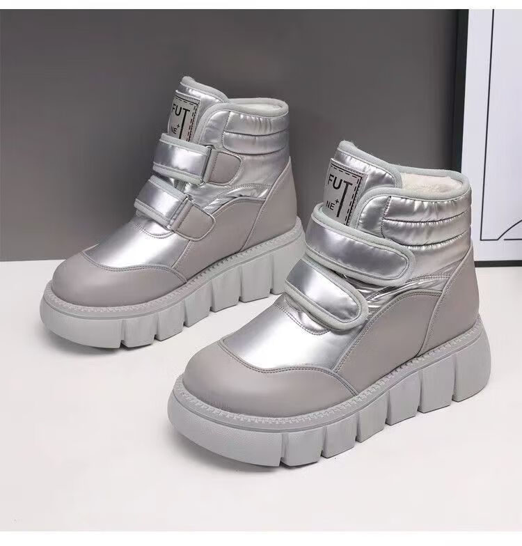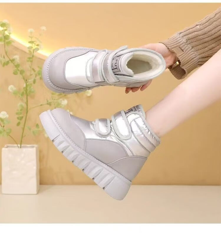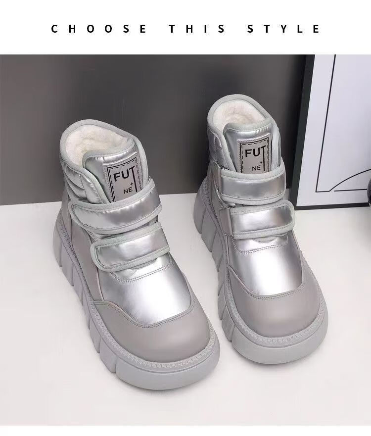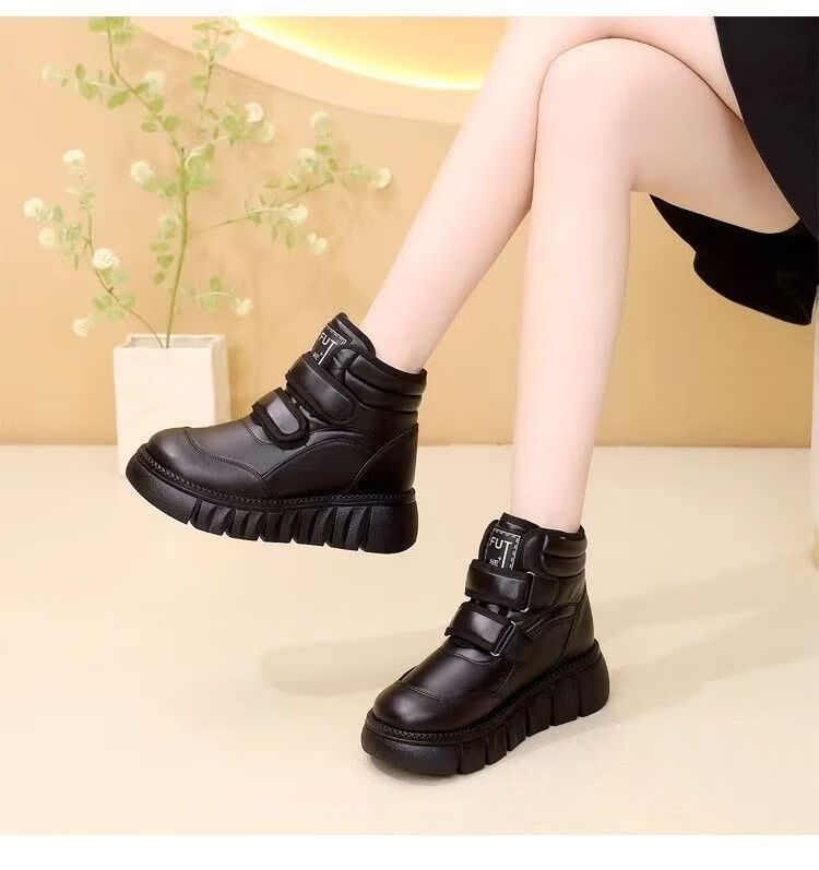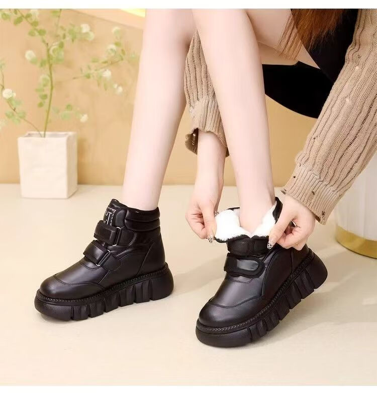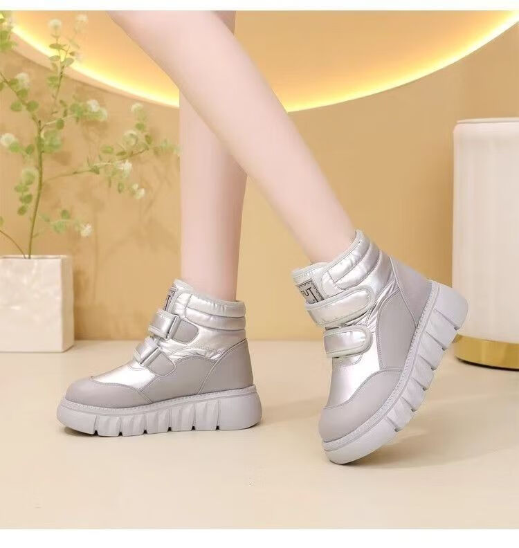 Girls' velvet snow boots 2025 winter new waterproof thickened fur all-in-one children's boots large cotton shoes short boots black size 33/inner length 20.4cm