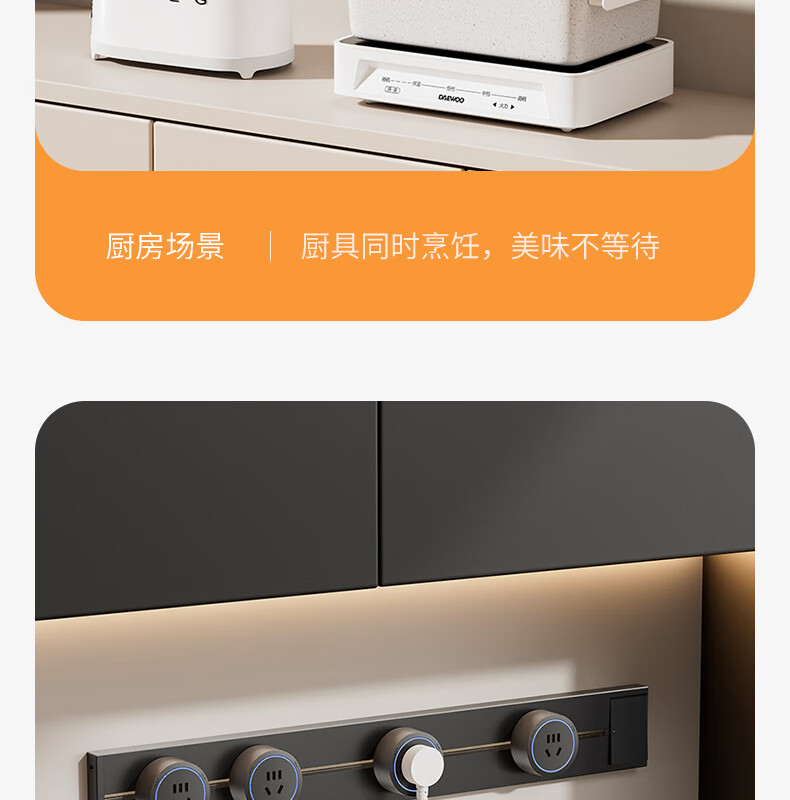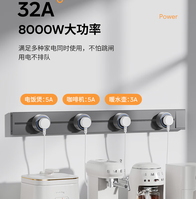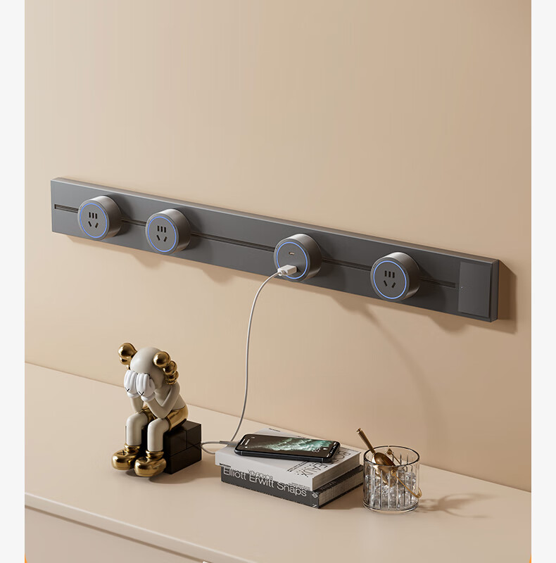 32A movable extra long track socket 60cm80 100 120cm household extended sliding rail socket gray 60CM track + 3 five-hole adapters