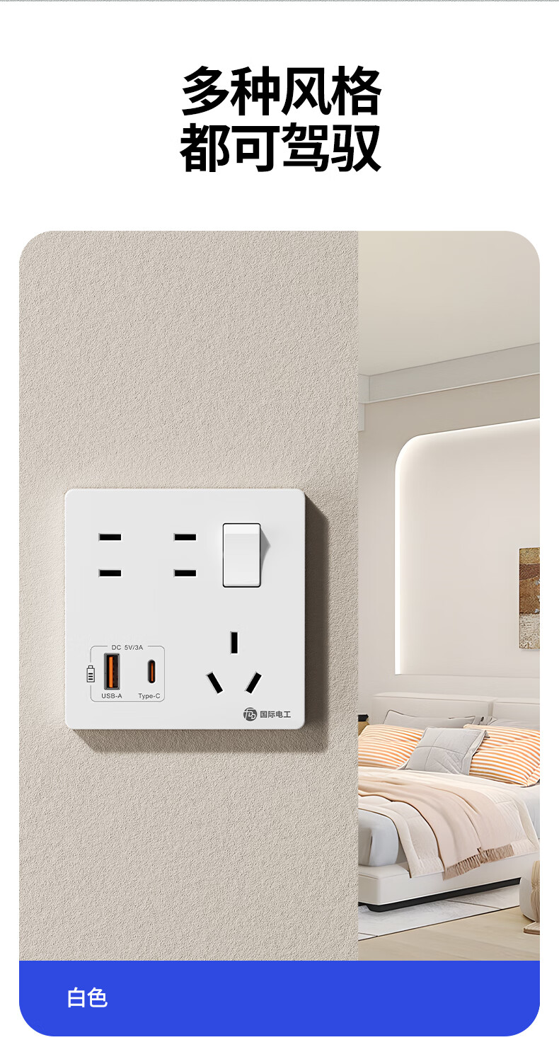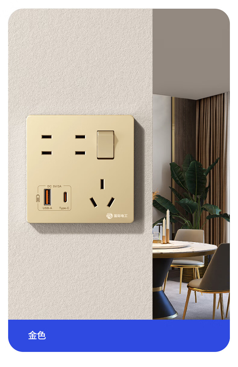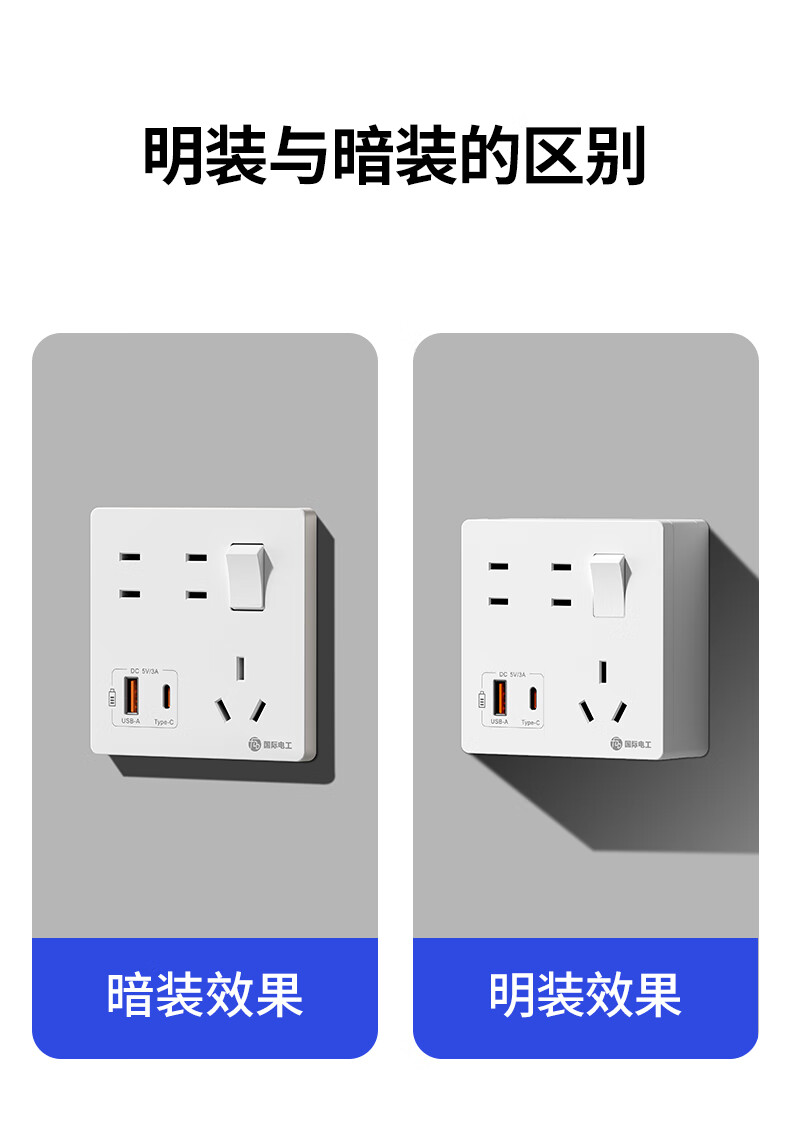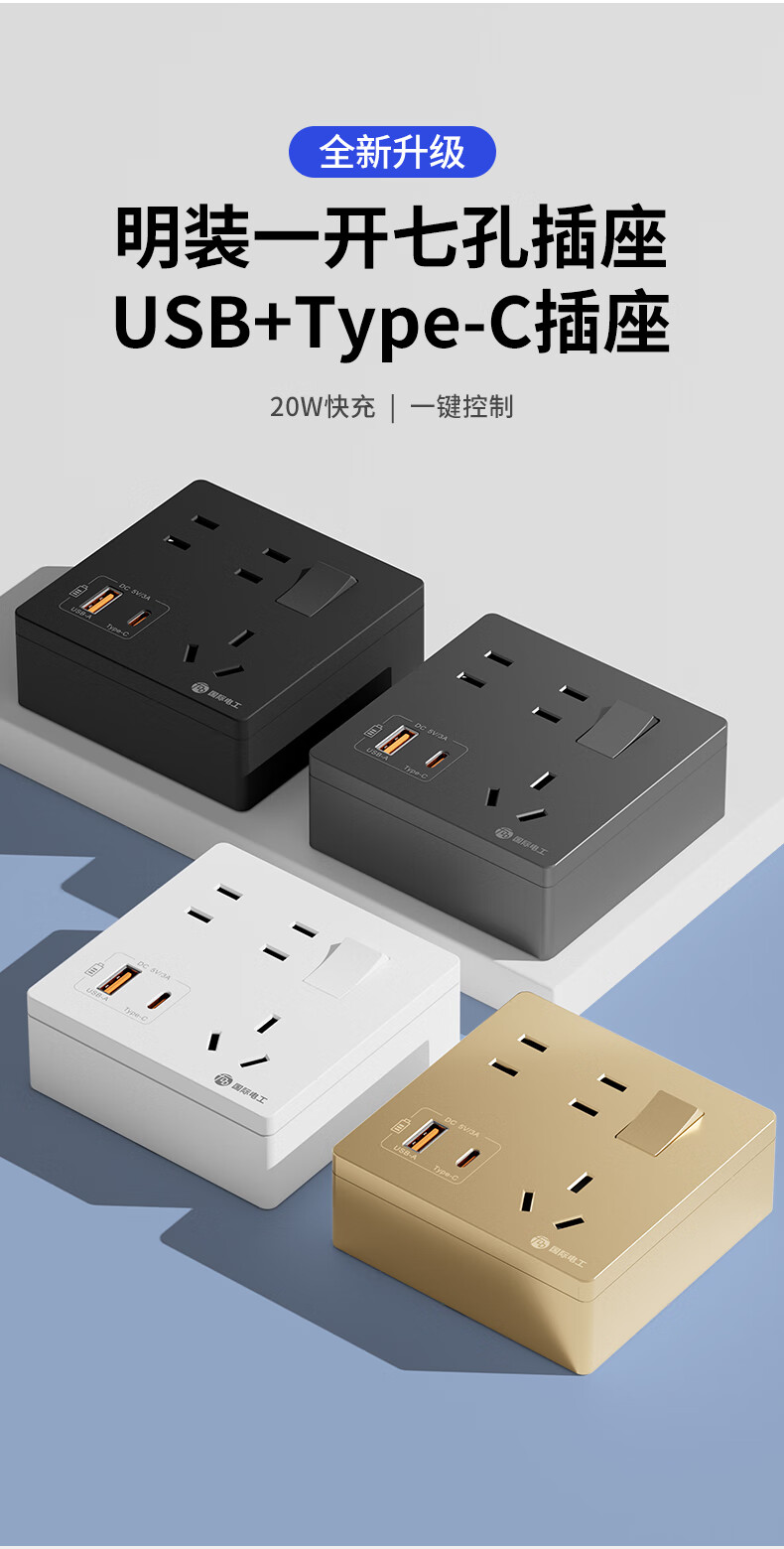 Exposed fast charging socket 1 open multi-hole converter type 86 one-turn multi-expansion plug-in extension USB with type-c standard model concealed three-port Type-c+USBA