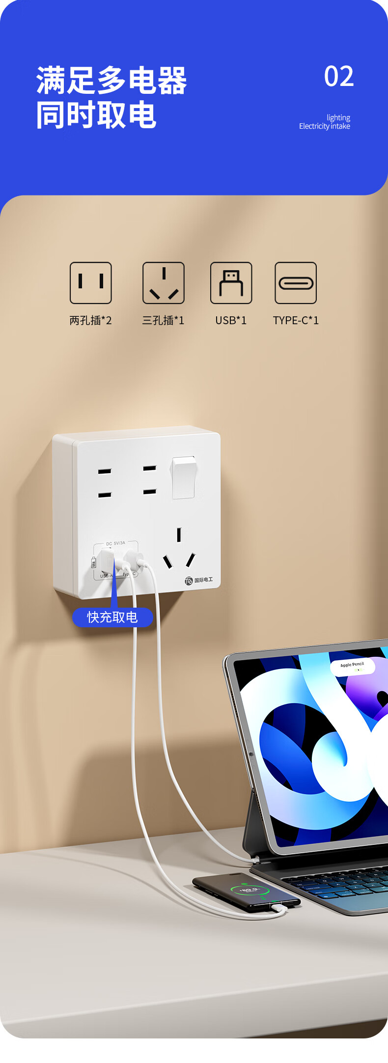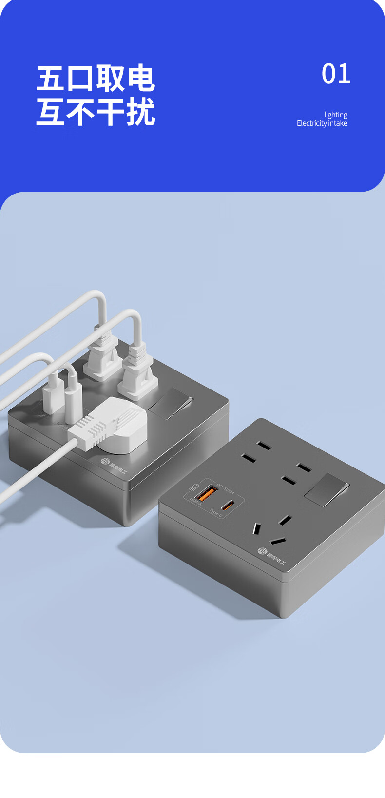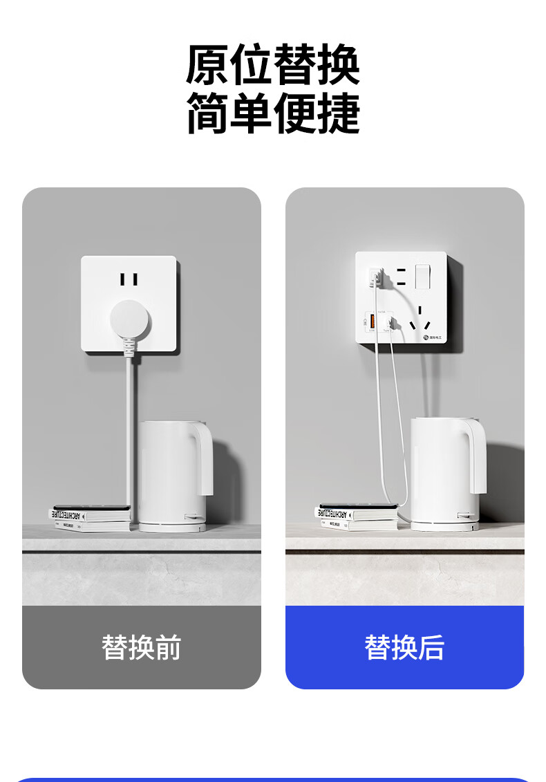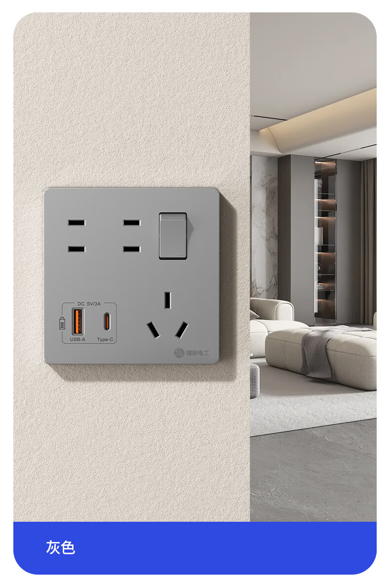 Exposed fast charging socket 1 open multi-hole converter type 86 one-turn multi-expansion plug-in extension USB with type-c standard model concealed three-port Type-c+USBA