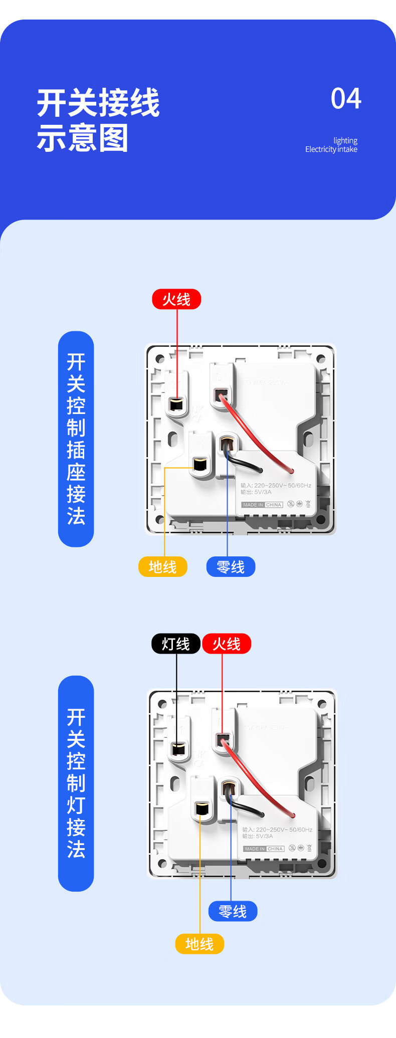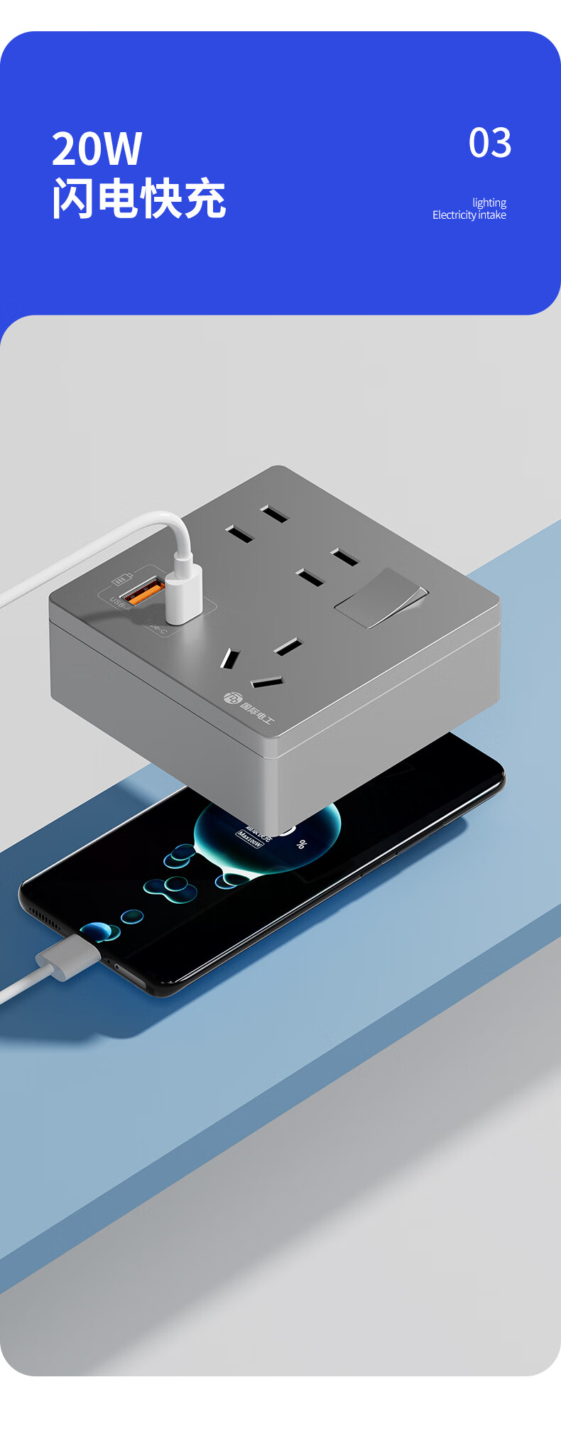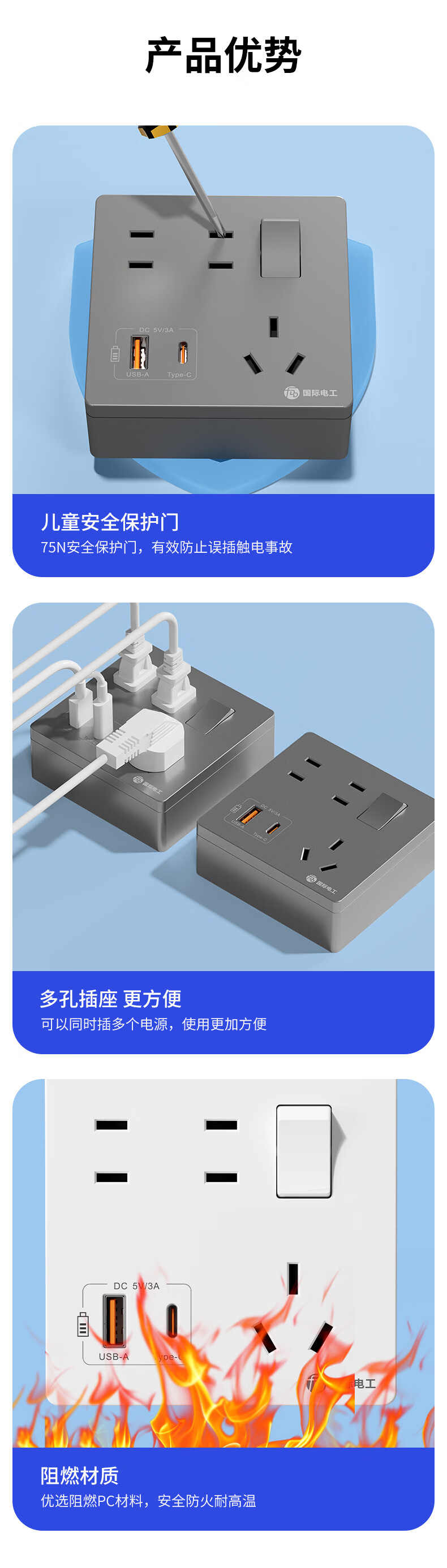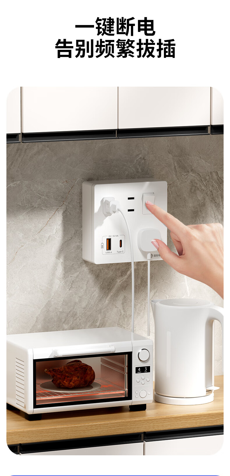 Exposed fast charging socket 1 open multi-hole converter type 86 one-turn multi-expansion plug-in extension USB with type-c standard model concealed three-port Type-c+USBA