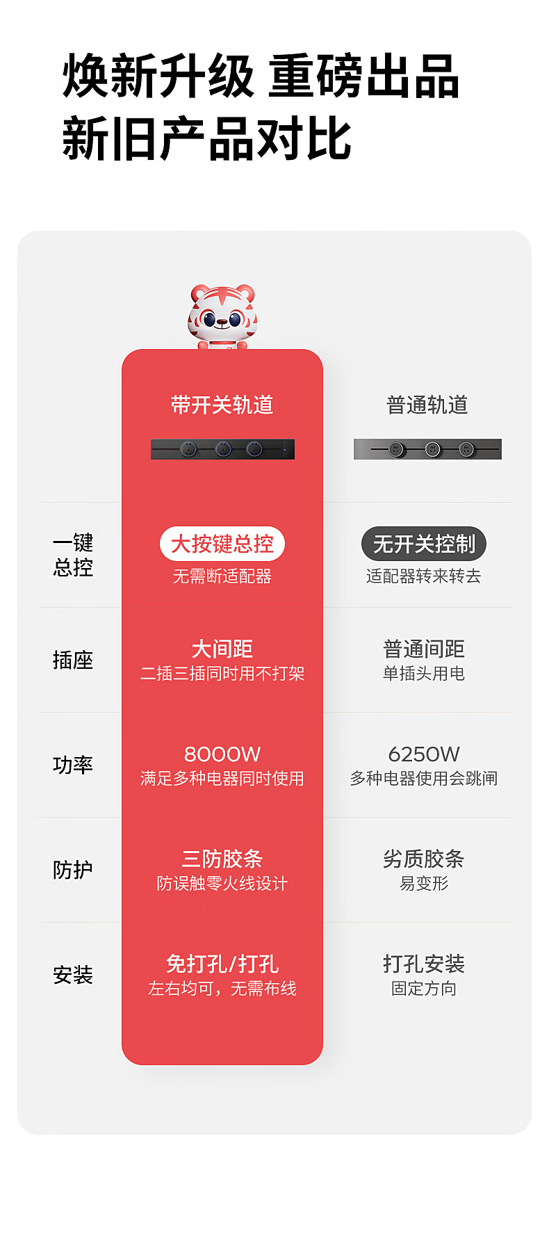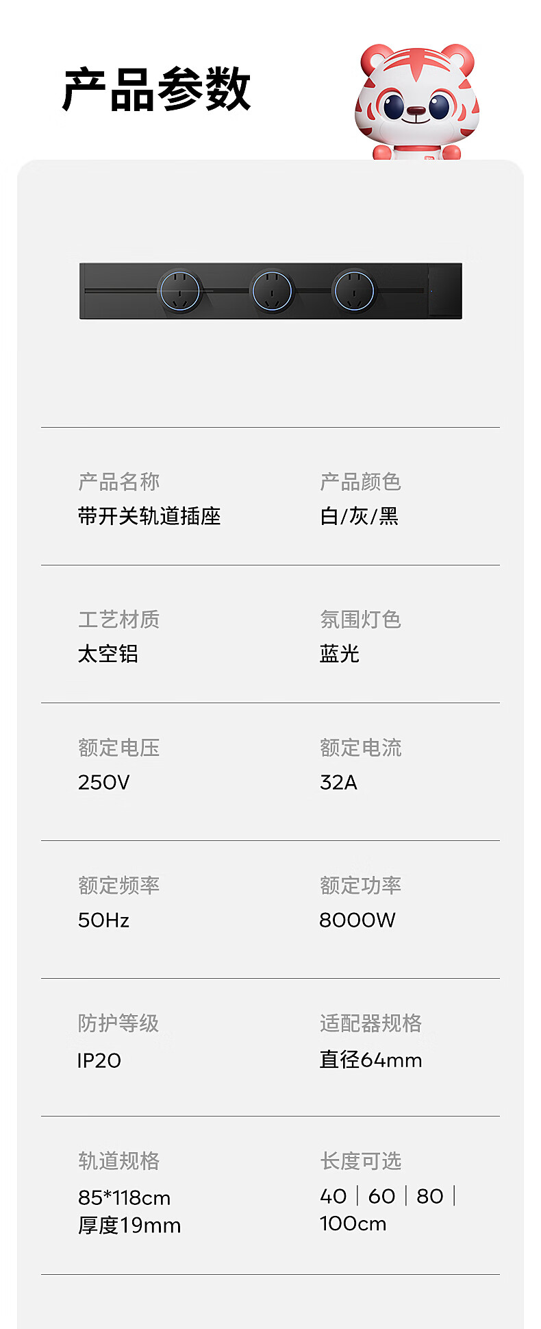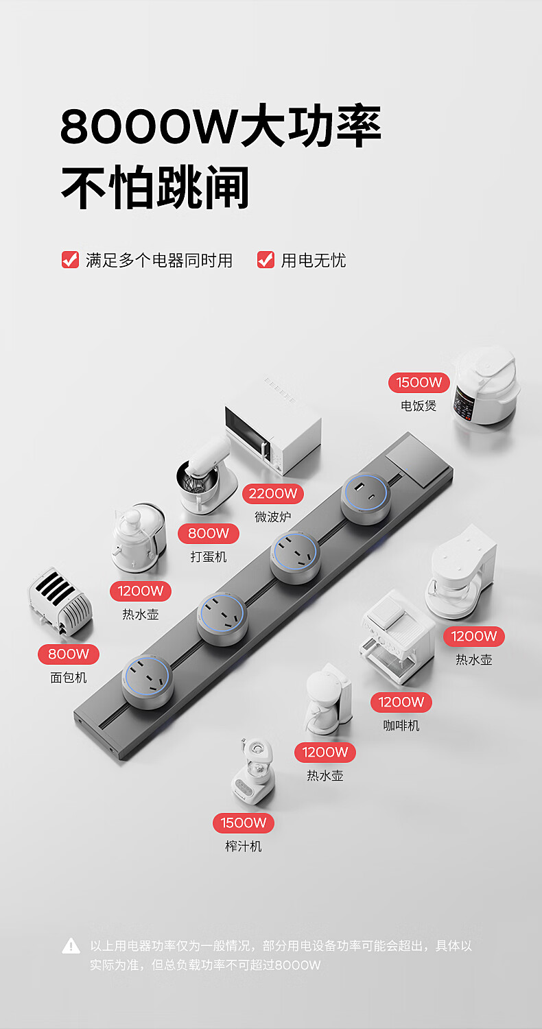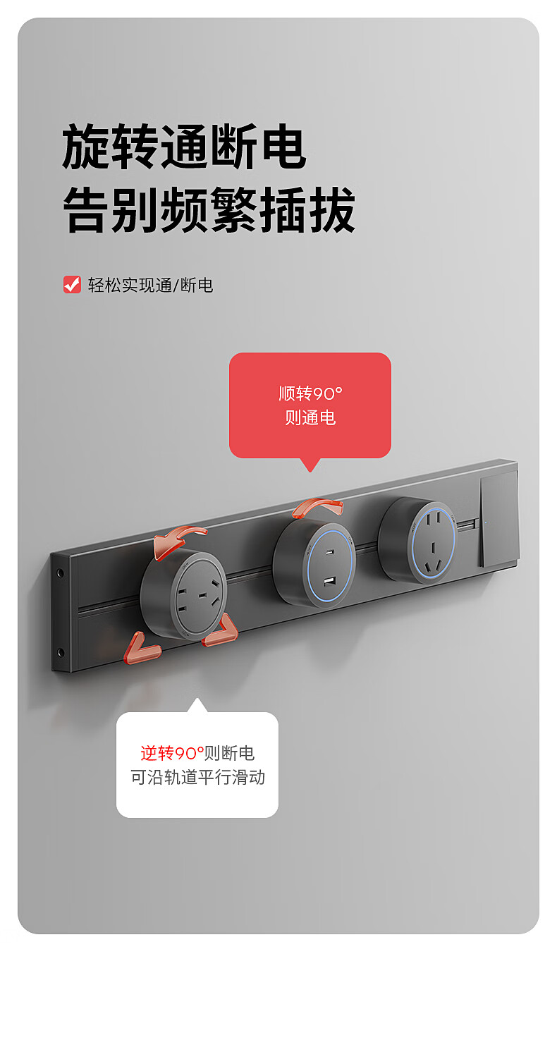 Electrician removable track socket extension home kitchen sideboard slide rail sliding rail magnetic plug strip white-blue light five-hole socket