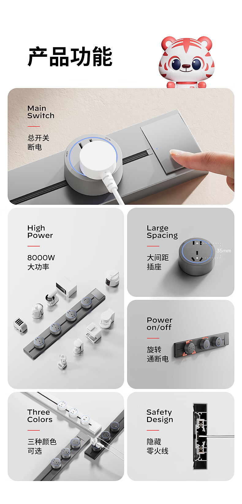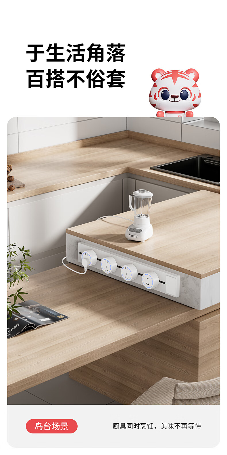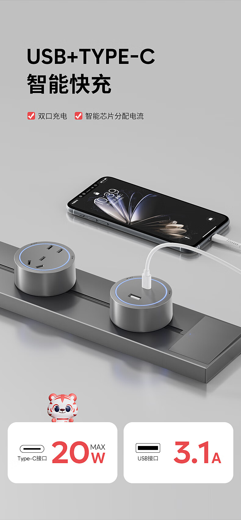 Electrician removable track socket extension home kitchen sideboard slide rail sliding rail magnetic plug strip white-blue light five-hole socket