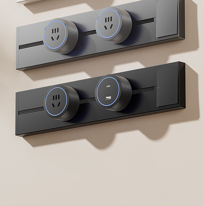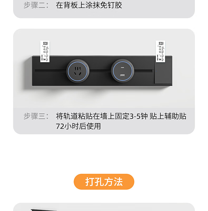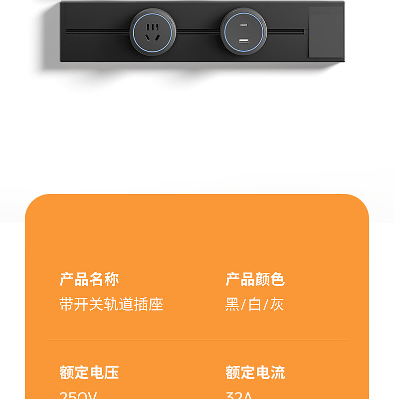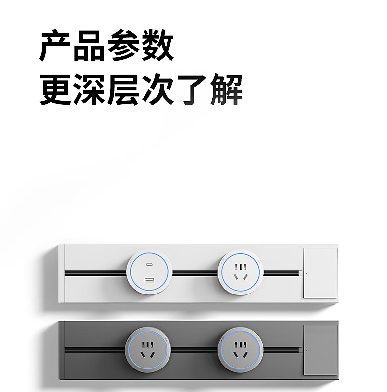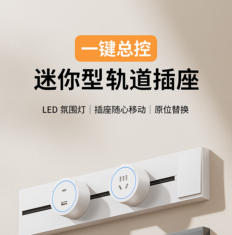 免打孔迷你可移动轨道插座mini左右接线床头电力导轨插排25cm30cm 【Mini款带总控开关】明装黑色2A