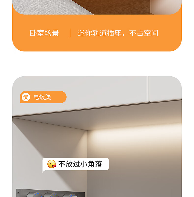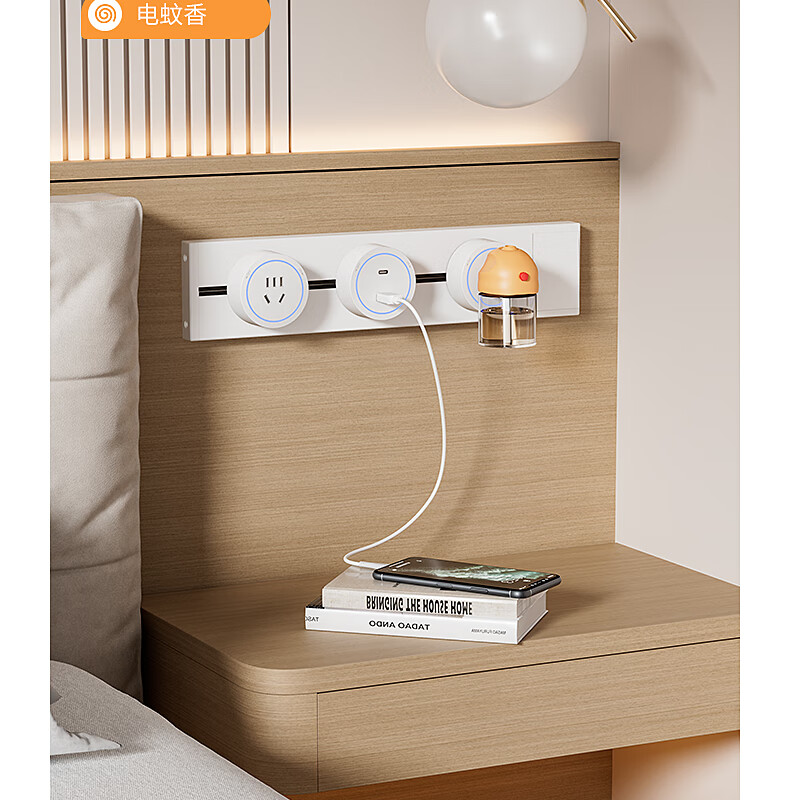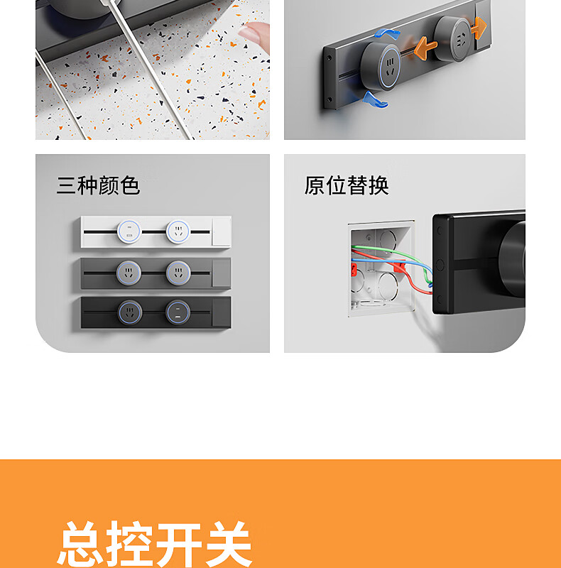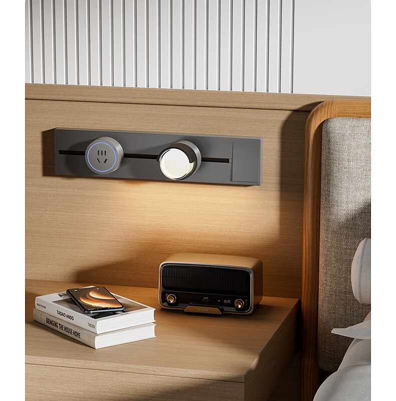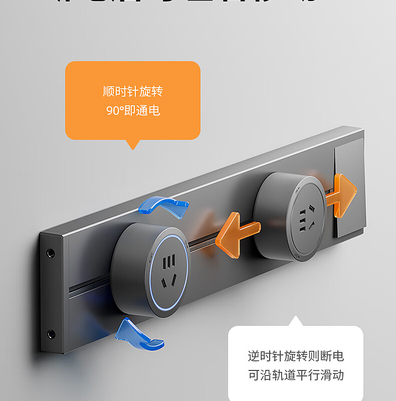 免打孔迷你可移动轨道插座mini左右接线床头电力导轨插排25cm30cm 【Mini款带总控开关】明装黑色2A