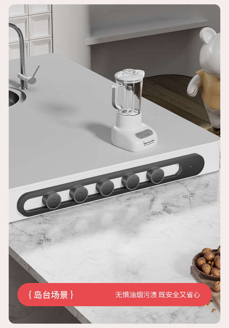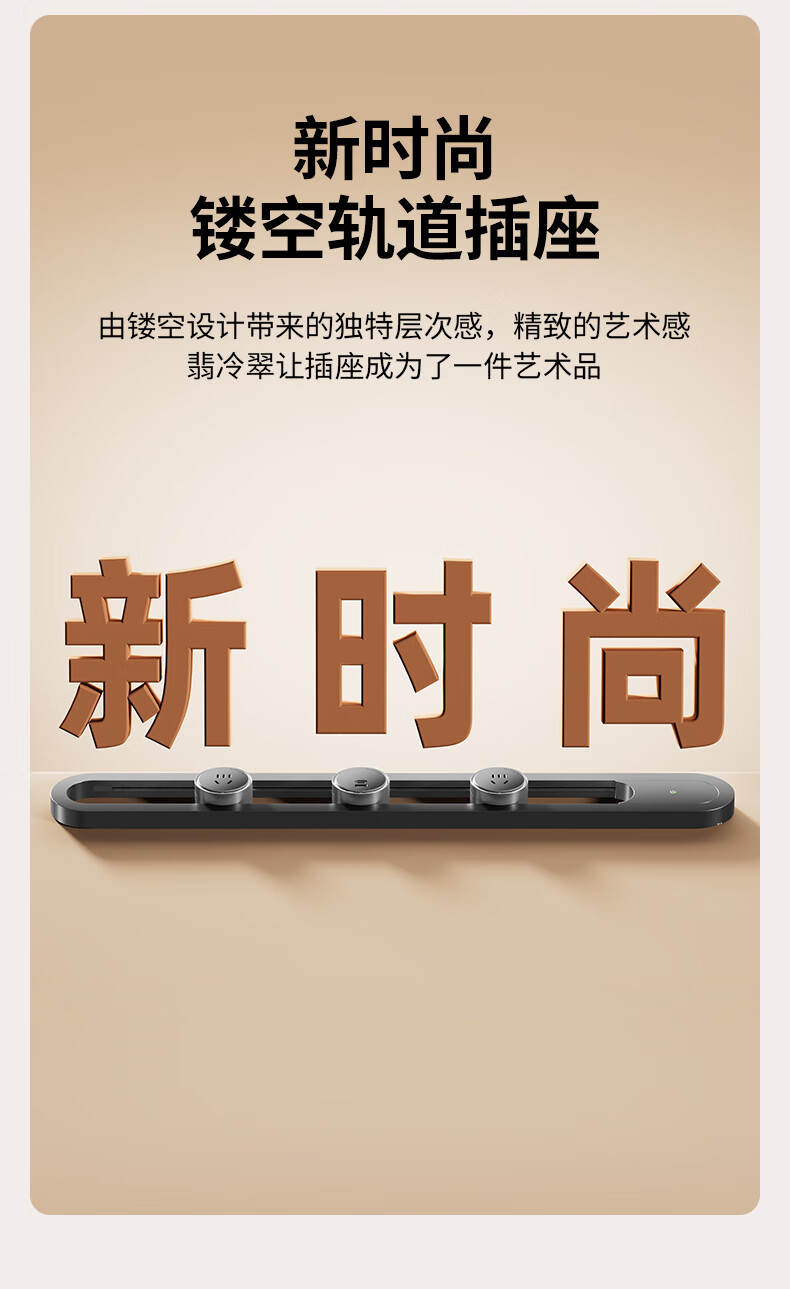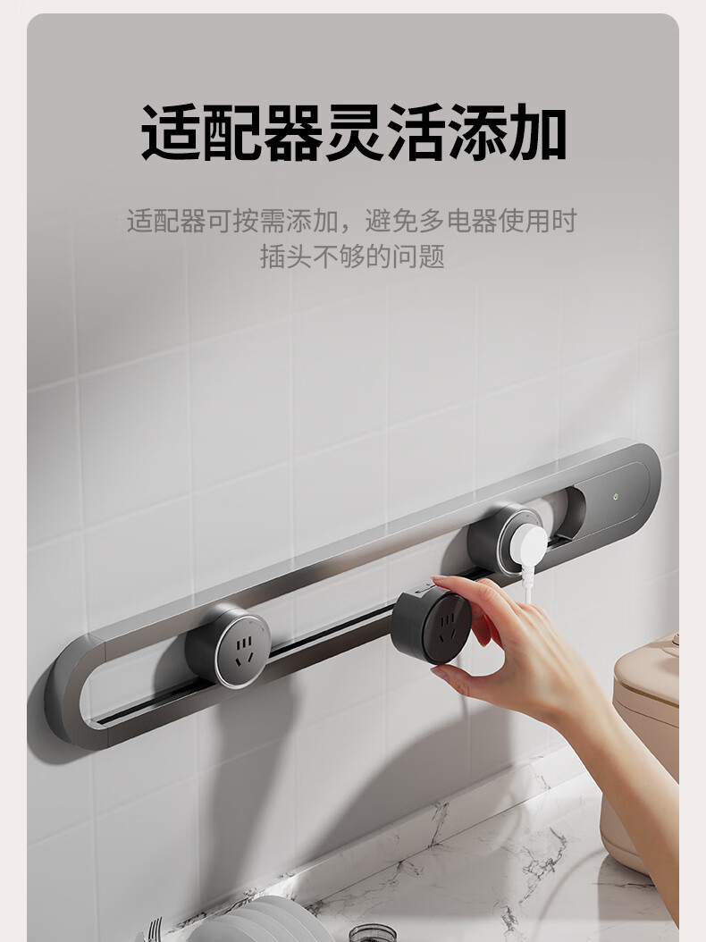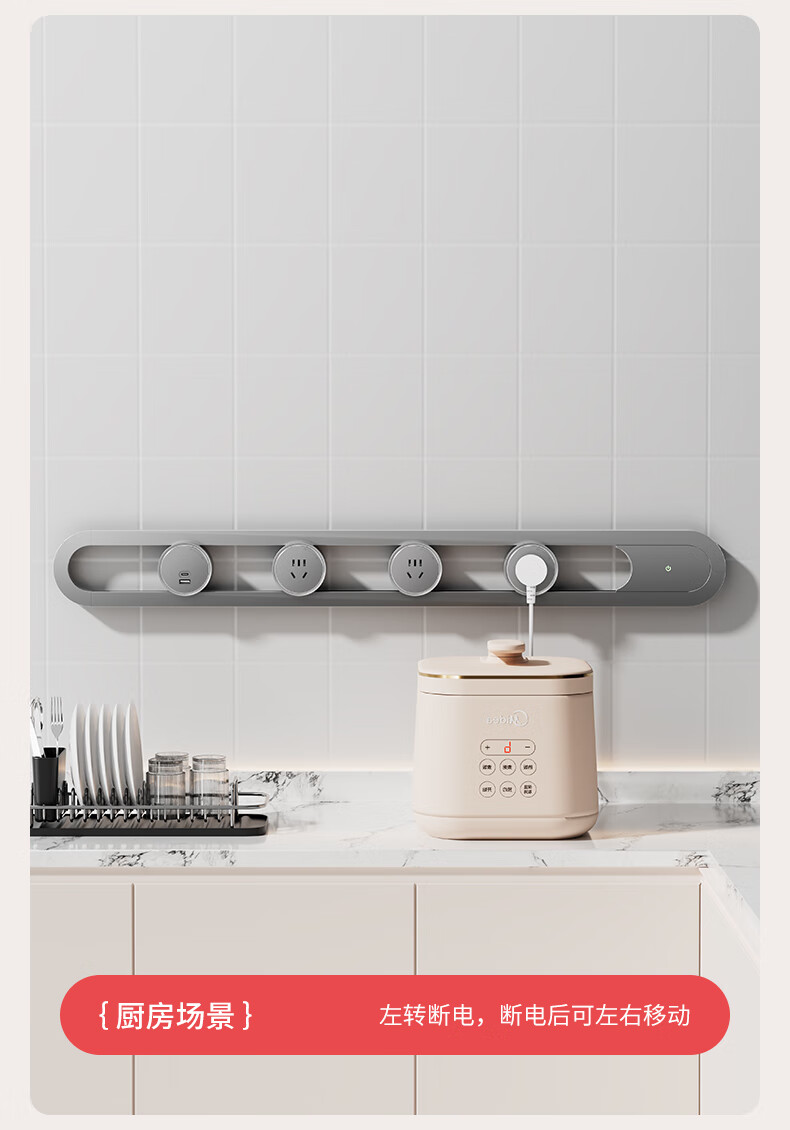 Electrician's track socket hollow art magnetic kitchen sideboard household removable slide rail one-click power off silver national standard five-hole adapter