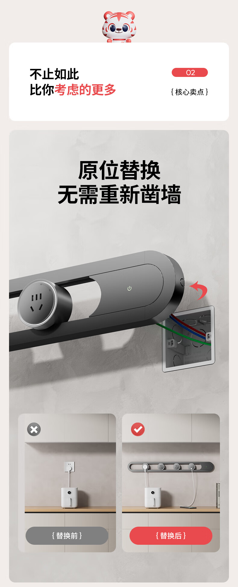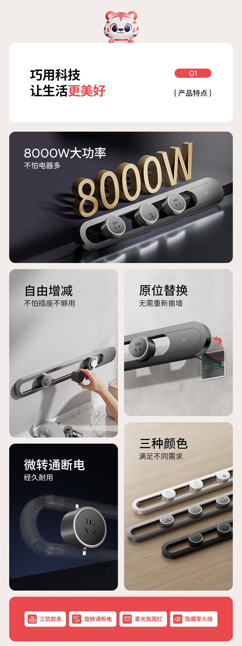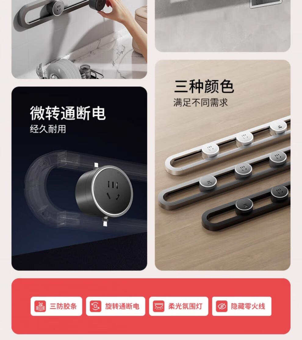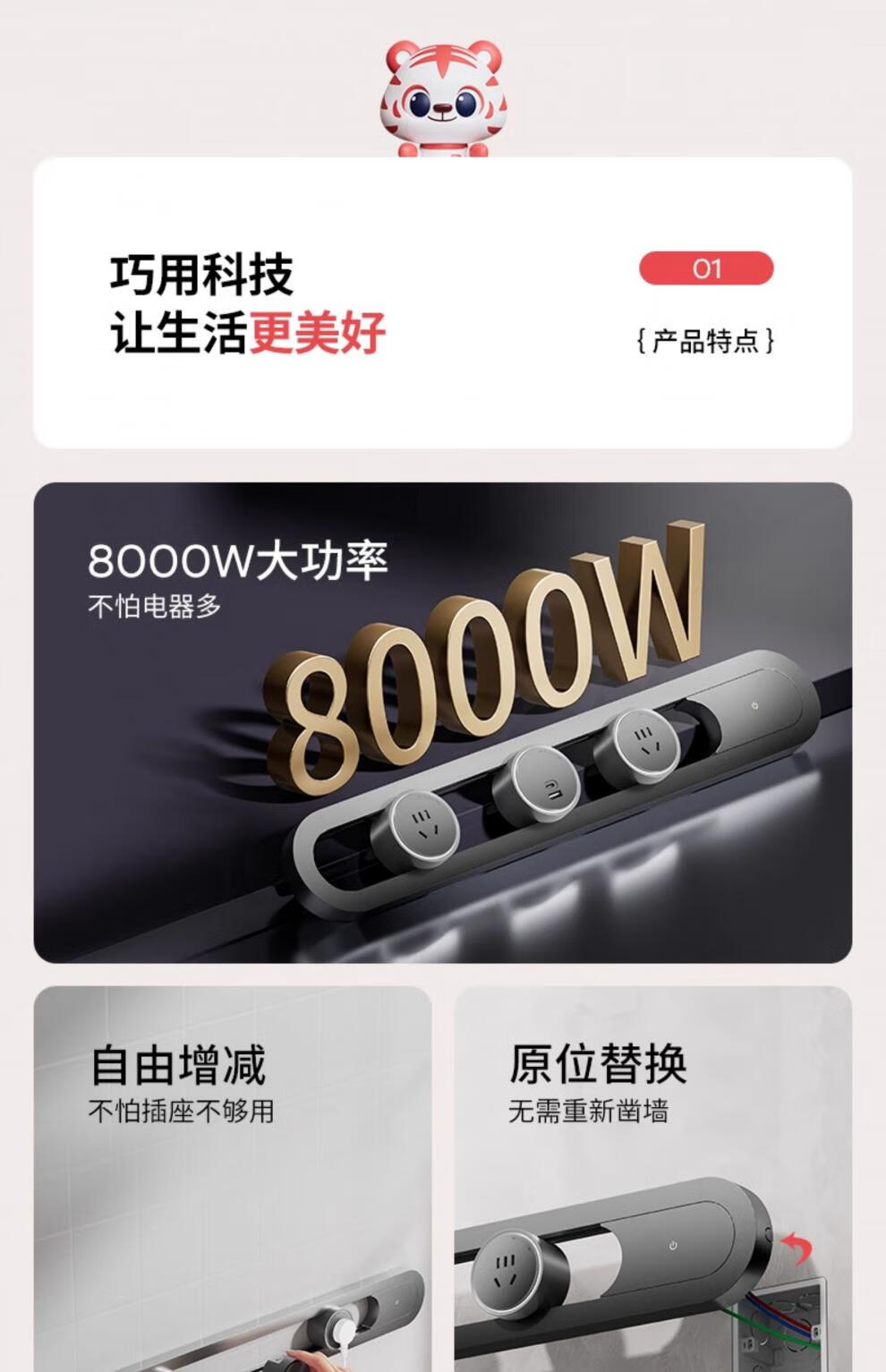 Electrician's track socket hollow art magnetic kitchen sideboard household removable slide rail one-click power off silver national standard five-hole adapter