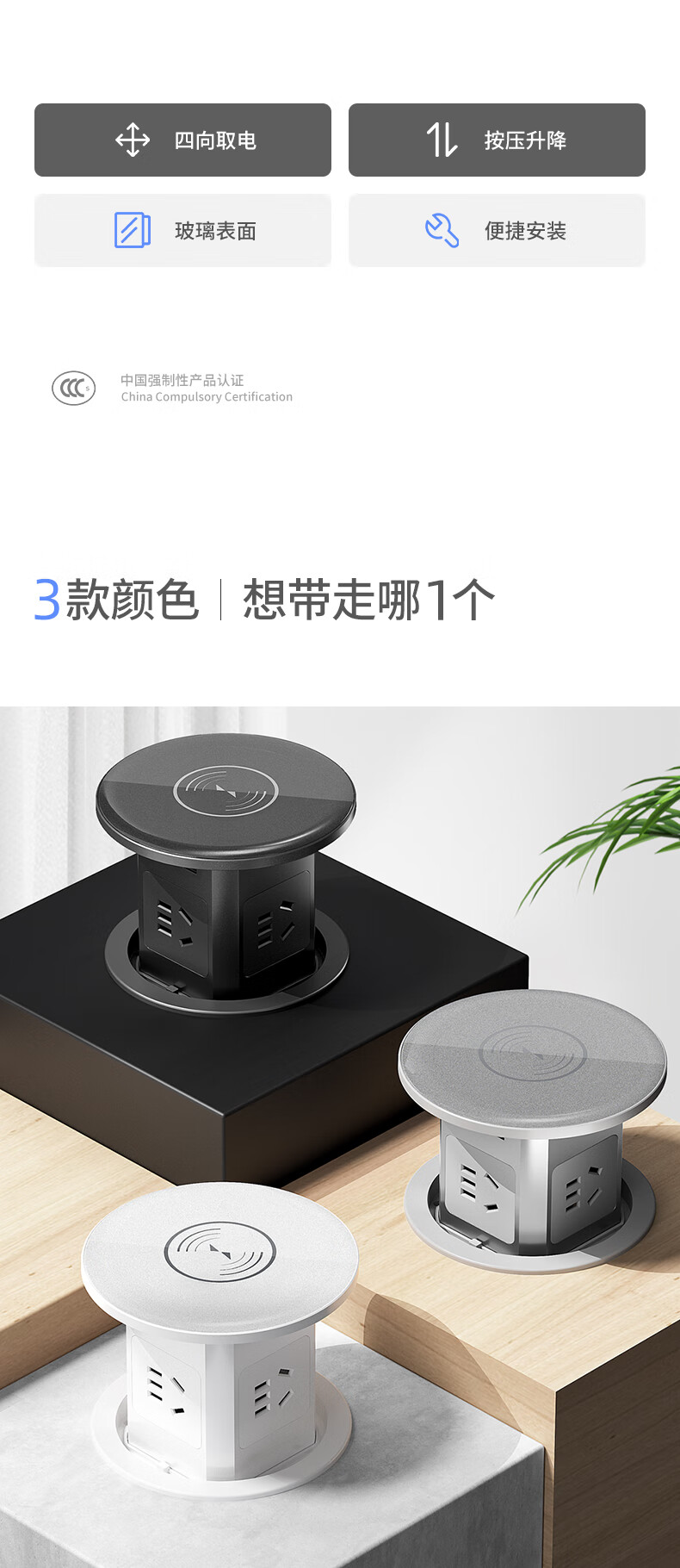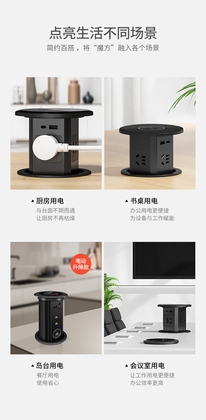 Island lift socket desktop table top plug hidden power terminal board wireless charging hydraulic type four positions five holes hydraulic type gray