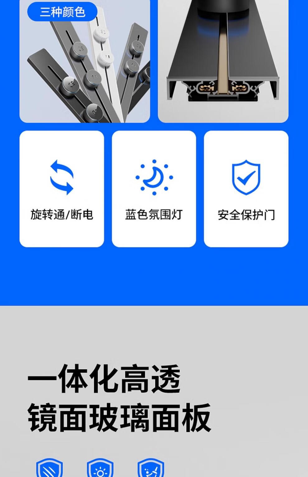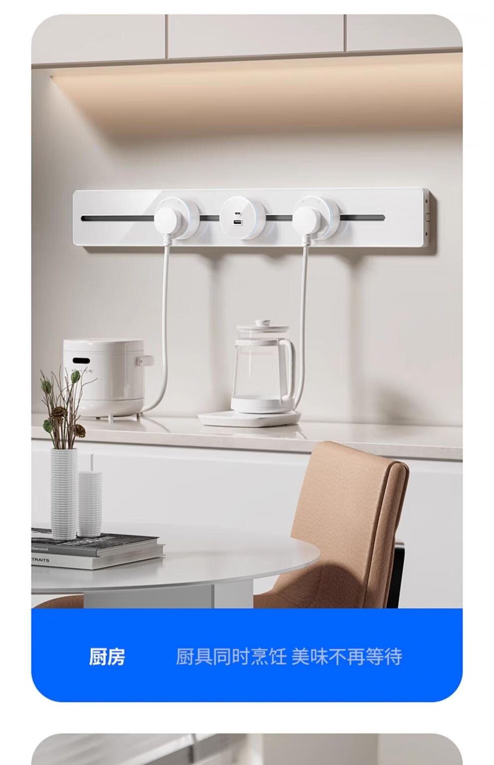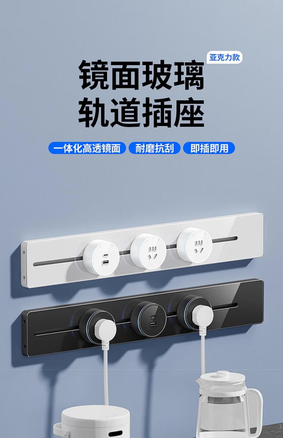 Acrylic glass movable track socket kitchen sideboard surface mounted sliding power rail socket for home use acrylic glass 30CM-white track + 2 adapters