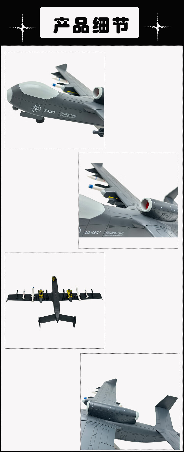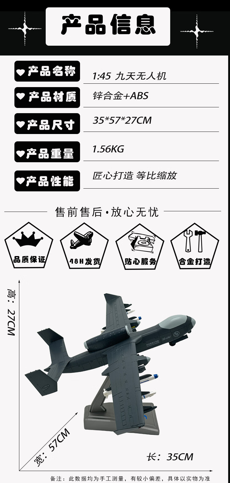 1 45 Jiutian UAV model alloy simulation static ornaments gift aircraft SS-UVA metal souvenir 1 45 Jiutian UAV