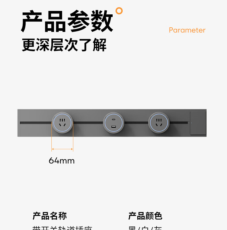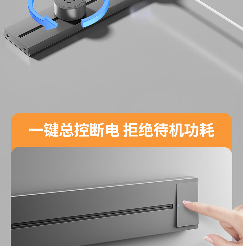 Movable surface-mounted track socket with switch, switch, household kitchen sideboard sliding power guide rail extension strip, with switch, switch, one-button power off, black 30CM rail A