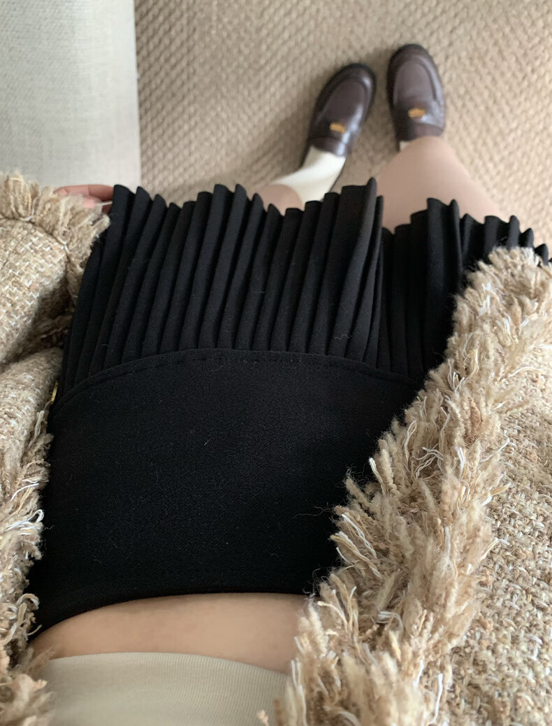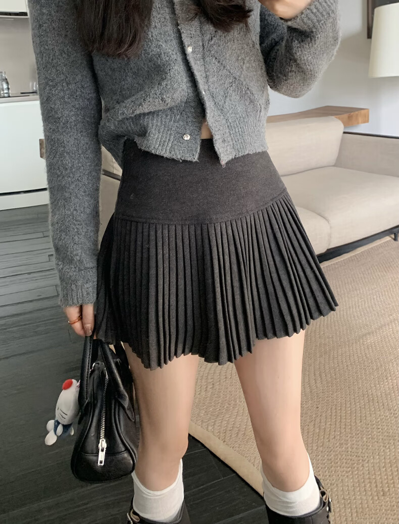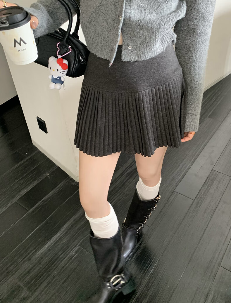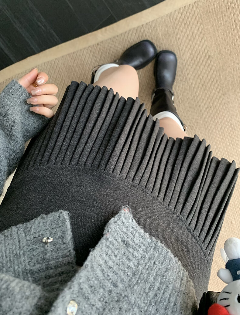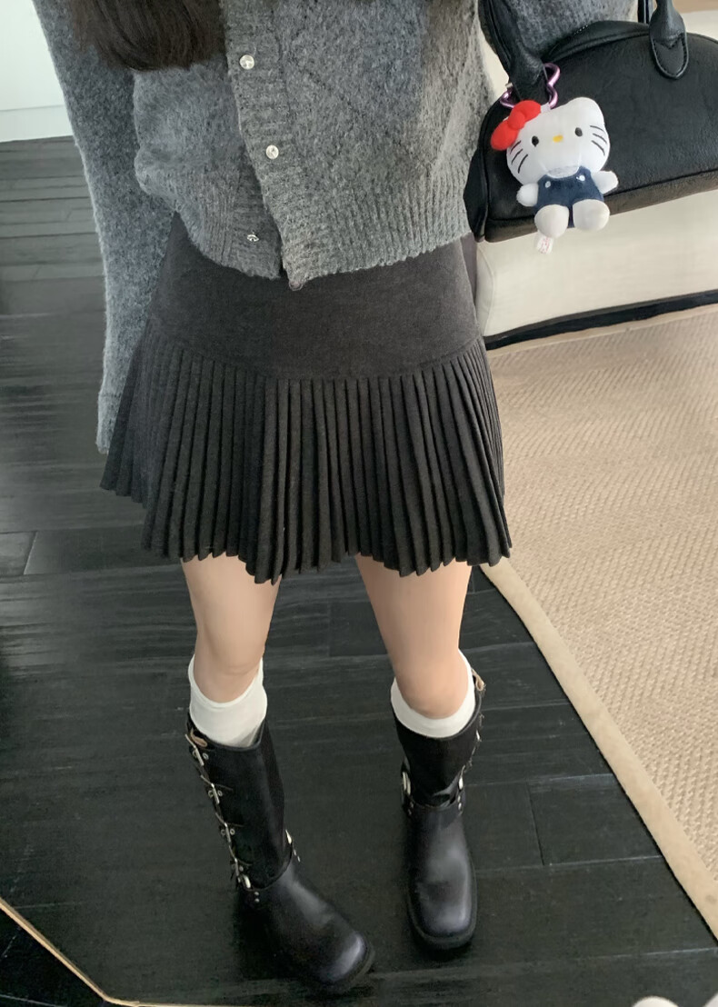 Lu Shanwu knitted pleated skirt woolen skirt anti-exposure A-line skirt women's autumn and winter versatile gray high-waisted skirt woolen pleated skirt short skirt dark gray M recommended 90-100Jin Jin equals 0.5 kg