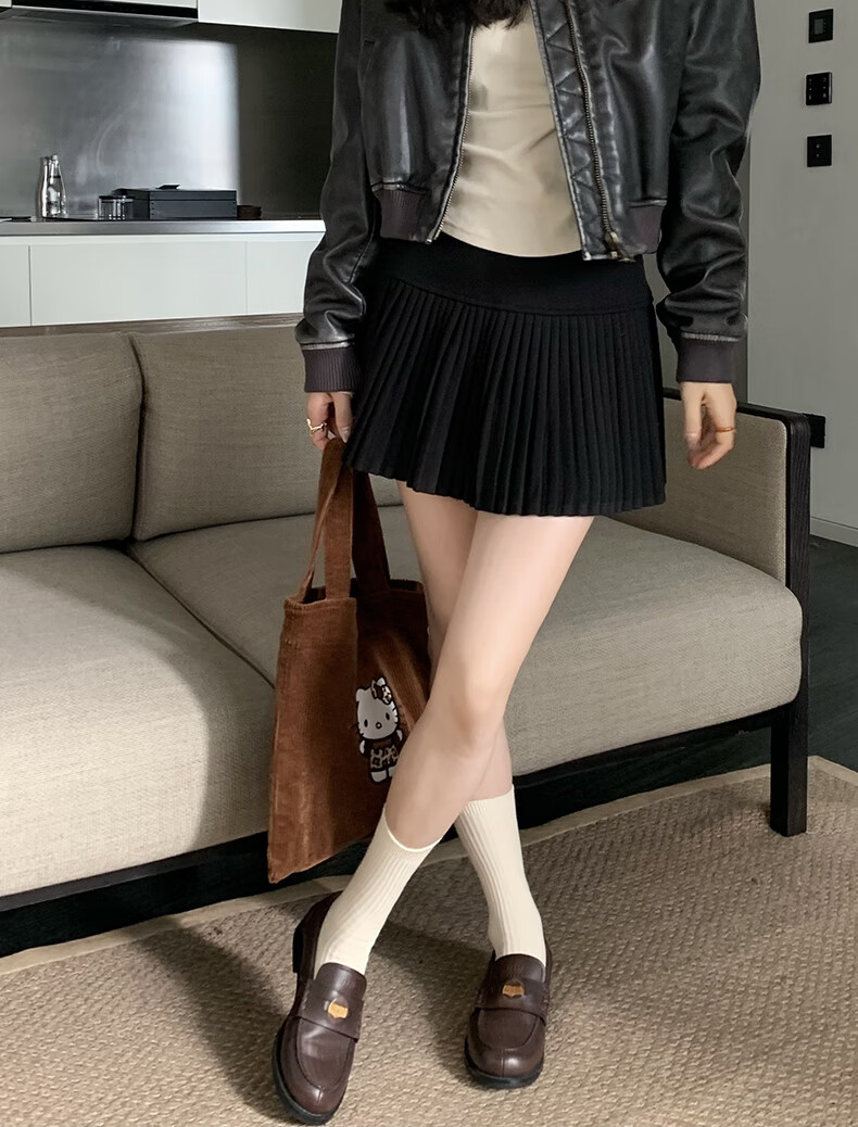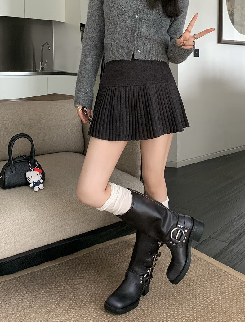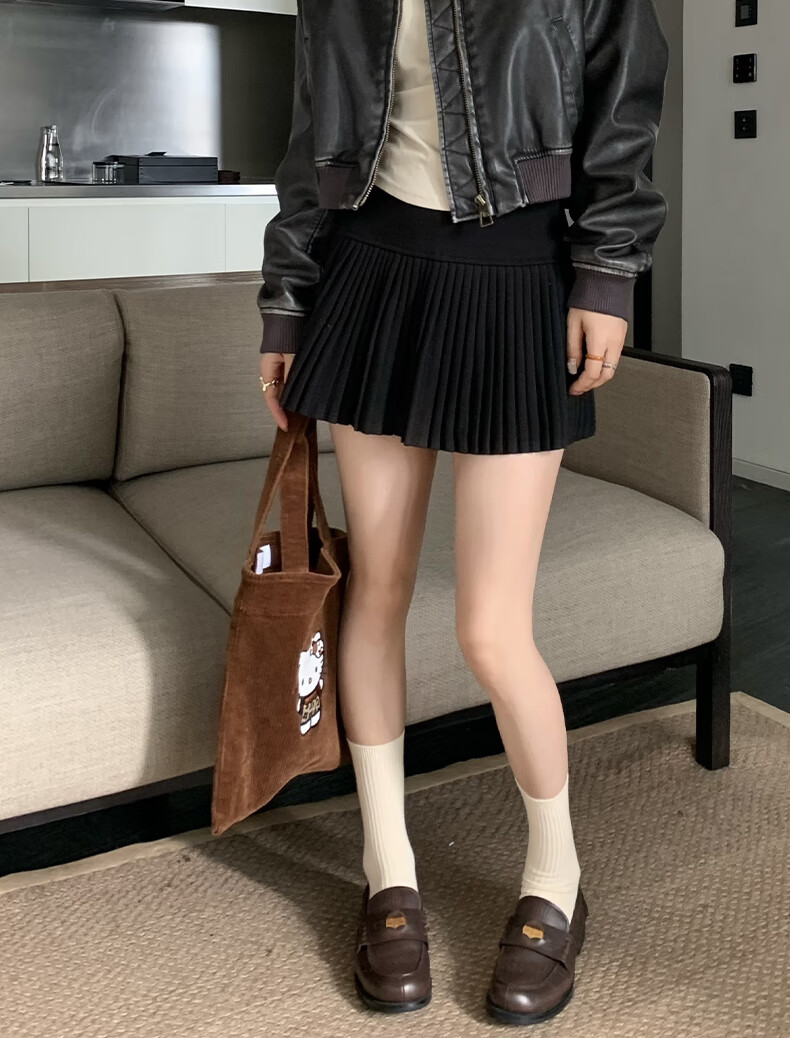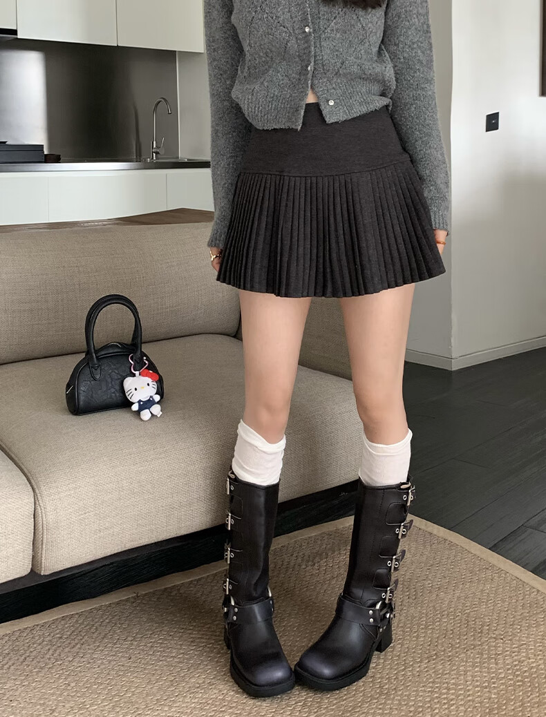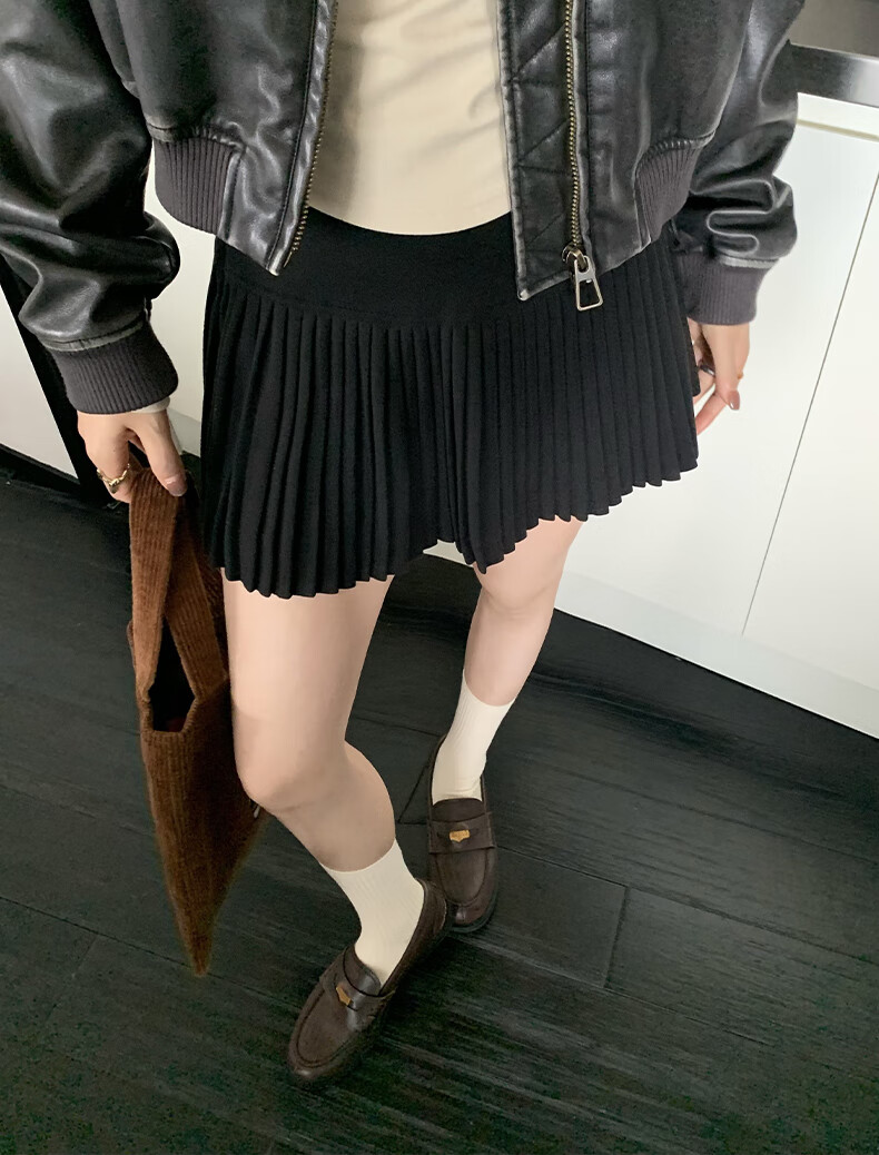Lu Shanwu knitted pleated skirt woolen skirt anti-exposure A-line skirt women's autumn and winter versatile gray high-waisted skirt woolen pleated skirt short skirt dark gray M recommended 90-100Jin Jin equals 0.5 kg