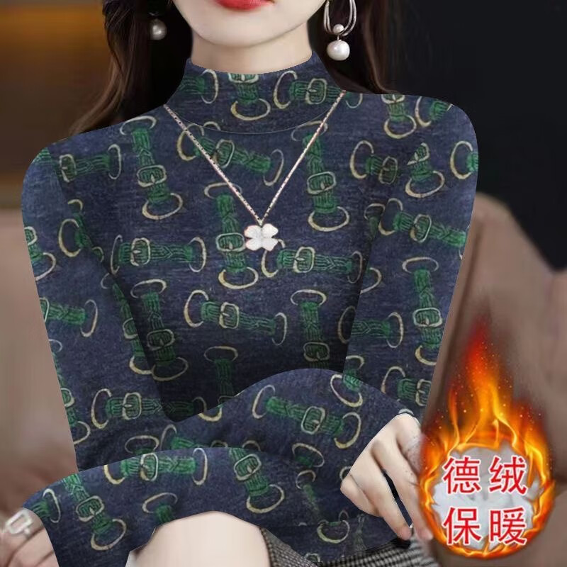 Ouyu half turtleneck double-sided German velvet thickened bottoming shirt women's autumn and winter new style slim-fitting inner shirt top Navy blue chain XL recommended 110-120Jin Jin equals 0.5 kg