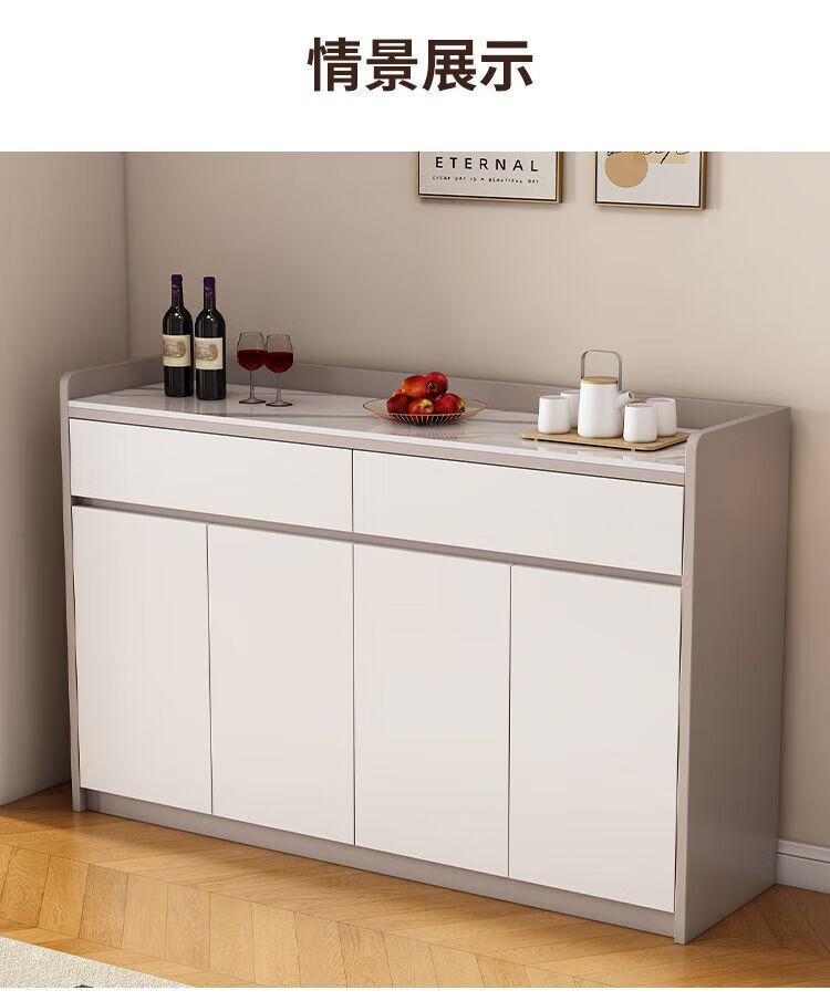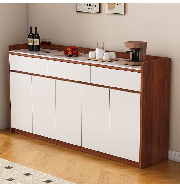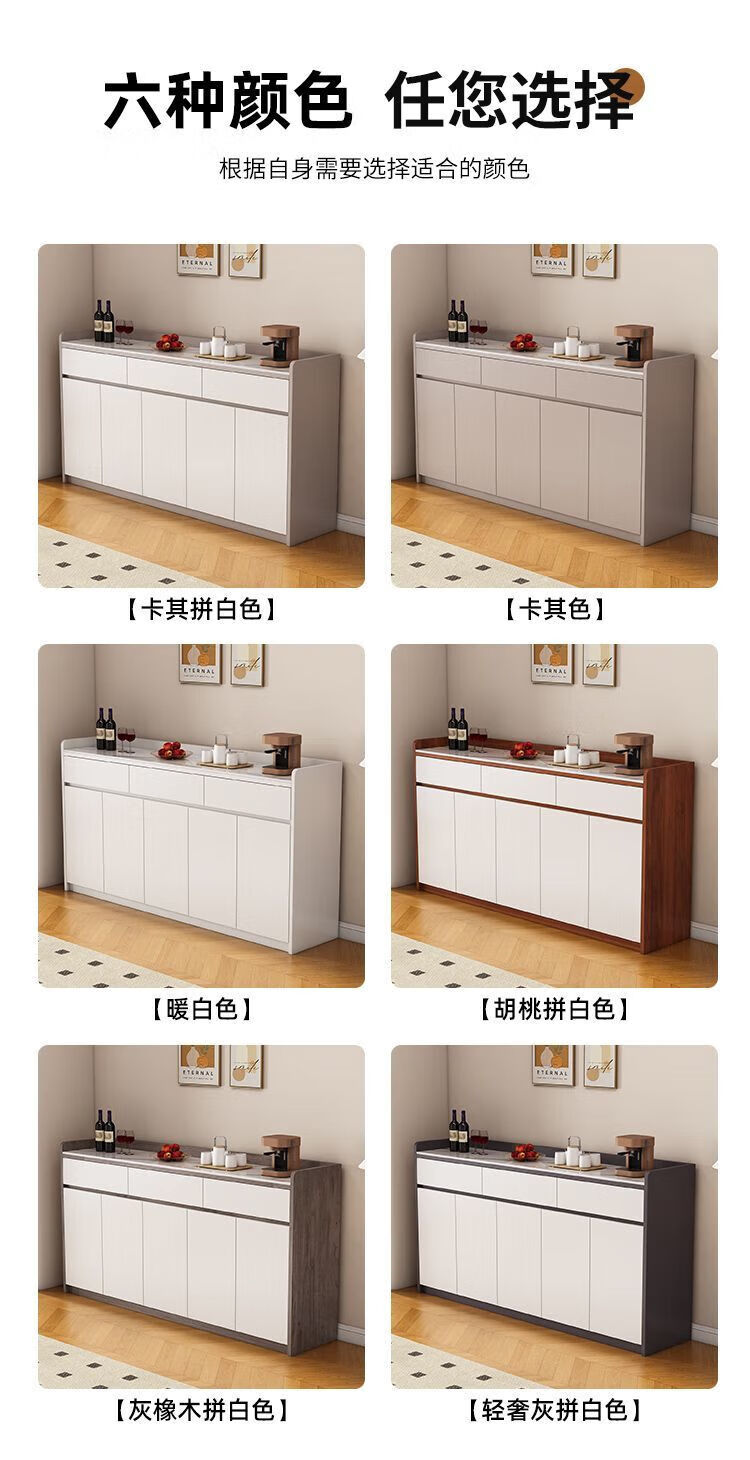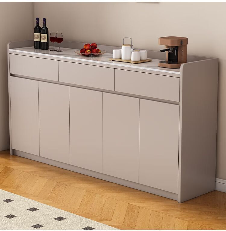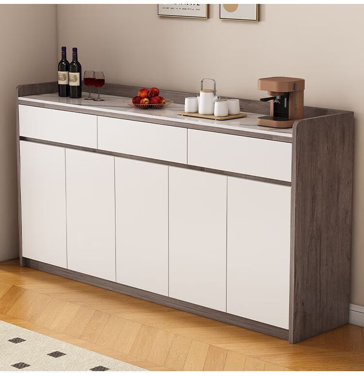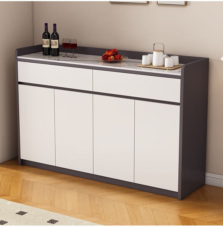 Xuanzun Entrega a domicilio Aparador de pizarra superior Armario de almacenamiento de pared para sala de estar Gabinete de almacenamiento multifunción Gabinete para té Gabinete para vino Gris + Blanco Tres puertas y dos cajones 120 cm