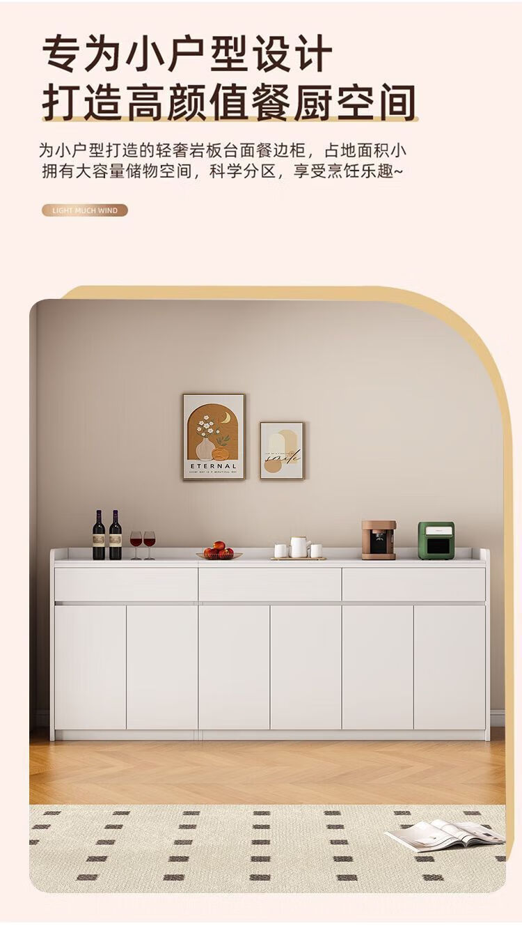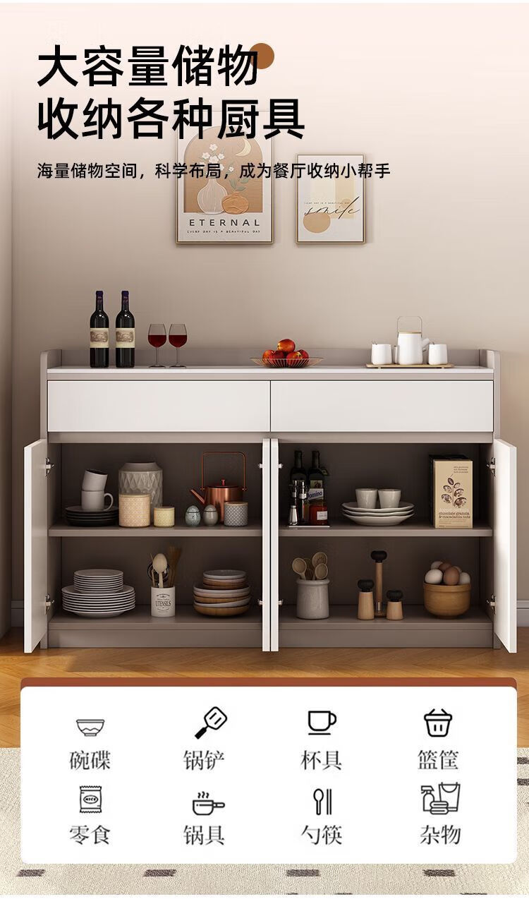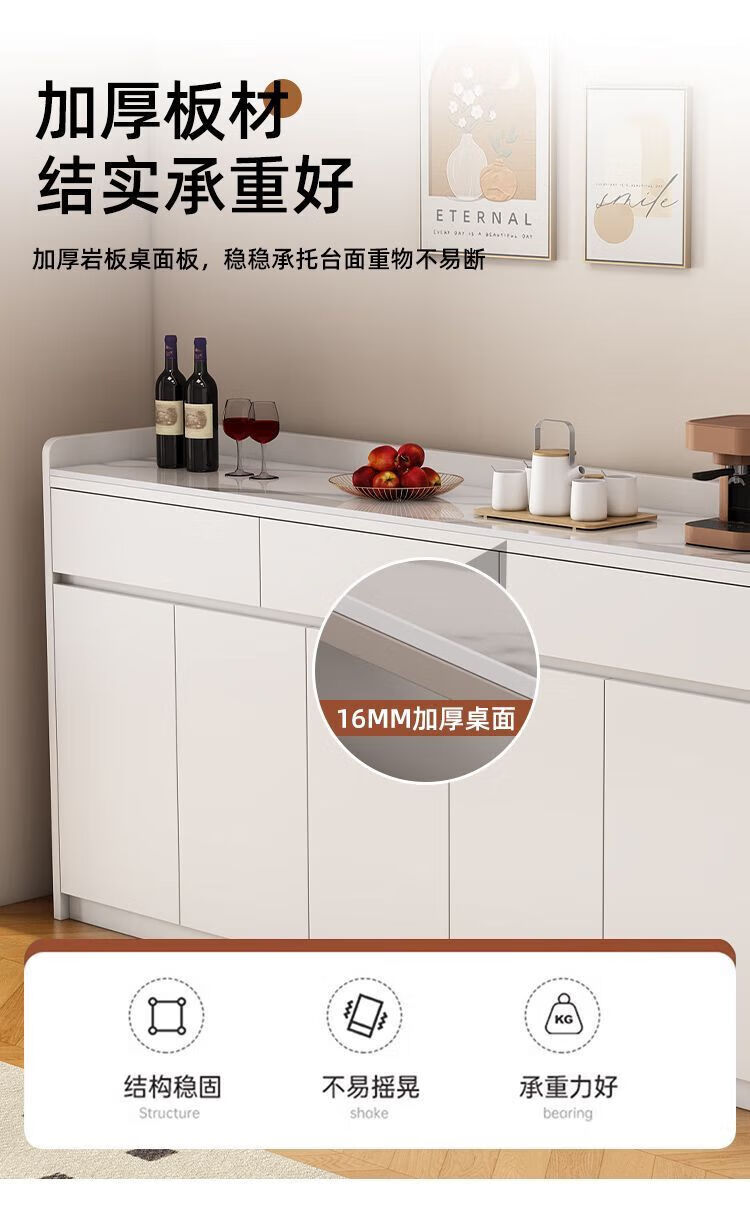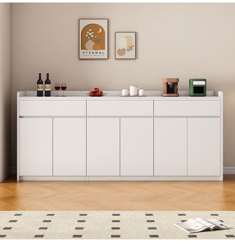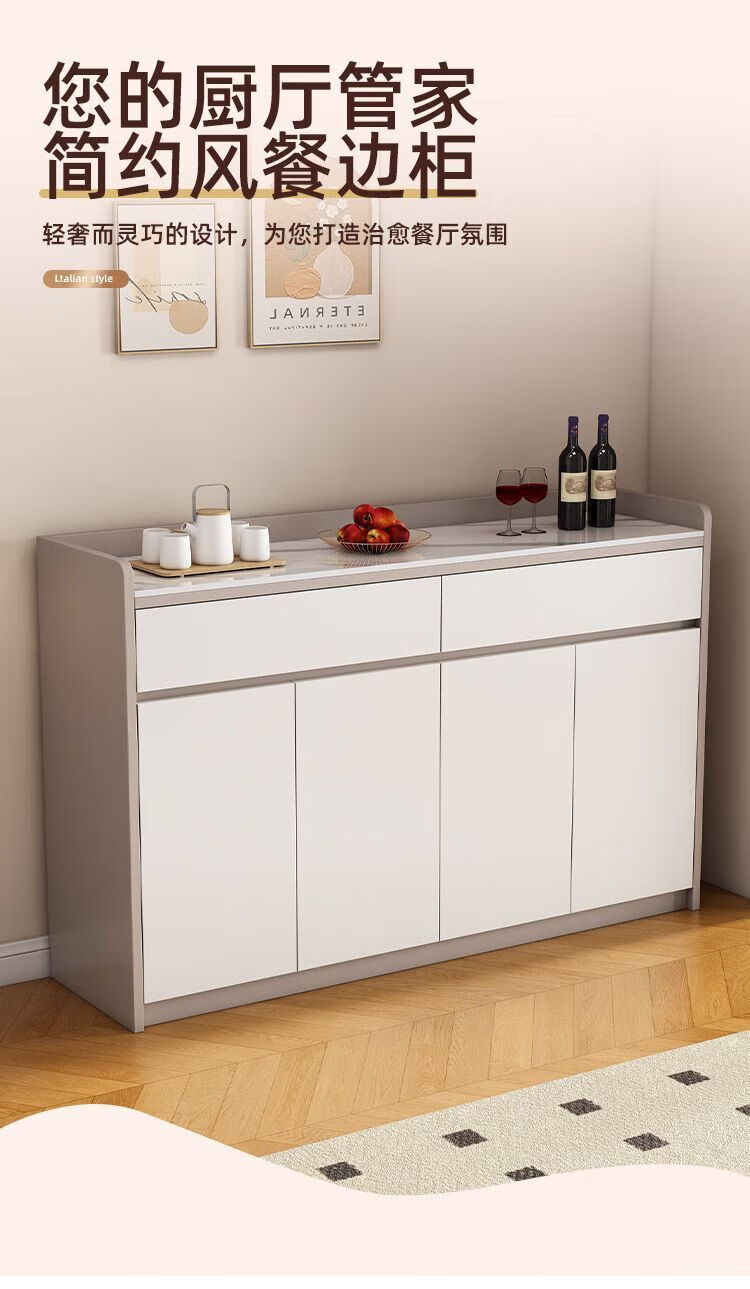 Xuanzun Entrega a domicilio Aparador de pizarra superior Armario de almacenamiento de pared para sala de estar Gabinete de almacenamiento multifunción Gabinete para té Gabinete para vino Gris + Blanco Tres puertas y dos cajones 120 cm