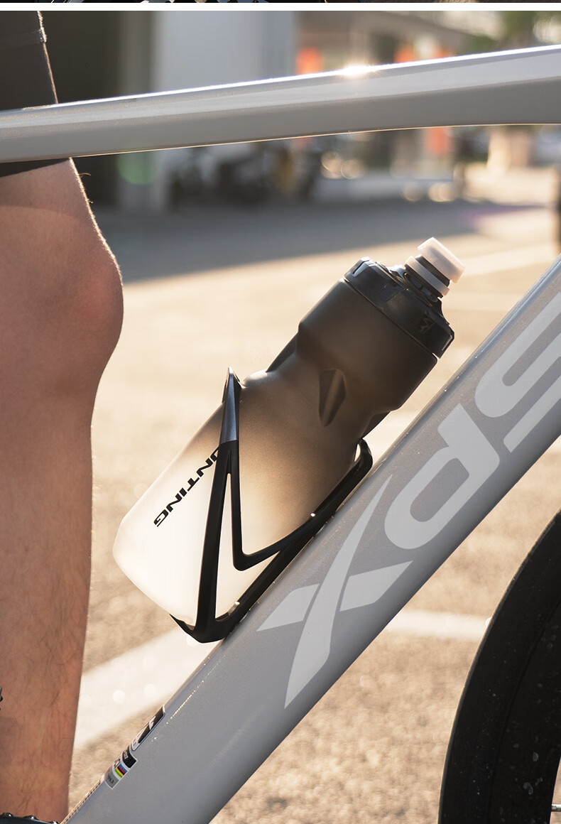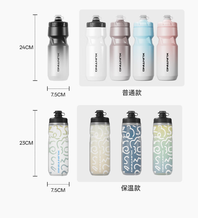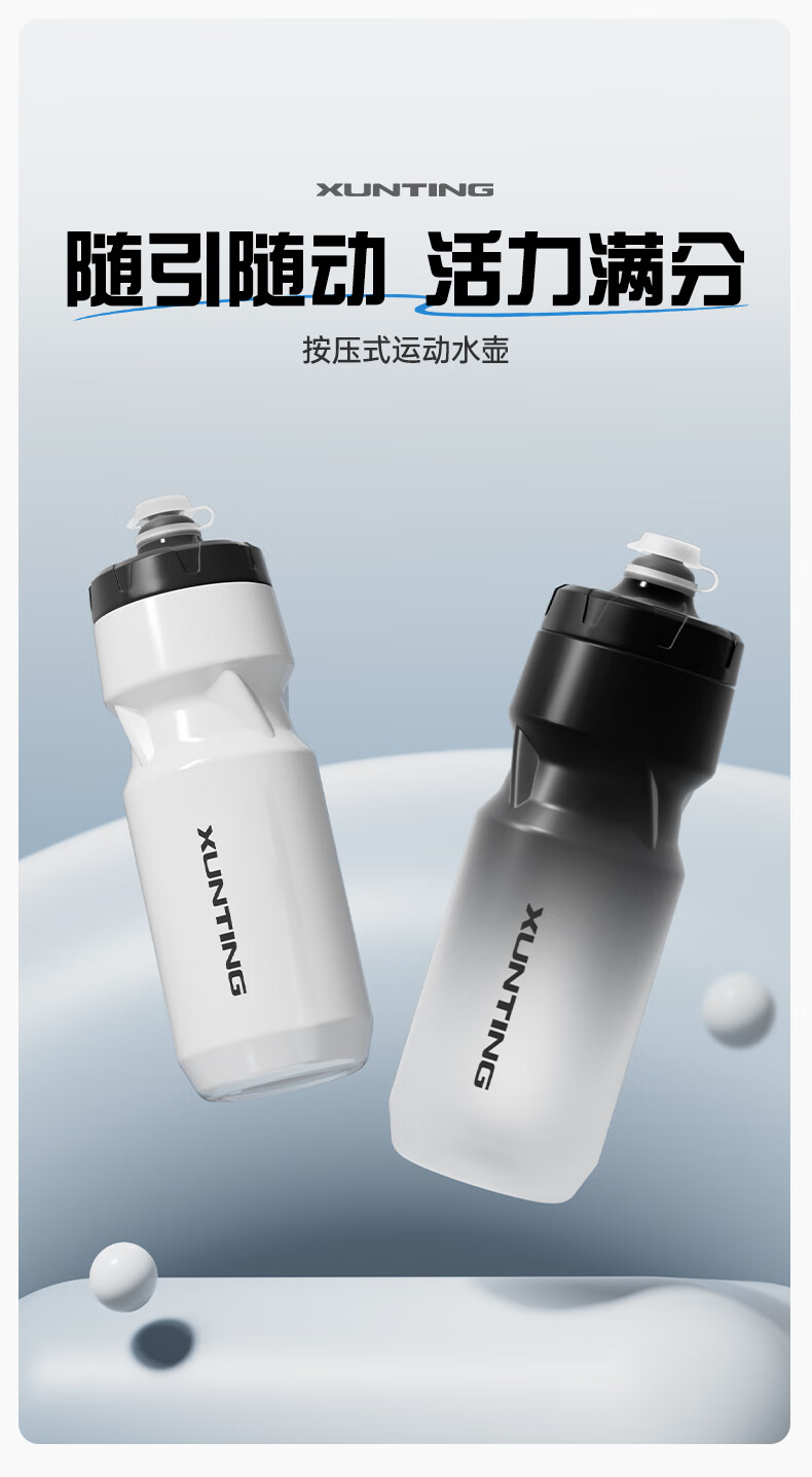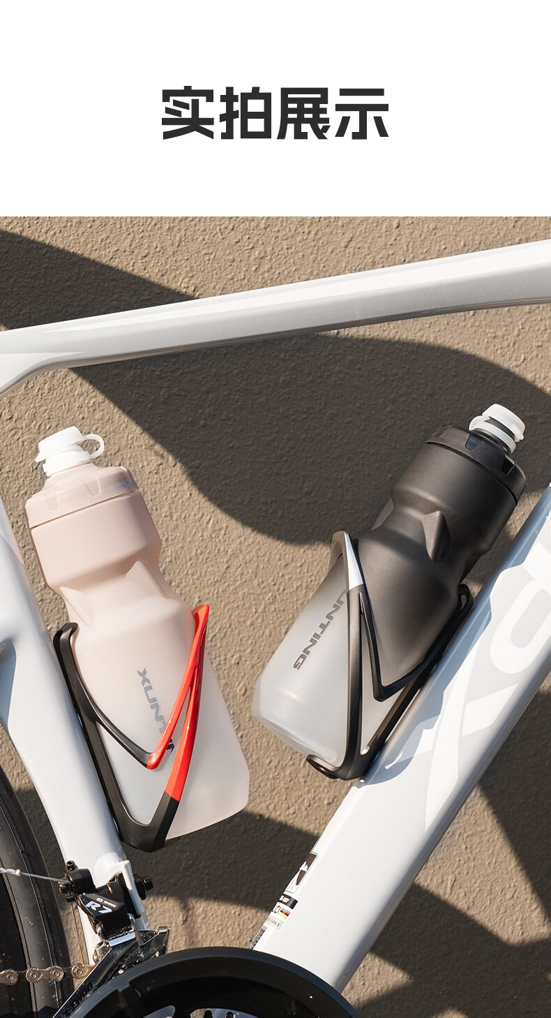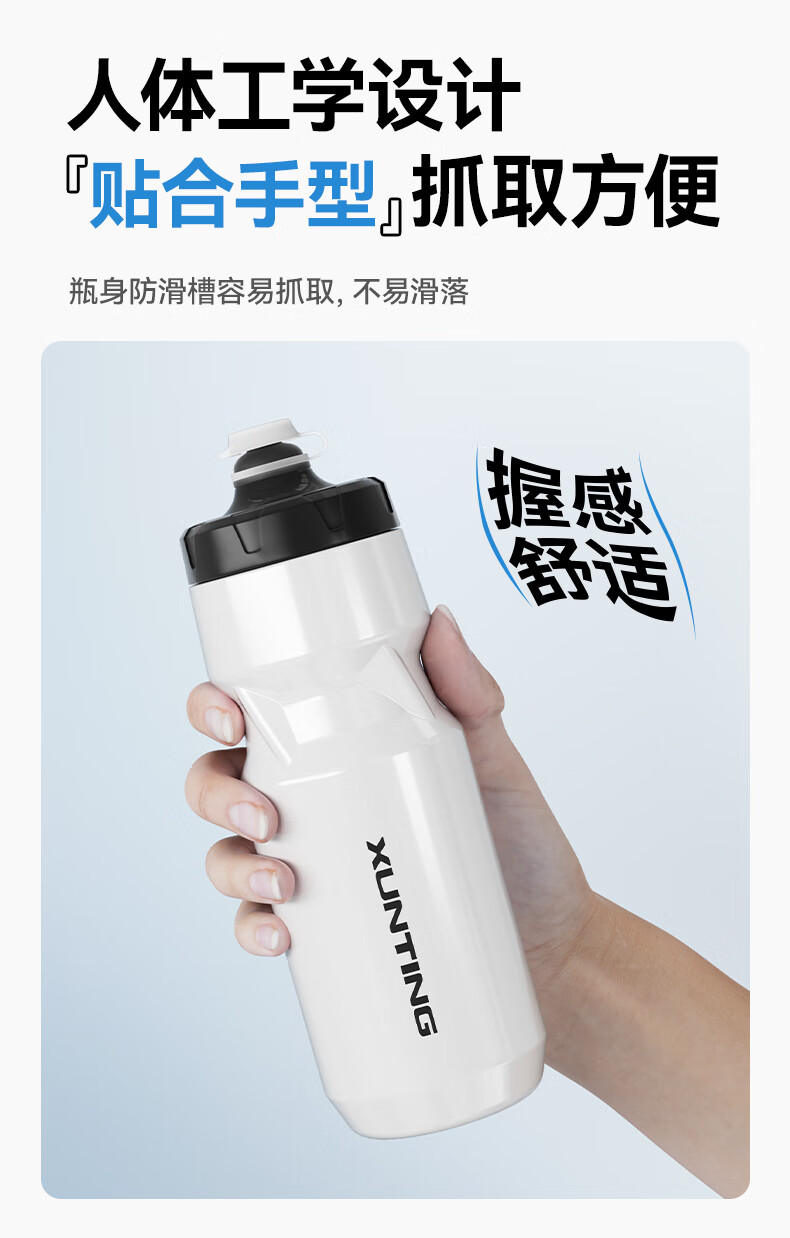 XUNTING cycling kettle, mountain road bicycle, sports squeeze water cup, thermal insulation, large capacity, outdoor portable combination set (black and white kettle + kettle holder)