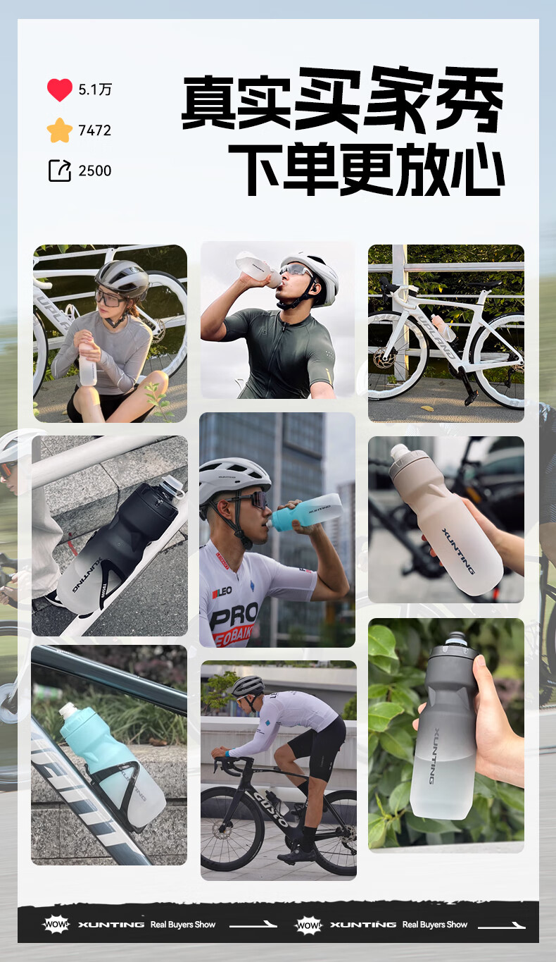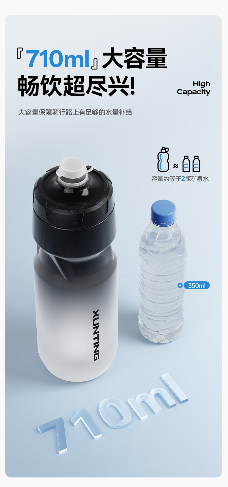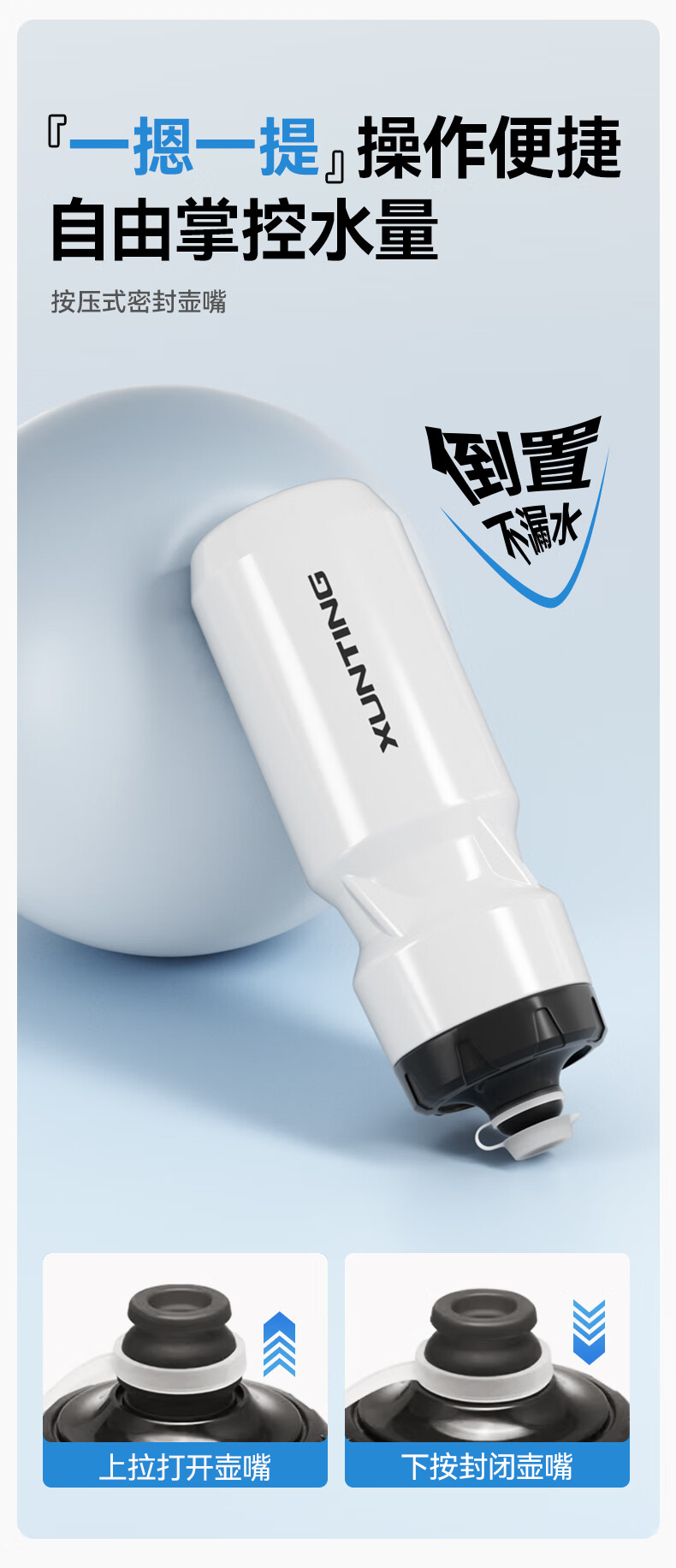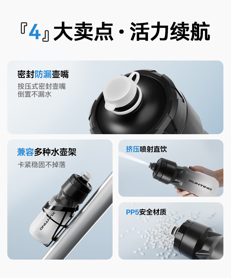 XUNTING cycling kettle, mountain road bicycle, sports squeeze water cup, thermal insulation, large capacity, outdoor portable combination set (black and white kettle + kettle holder)