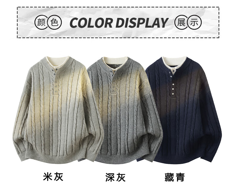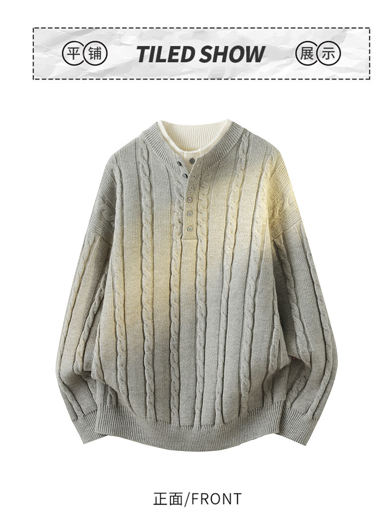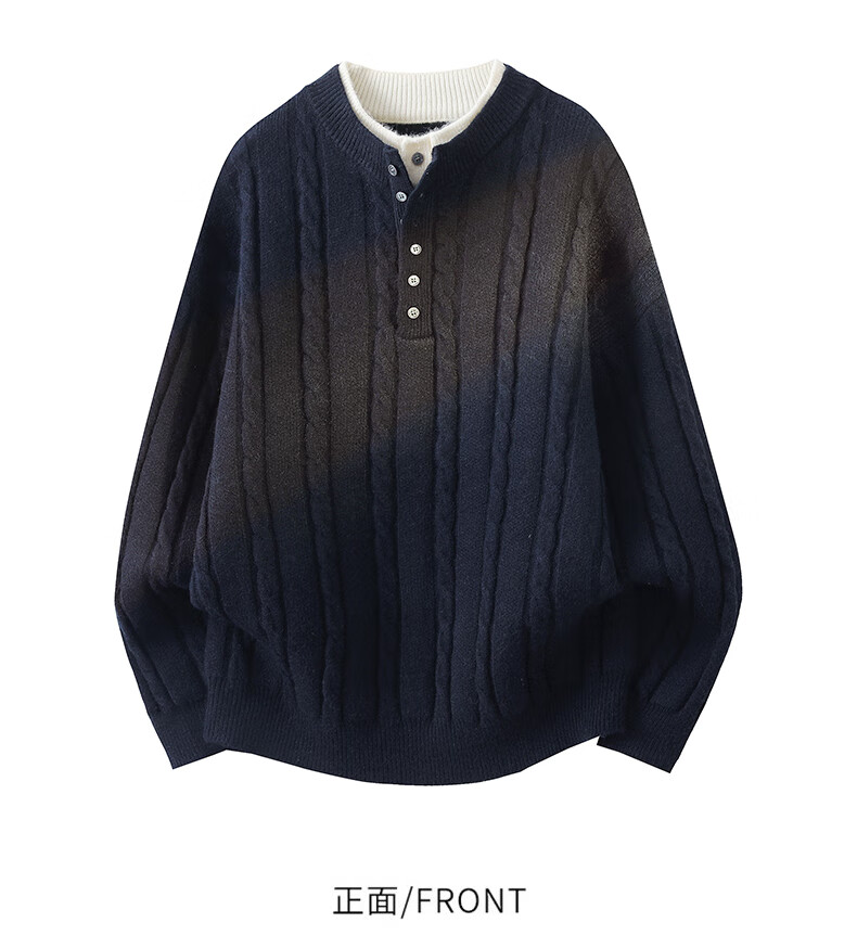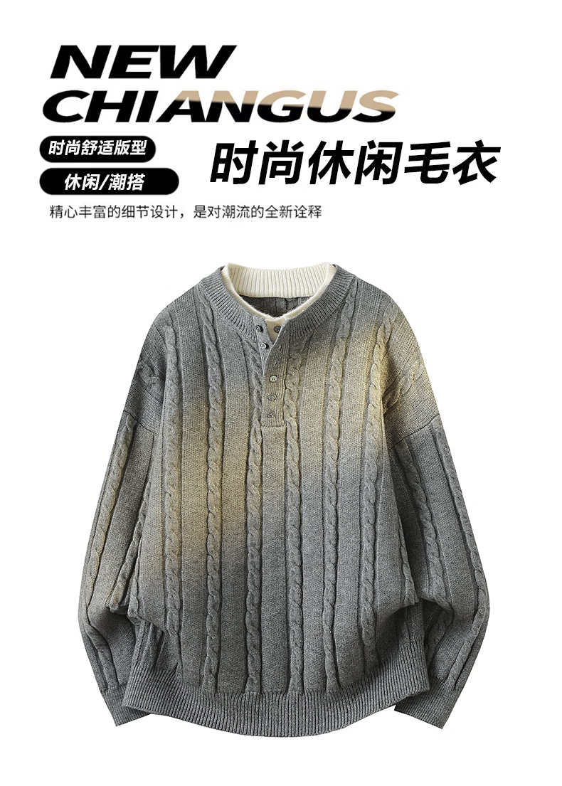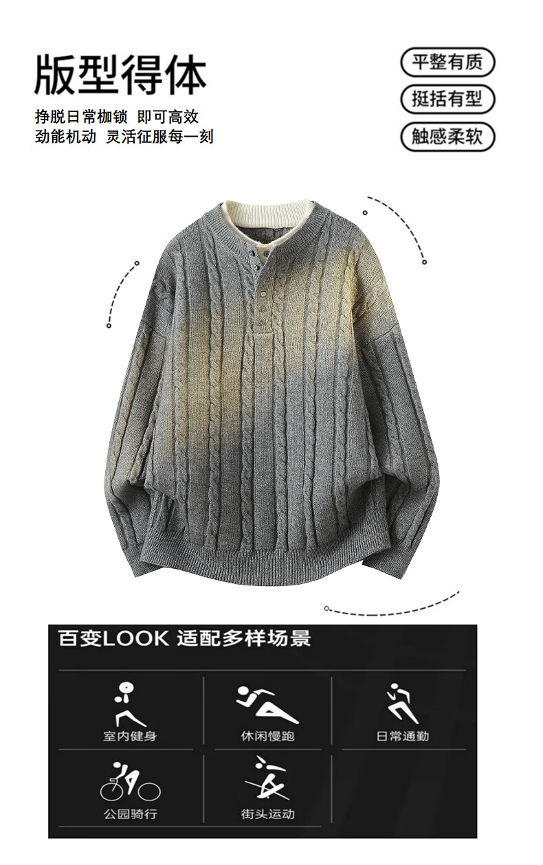 Playboy (PLAYBOY) cable pattern sweater men's autumn and winter holiday two-piece Henry collar pullover bottoming shirt men's simple woolen clothes dark gray M about 90~110Jin Jin equals 0.5 kg can be worn
