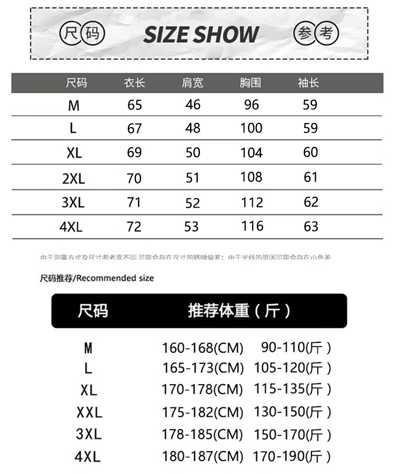 China (cm) 165 / 88-90 170 / 96-98 175 / 108-110 180 / 118-122 185 / 126-130