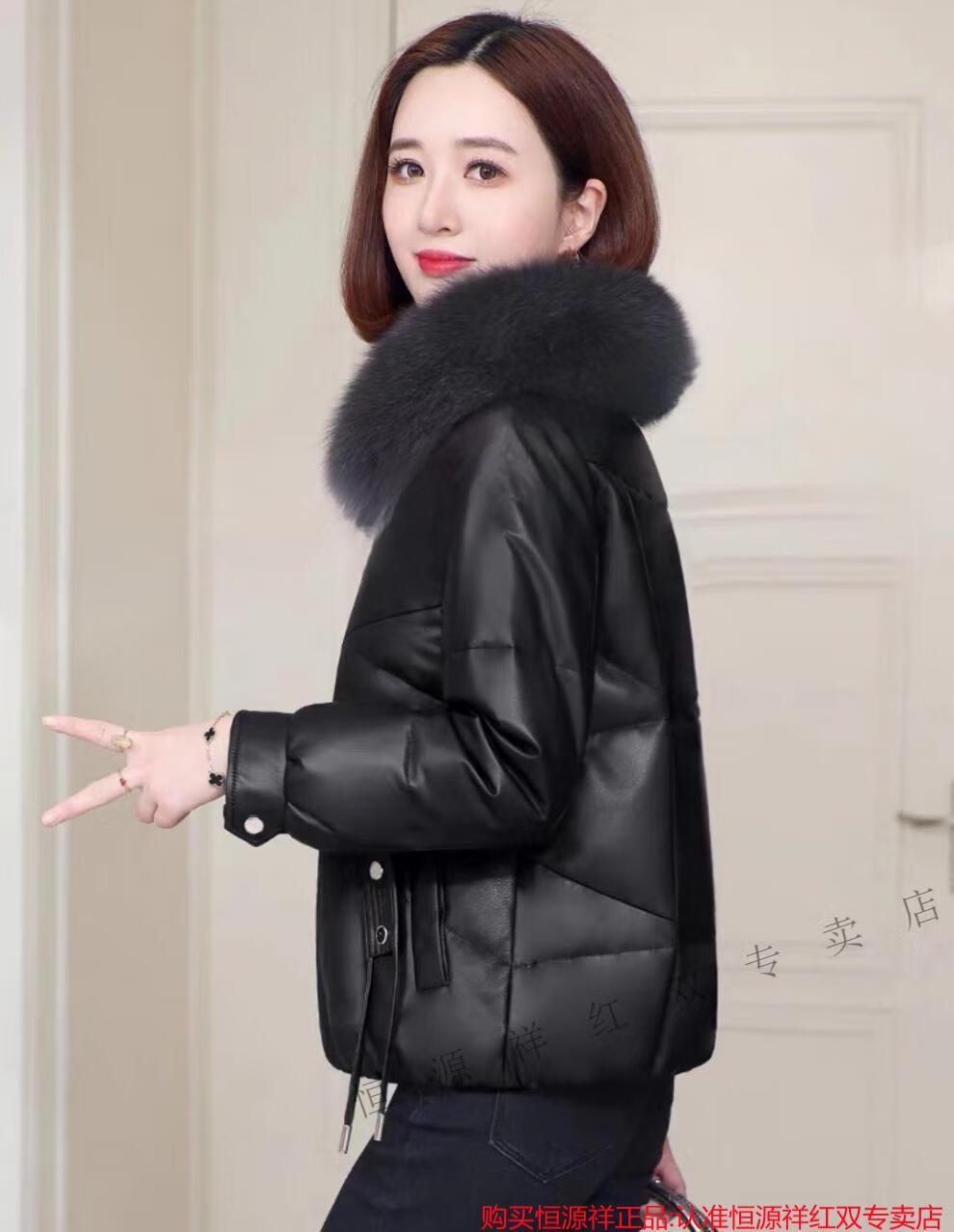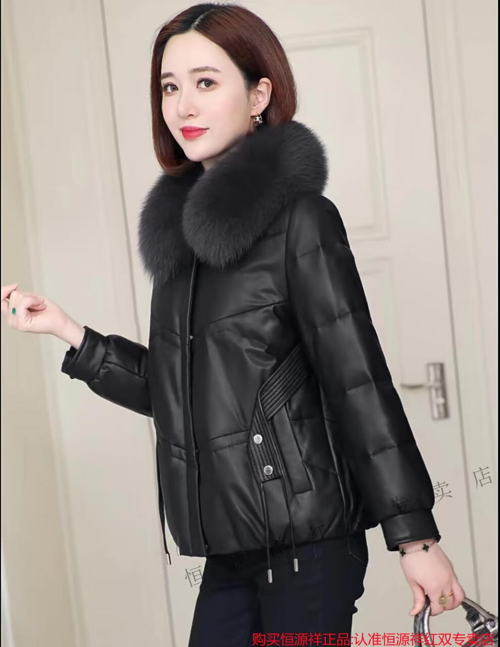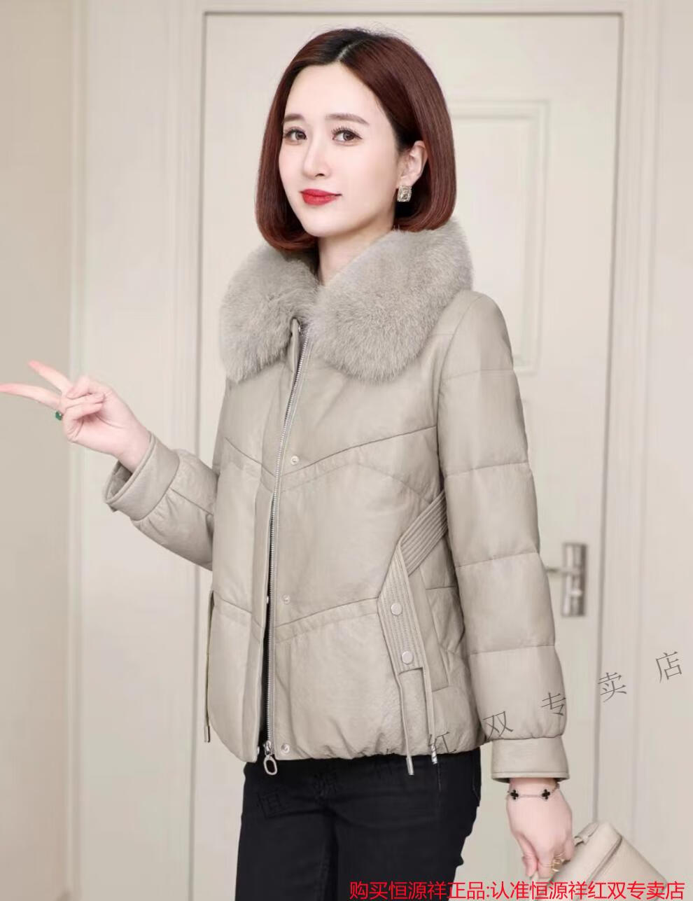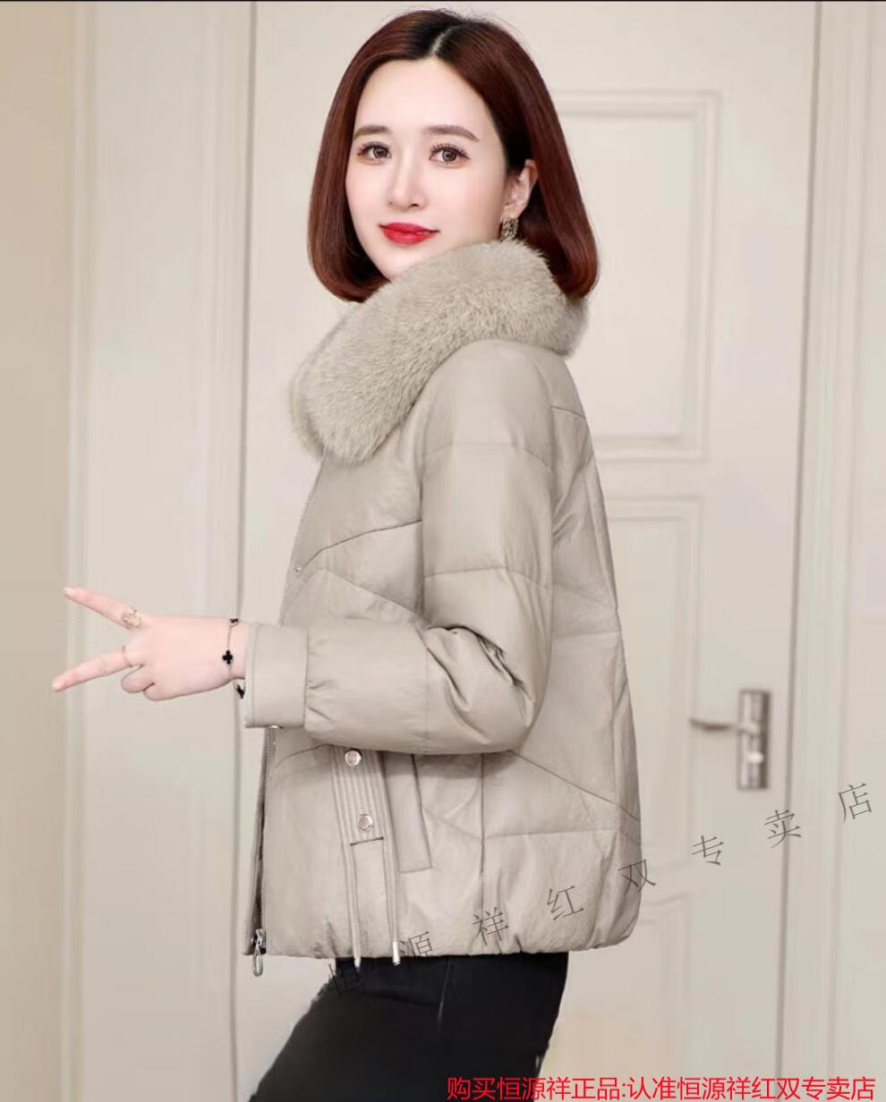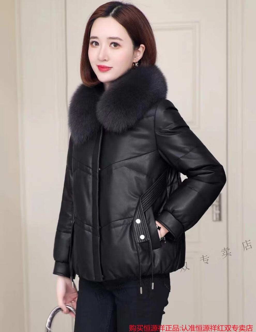 Hengyuanxiang Genuine Leather Down Jacket Women Sheepskin 2025 New Winter Clothes Small Short Genuine Fox Fur Haining Leather Jacket Black Fashionable and Versatile M Recommended 90-110 Jin Jin equals 0.5 kg