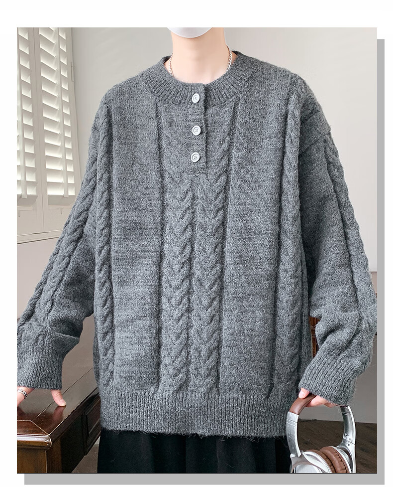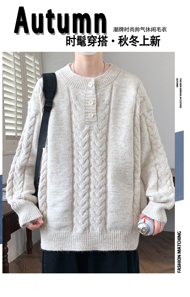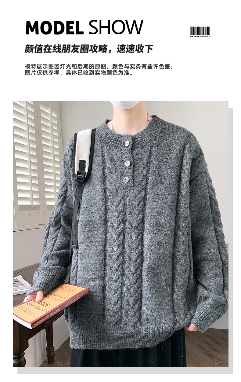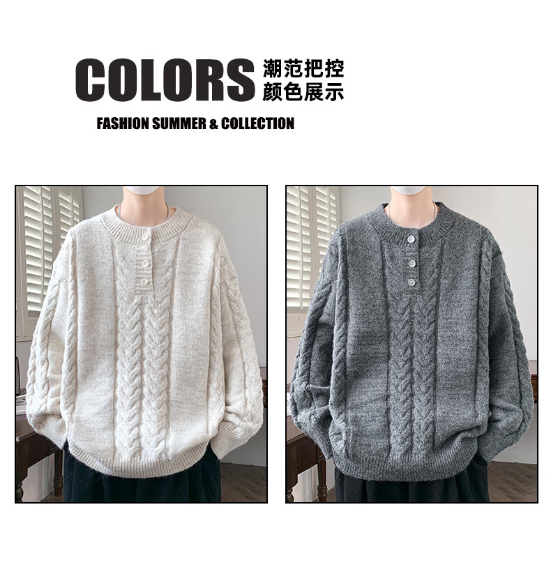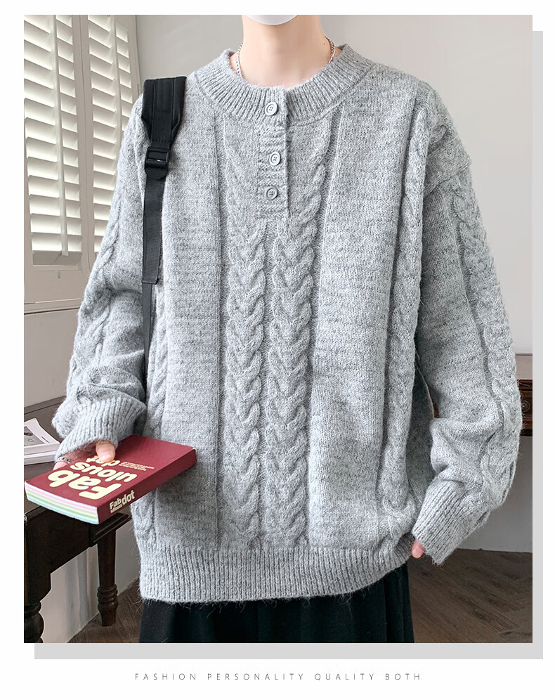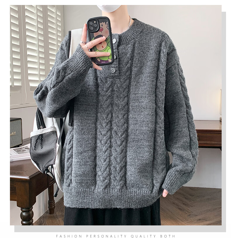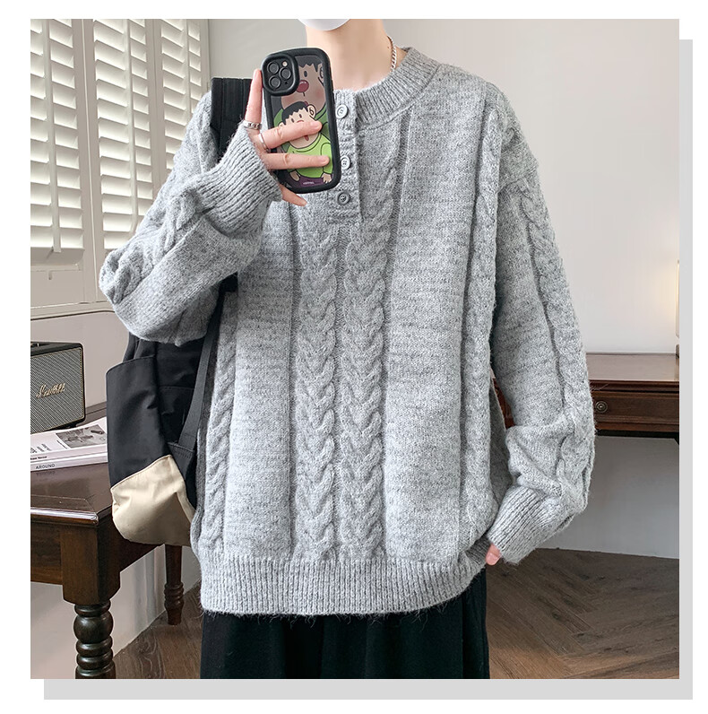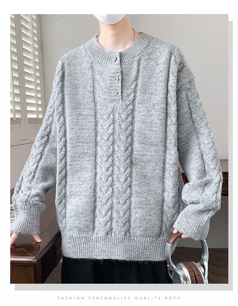 Playboy (PLAYBOY) Henry collar sweater for men in autumn and winter trendy cable pattern blended pullover sweater for men simple warm woolen clothes light gray M about 90-110Jin Jin equals 0.5kg can be worn
