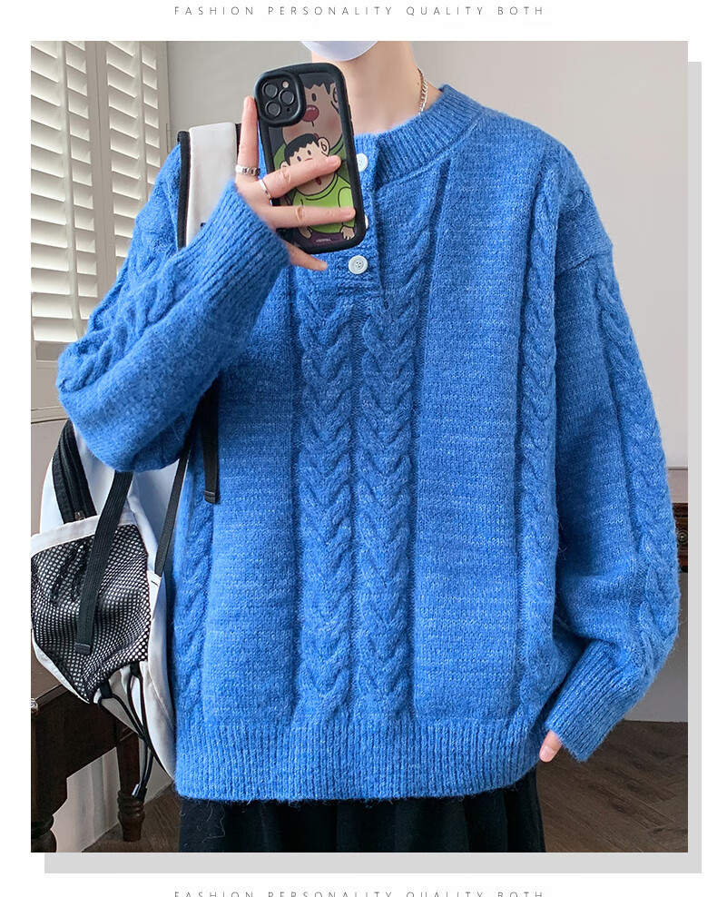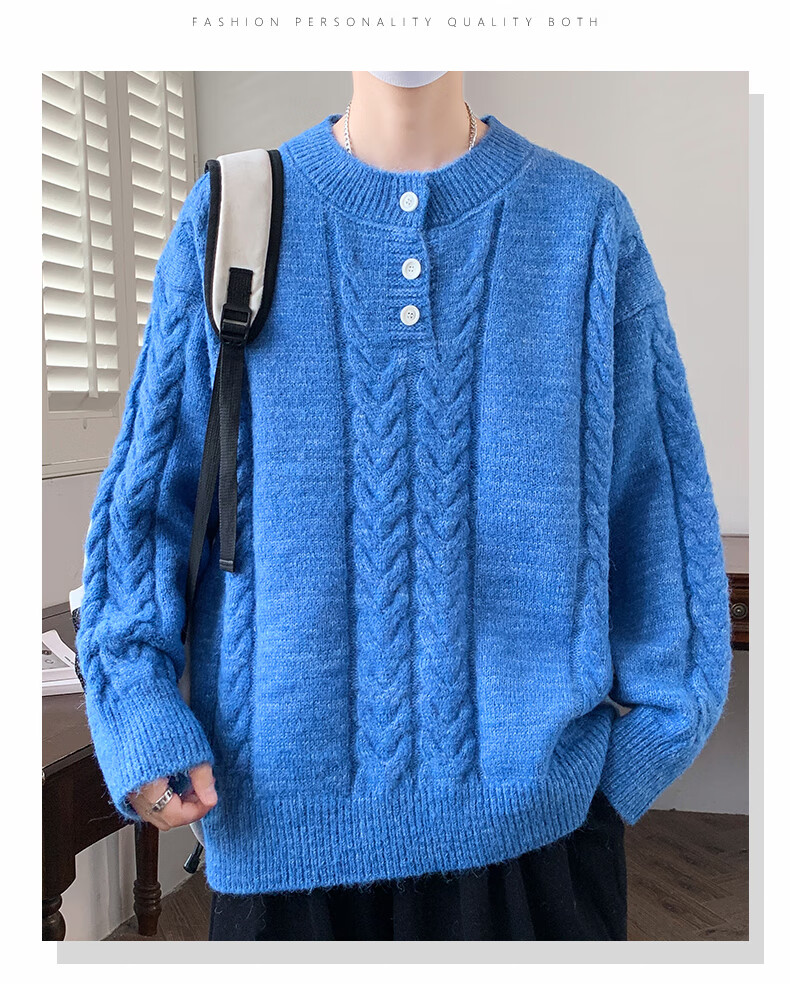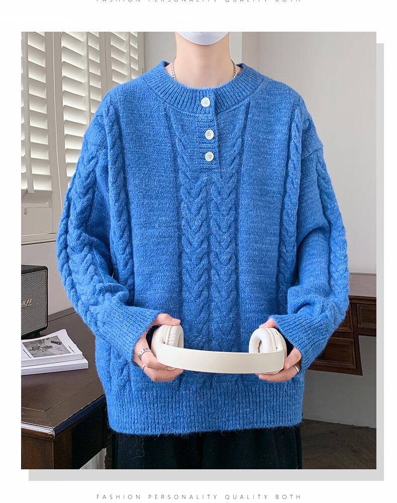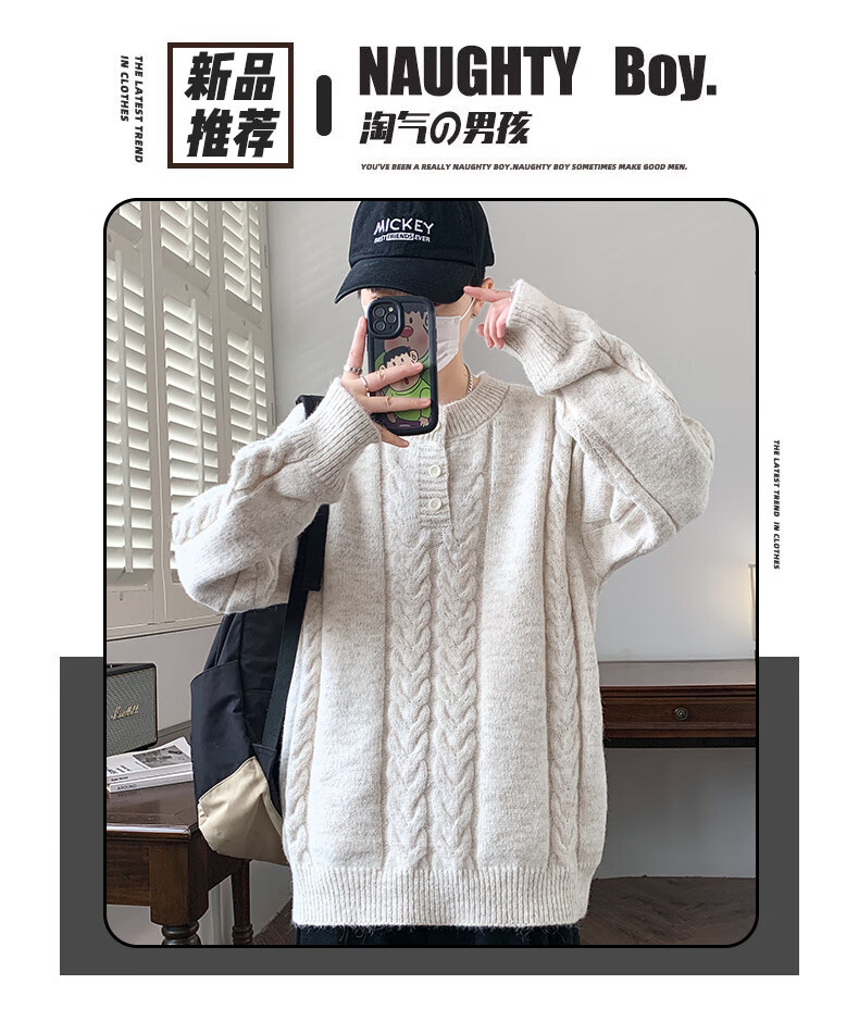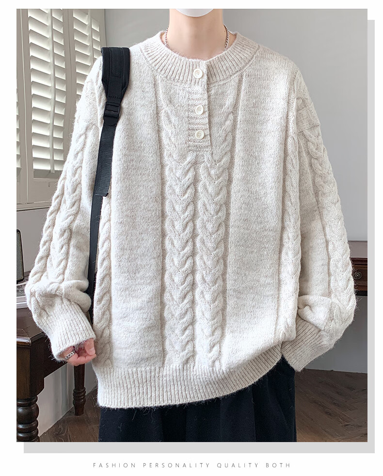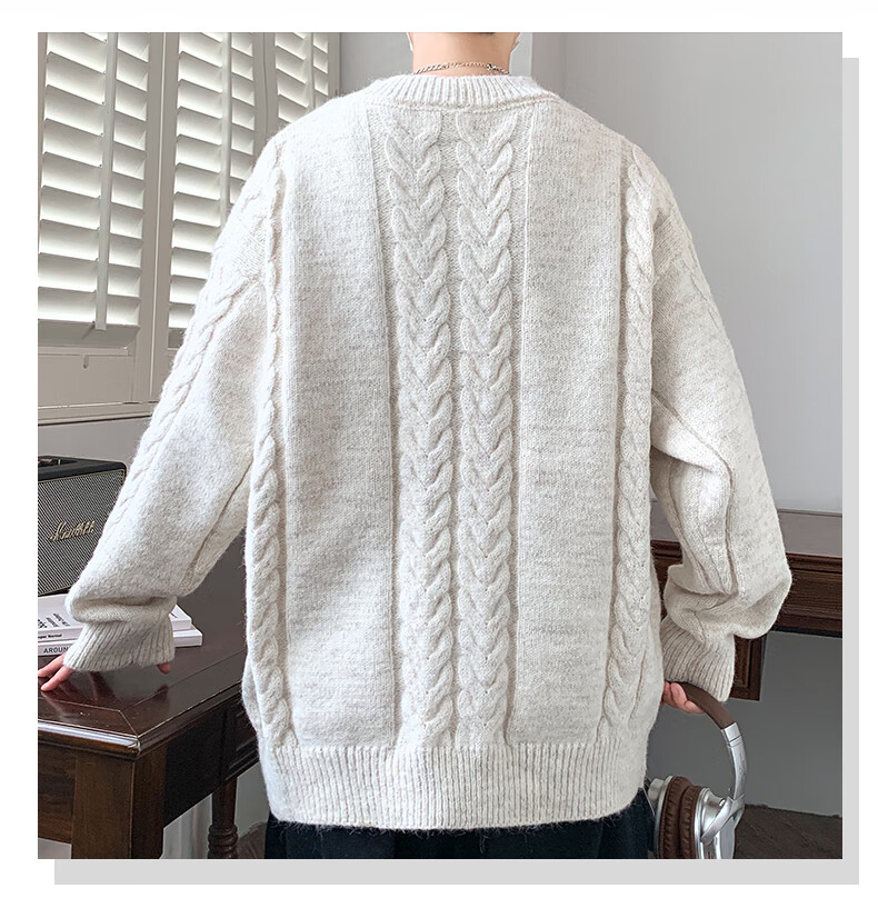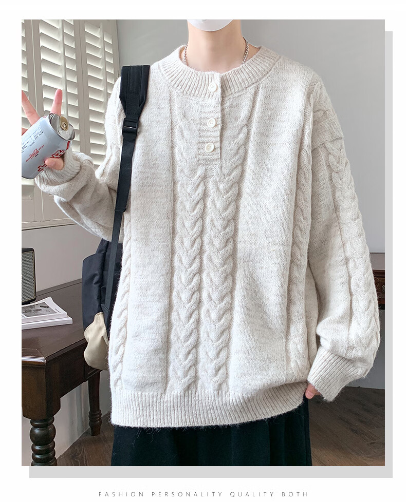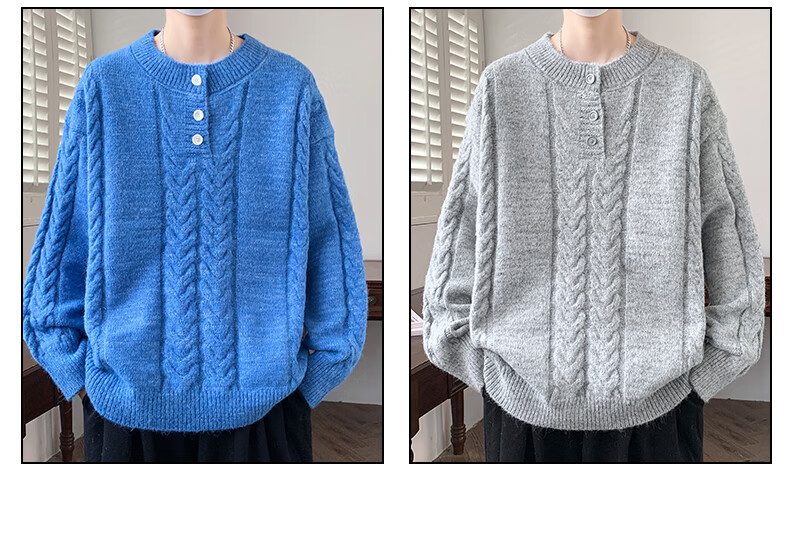 Playboy (PLAYBOY) Henry collar sweater for men in autumn and winter trendy cable pattern blended pullover sweater for men simple warm woolen clothes light gray M about 90-110Jin Jin equals 0.5kg can be worn