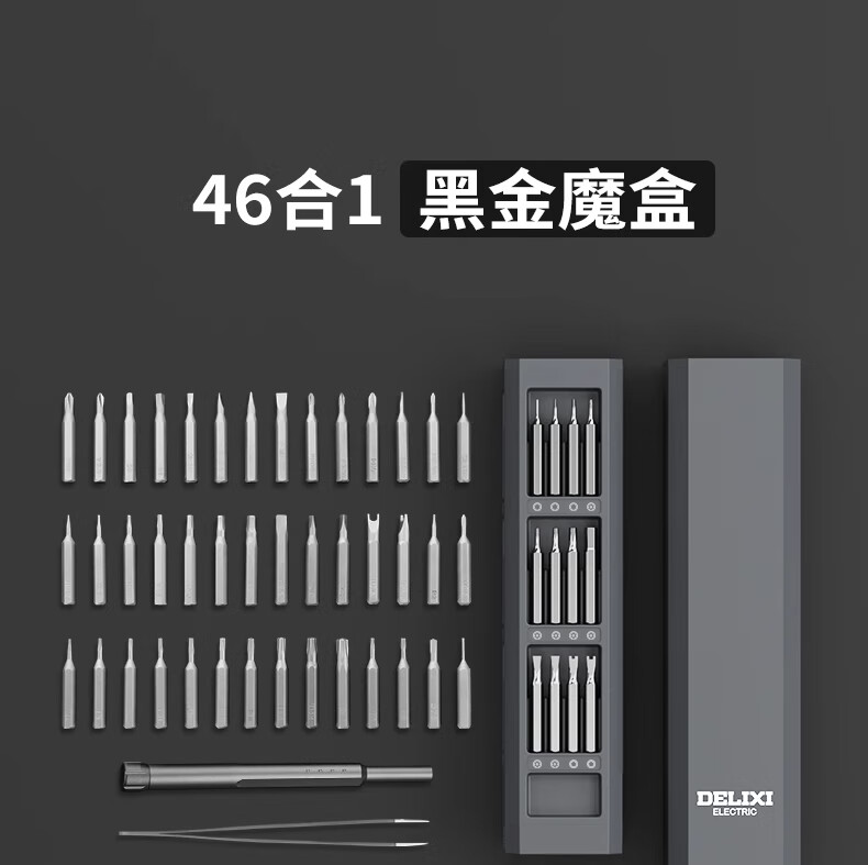 Delixi screwdriver set household screwdriver mobile phone notebook dust removal disassembly machine precision repair tools precision type 46 in 1 (aluminum barrel + disassembly machine 10-piece set
