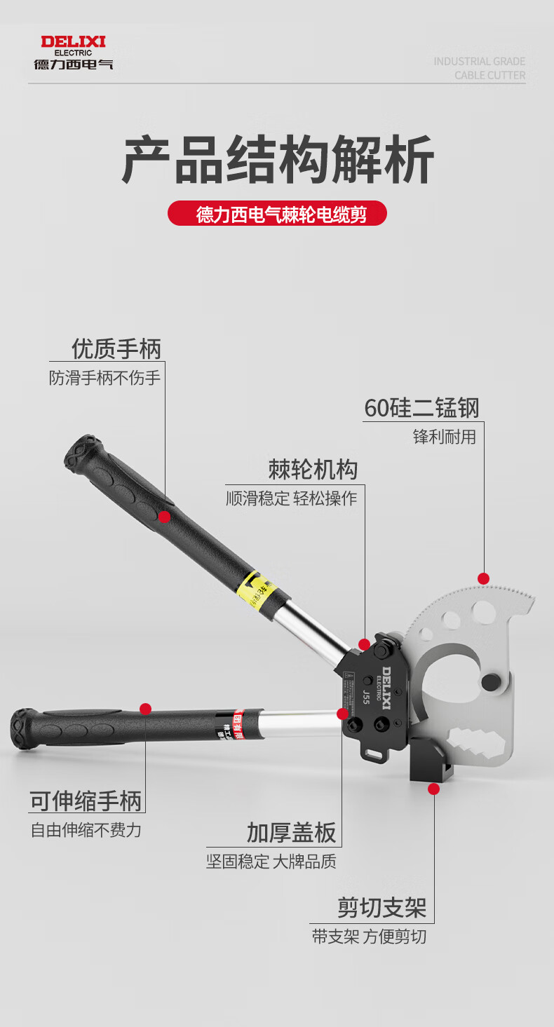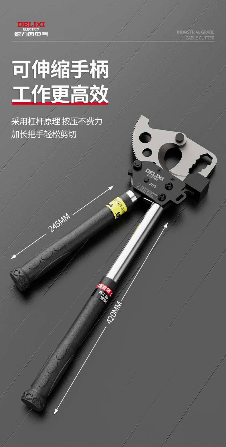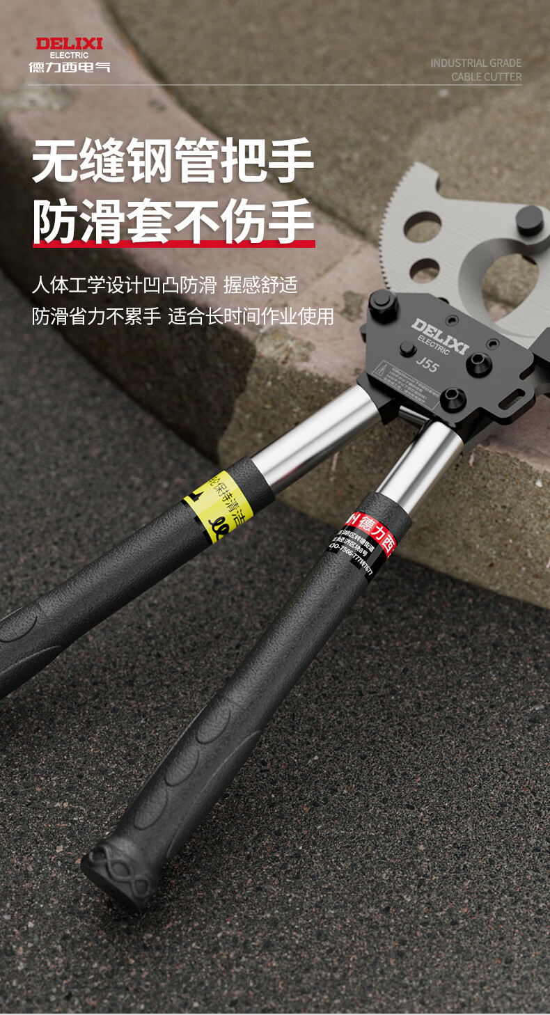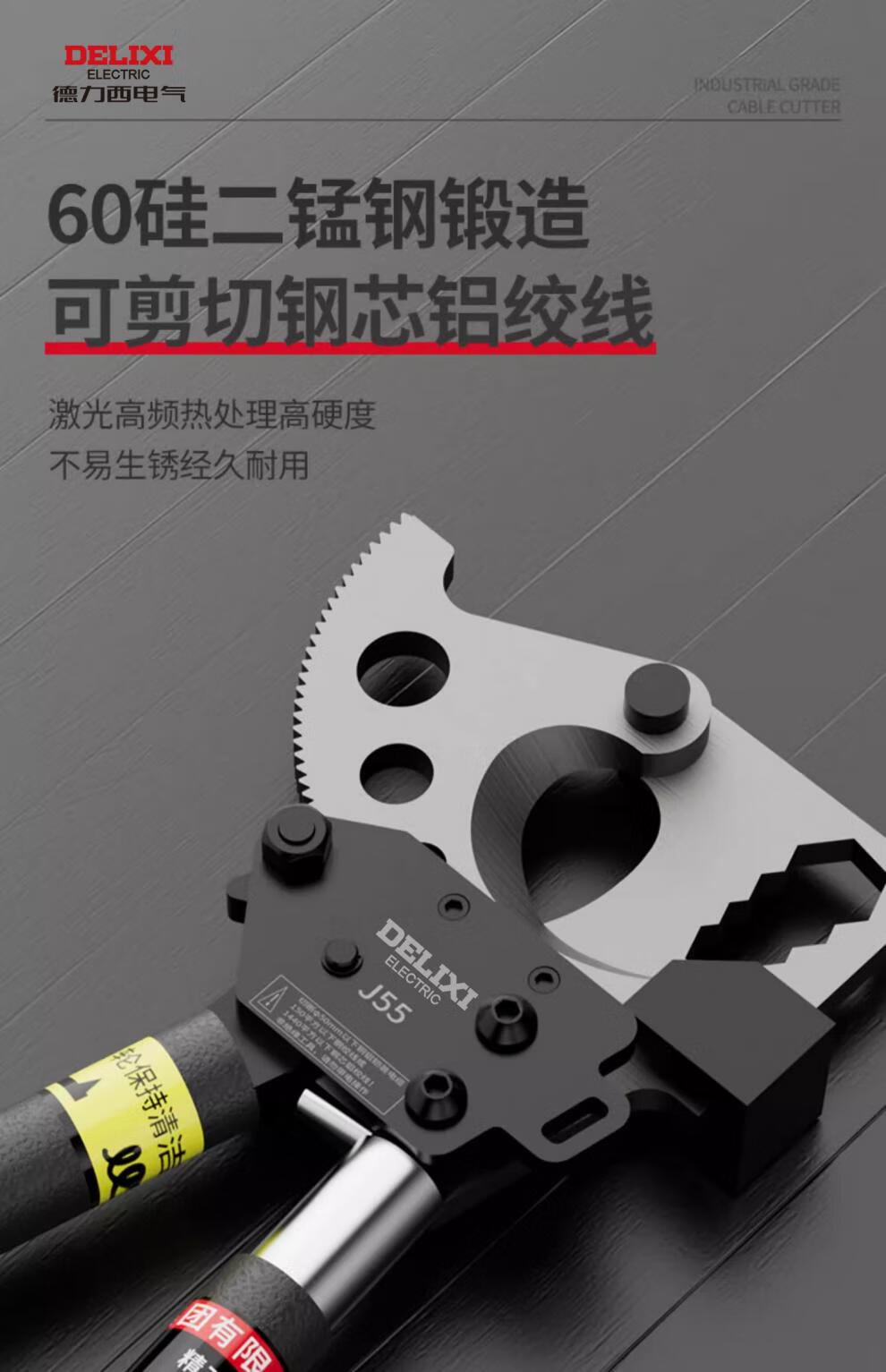 Delixi cable cutter ratchet gear type steel strand wire cutter hydraulic cable cutter special cable scissors Delixi J55 ratchet cable cutter-can cut steel strand_copper and aluminum cable++