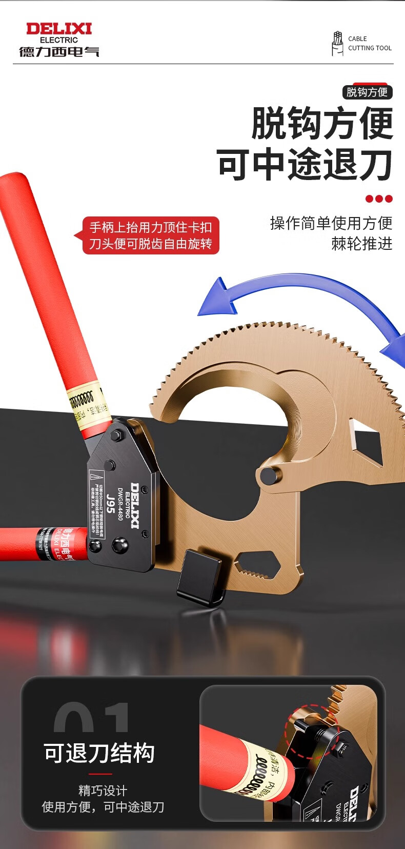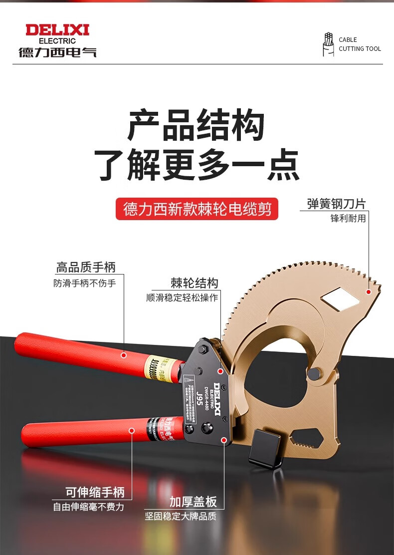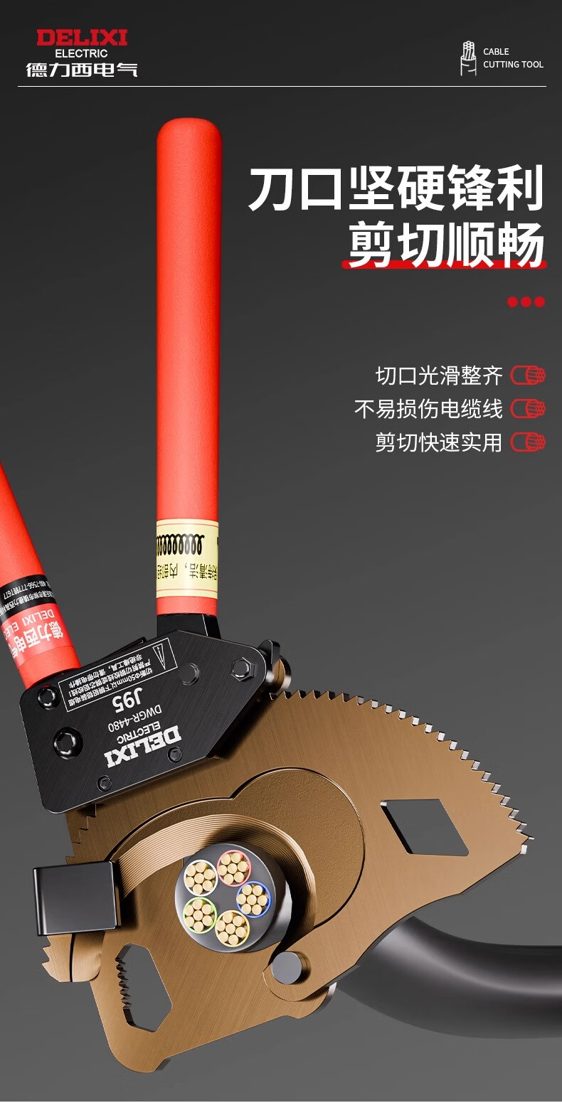 Delixi Electric ratchet cable scissors special gear type manual wire cutters electrician wire cutting scissors Delixi Electric-J40 industrial grade ratchet cable scissors (+ tool kit) 5 years
