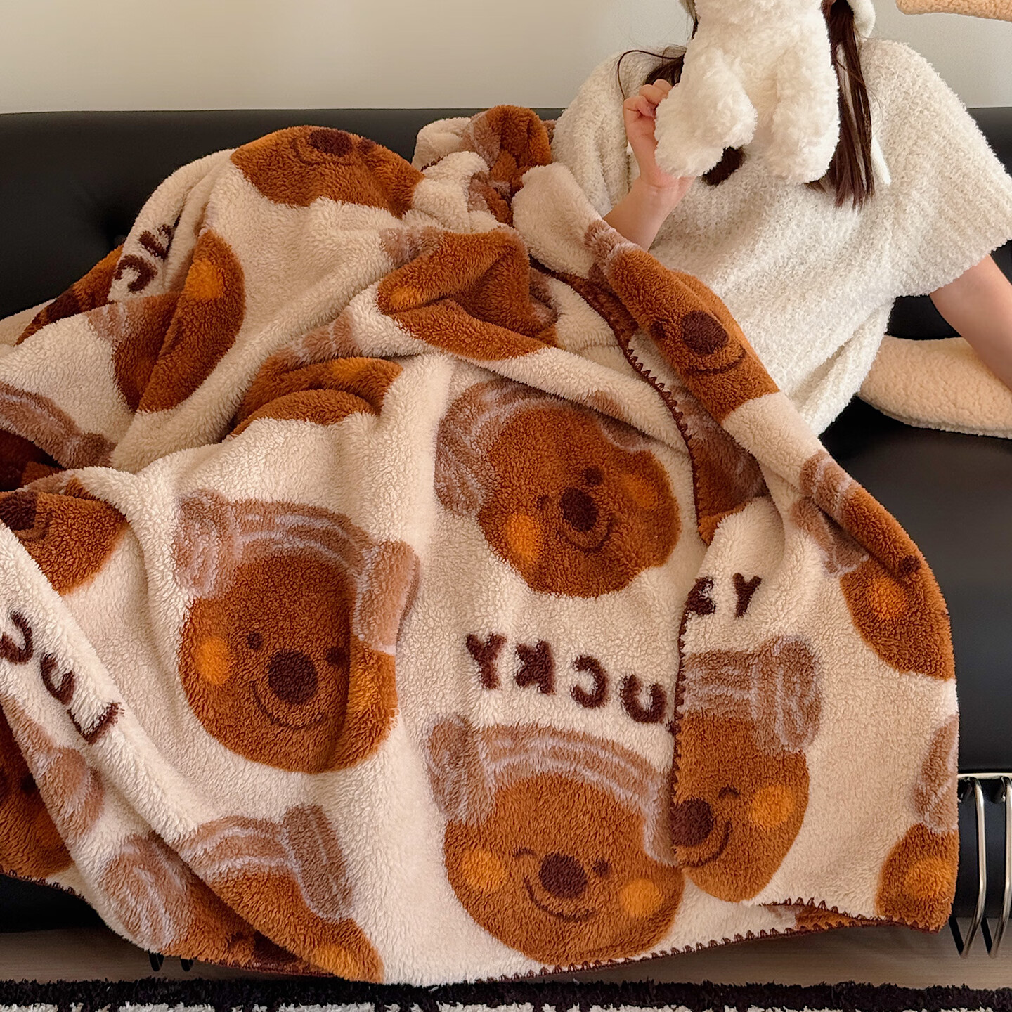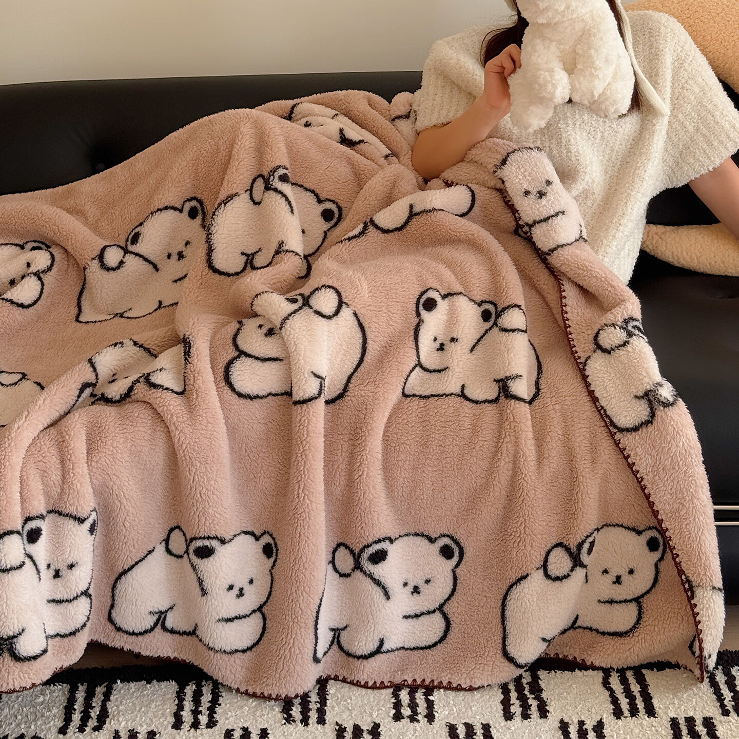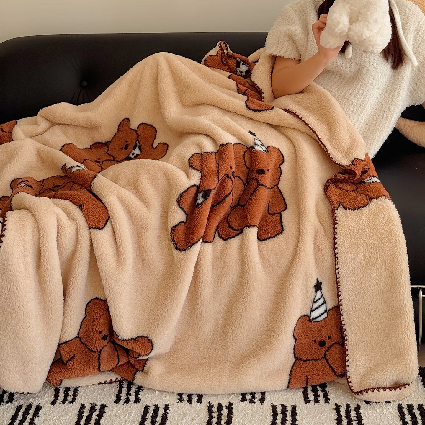 Enxing small blanket quilt leg cover thin nap blanket air conditioning office nap blanket flannel sofa blanket student blanket bear party thick fluffy double-sided cloud velvet 200 230cm/double blanket sofa blanket bed blanket
