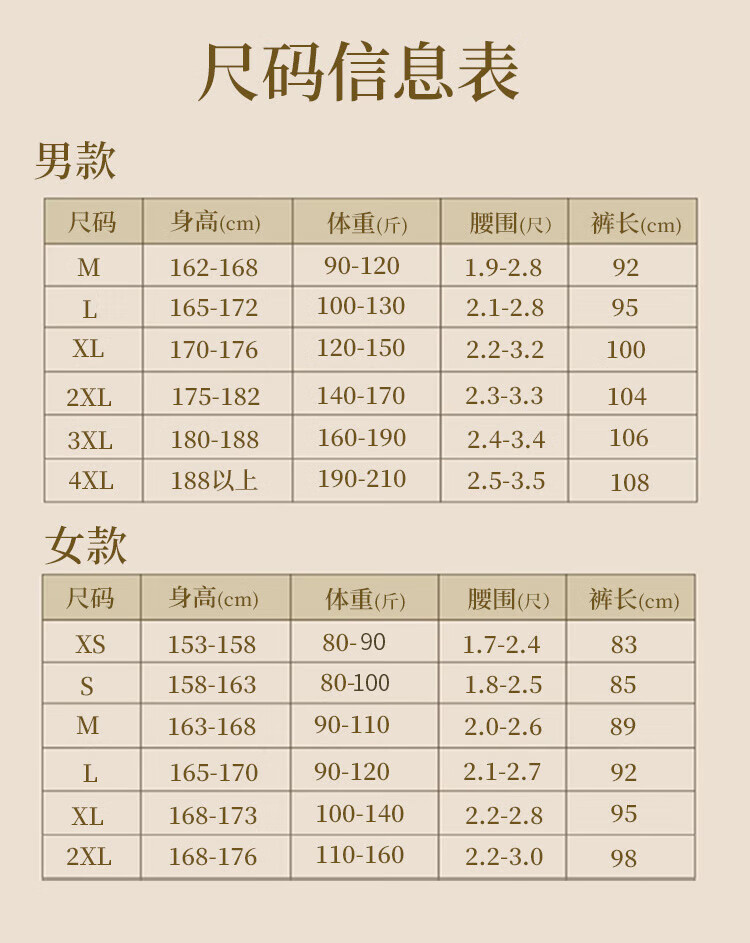 China (cm) 160-165/84-86 165-170 / 88-90 167-172 / 92-96 168-173 / 98-102 170-176 / 106-110