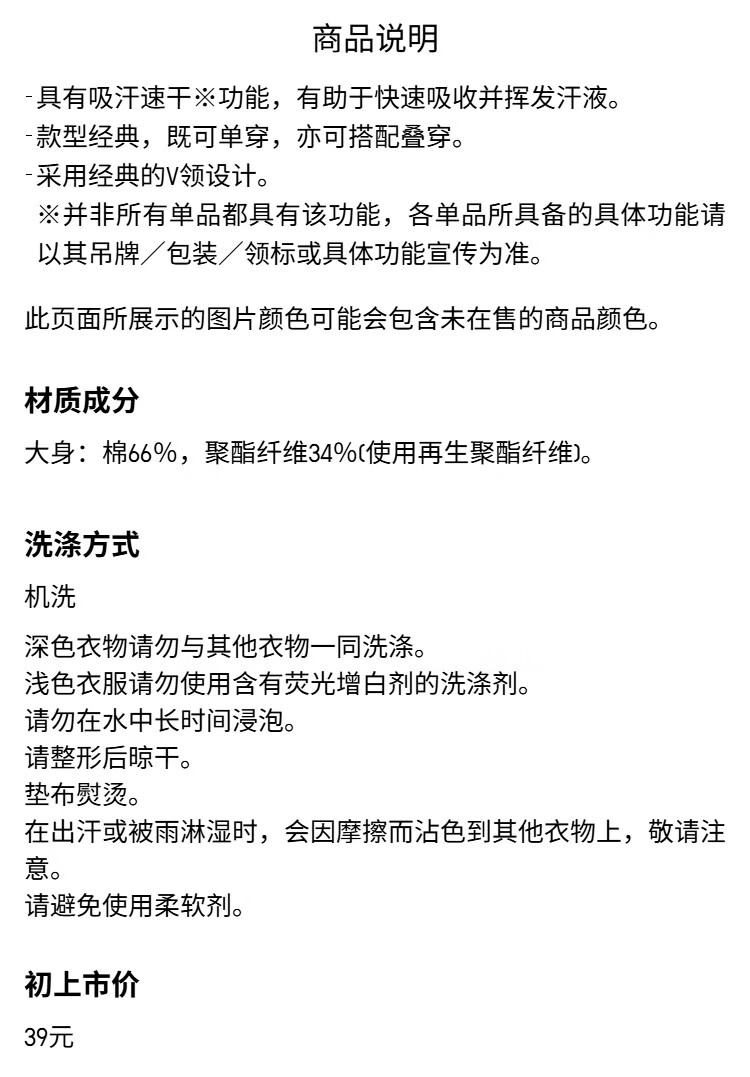 Uniqlo Men's and Women's Quick Drying V-neck T-shirt/Short Sleeve 484845 00 White M