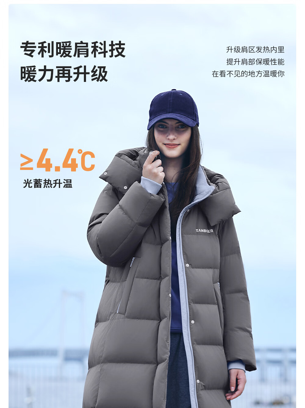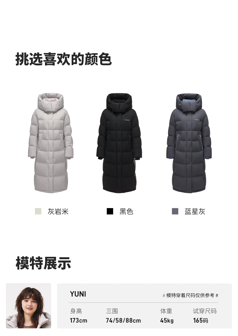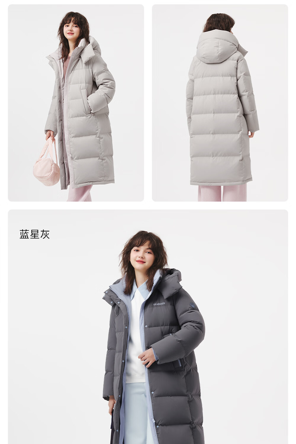 Tambor down jacket women's long 25 winter removable hood casual bread coat thickened and warm TB5550888D Blue Star Gray M (165)